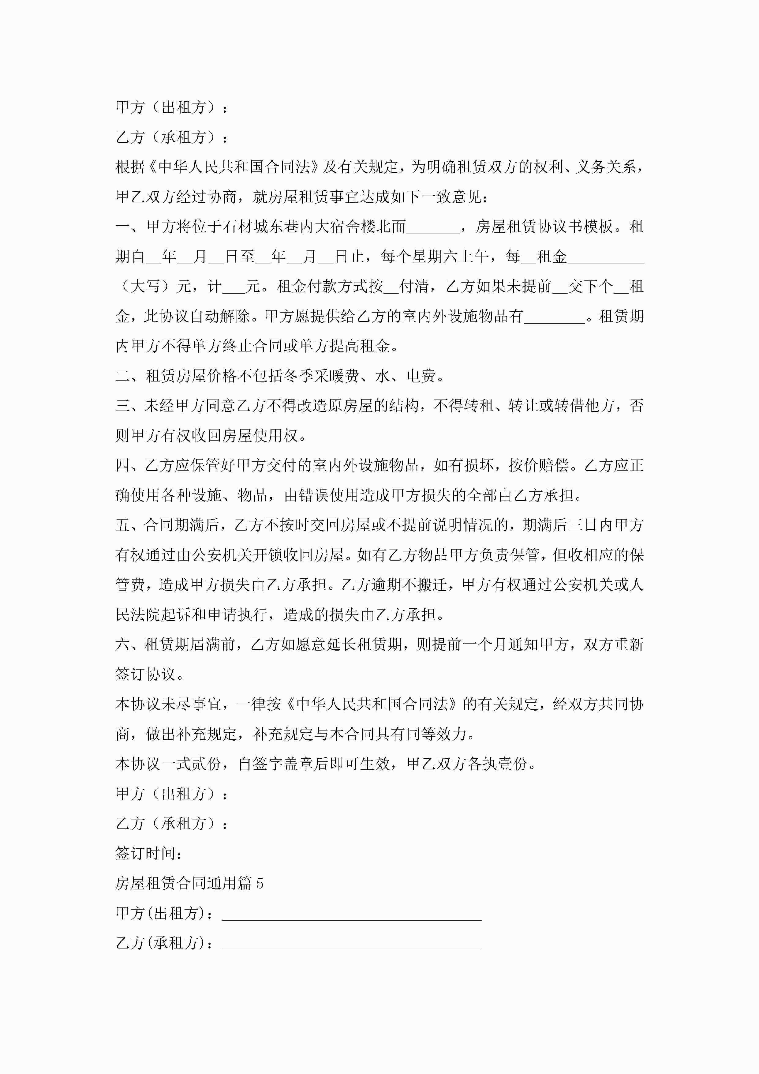 房屋租赁合同通用5篇jugei3月23日 01:42发布关注222 房屋租赁合同通用5篇此内容为付费资源,请付费后查看¥10.9 单篇文档限时特惠¥15个人会员开通企业会员开通立即下载无需登陆!可直接快捷下载单个模板付费资源© 版权声明THE ENDWord模板# 实用文档# 实用模板# 合同模板# 租赁合同 如有问题,可点击最底部“联系我们”联系客服 分享QQ空间微博QQ好友海报分享复制链接收藏