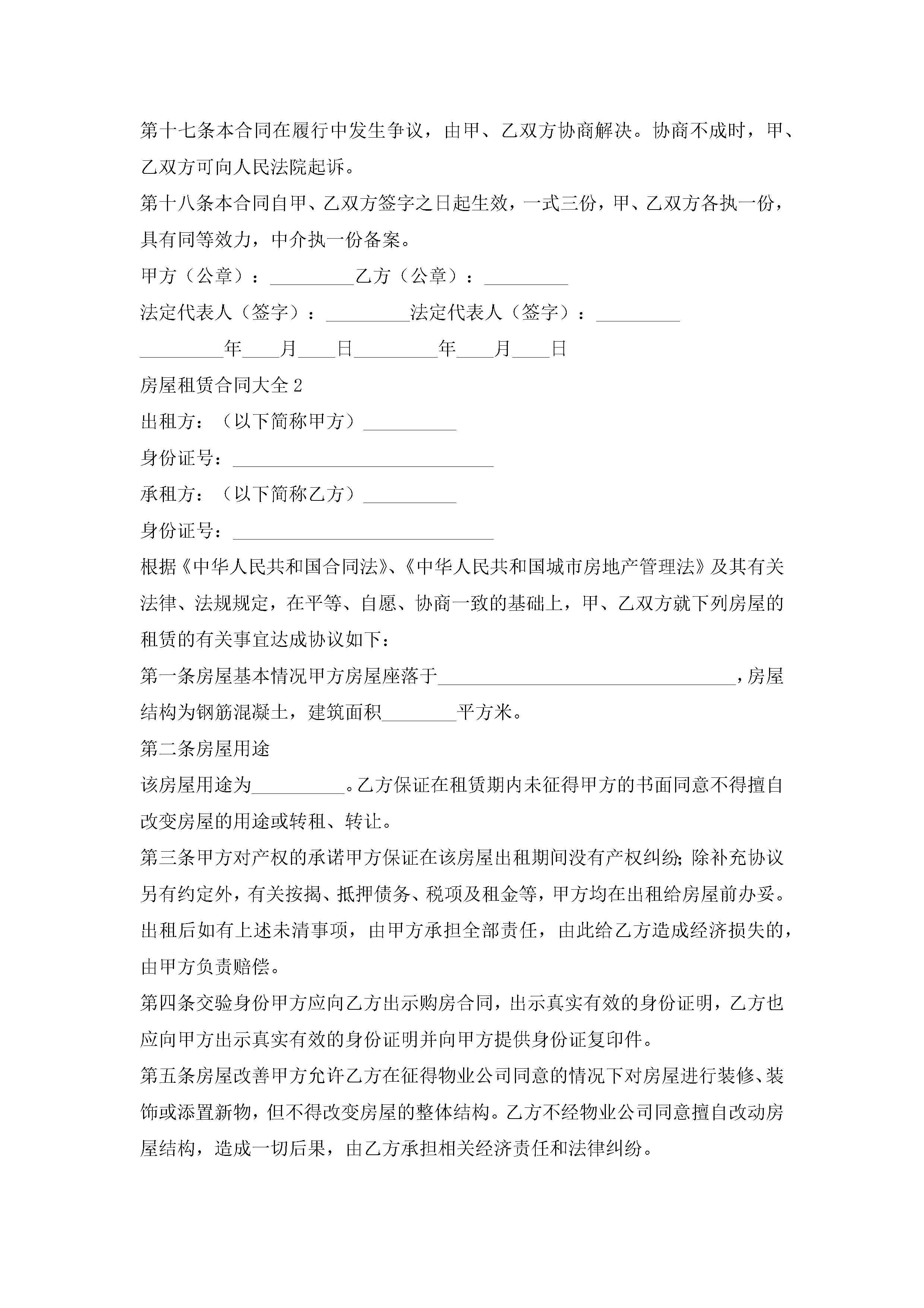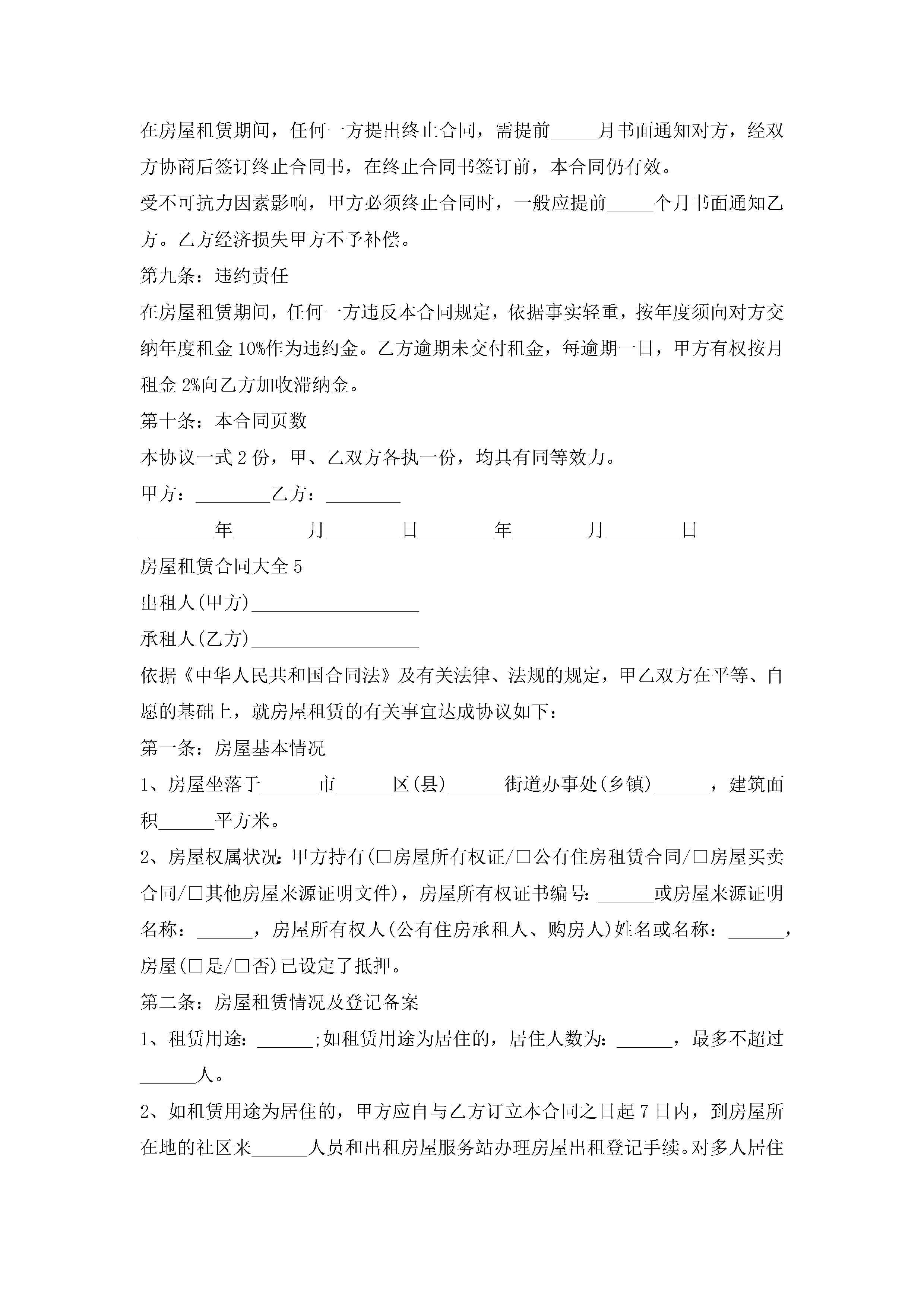 房屋租赁合同大全5篇jugei3月23日 01:42发布关注209 房屋租赁合同大全5篇此内容为付费资源,请付费后查看¥10.9 单篇文档限时特惠¥15个人会员开通企业会员开通立即下载无需登陆!可直接快捷下载单个模板付费资源© 版权声明THE ENDWord模板# 实用文档# 实用模板# 合同模板# 租赁合同 如有问题,可点击最底部“联系我们”联系客服 分享QQ空间微博QQ好友海报分享复制链接收藏