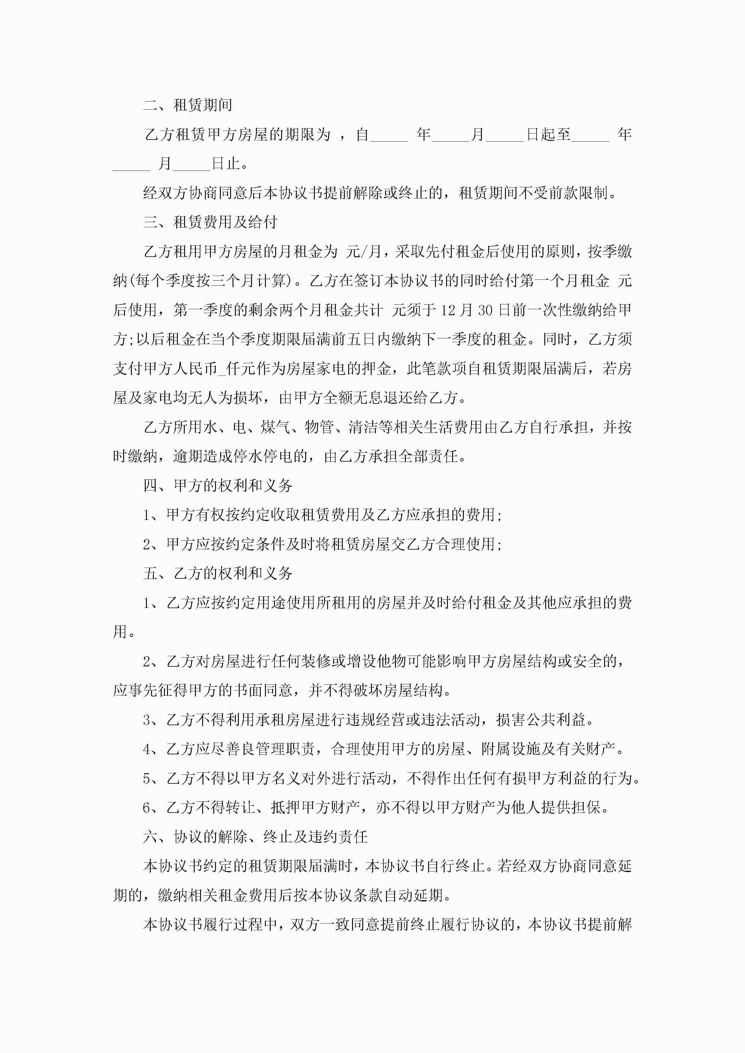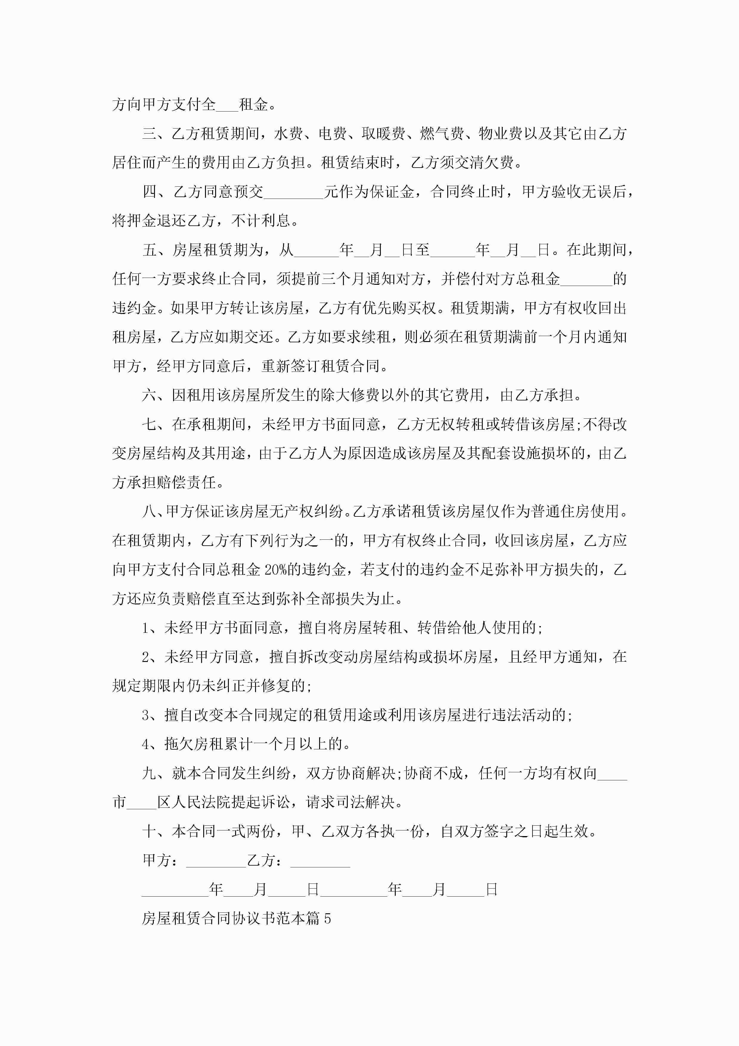 房屋租赁合同协议书范本5篇jugei3月23日 01:42发布关注237 房屋租赁合同协议书范本5篇此内容为付费资源,请付费后查看¥10.9 单篇文档限时特惠¥15个人会员开通企业会员开通立即下载无需登陆!可直接快捷下载单个模板付费资源© 版权声明THE ENDWord模板# 实用文档# 实用模板# 合同模板# 租赁合同 如有问题,可点击最底部“联系我们”联系客服 分享QQ空间微博QQ好友海报分享复制链接收藏