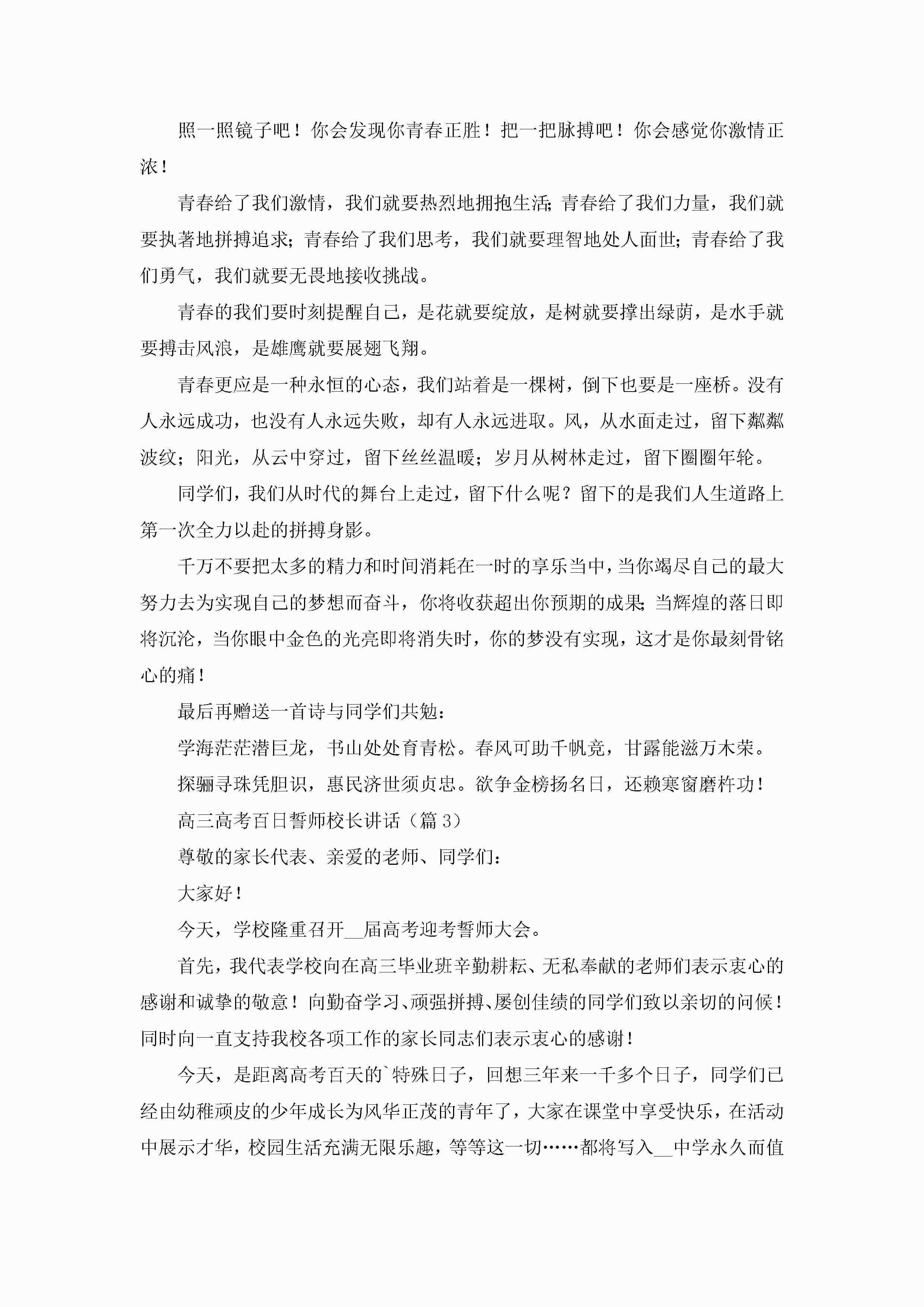 高三高考百日誓师校长讲话(五篇)jugei3月23日 01:42发布关注194 高三高考百日誓师校长讲话(五篇)此内容为付费资源,请付费后查看¥10.9 单篇文档限时特惠¥15个人会员开通企业会员开通立即下载无需登陆!可直接快捷下载单个模板付费资源© 版权声明THE ENDWord模板# 实用文档# 演讲稿# 经典演讲稿# 高三高考百日誓师校长讲话 如有问题,可点击最底部“联系我们”联系客服 分享QQ空间微博QQ好友海报分享复制链接收藏