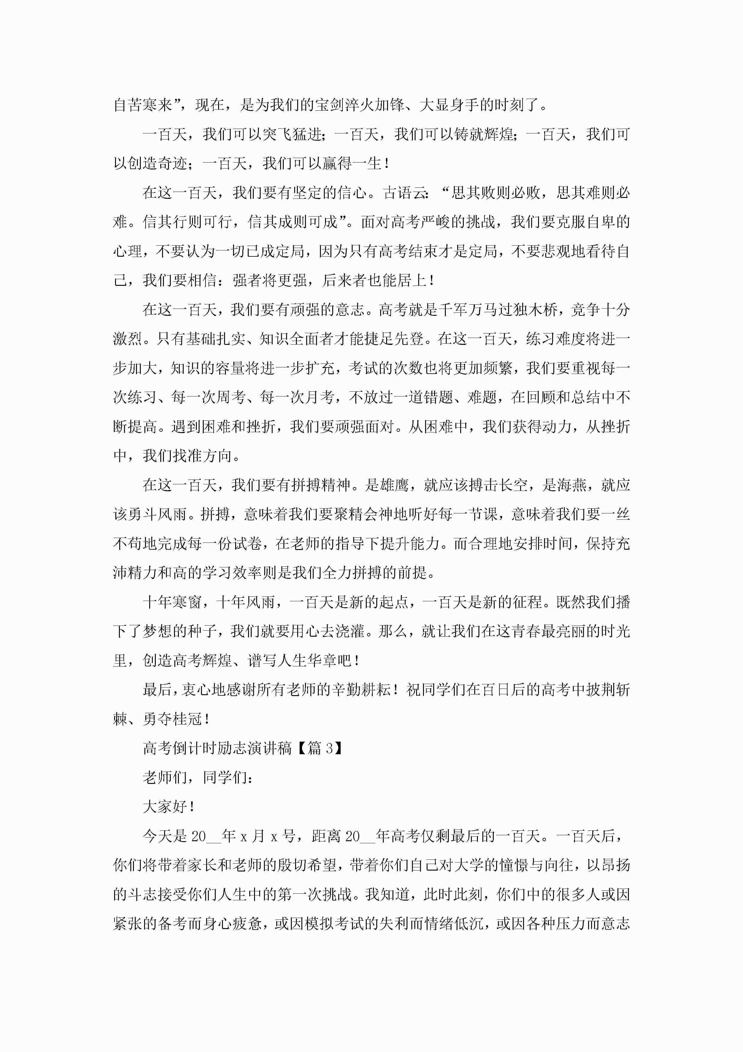 高考倒计时励志演讲稿(五篇)jugei3月23日 01:42发布关注330 高考倒计时励志演讲稿(五篇)此内容为付费资源,请付费后查看¥10.9 单篇文档限时特惠¥15个人会员开通企业会员开通立即下载无需登陆!可直接快捷下载单个模板付费资源© 版权声明THE ENDWord模板# 实用文档# 演讲稿# 经典演讲稿# 高考倒计时励志演讲稿 如有问题,可点击最底部“联系我们”联系客服 分享QQ空间微博QQ好友海报分享复制链接收藏