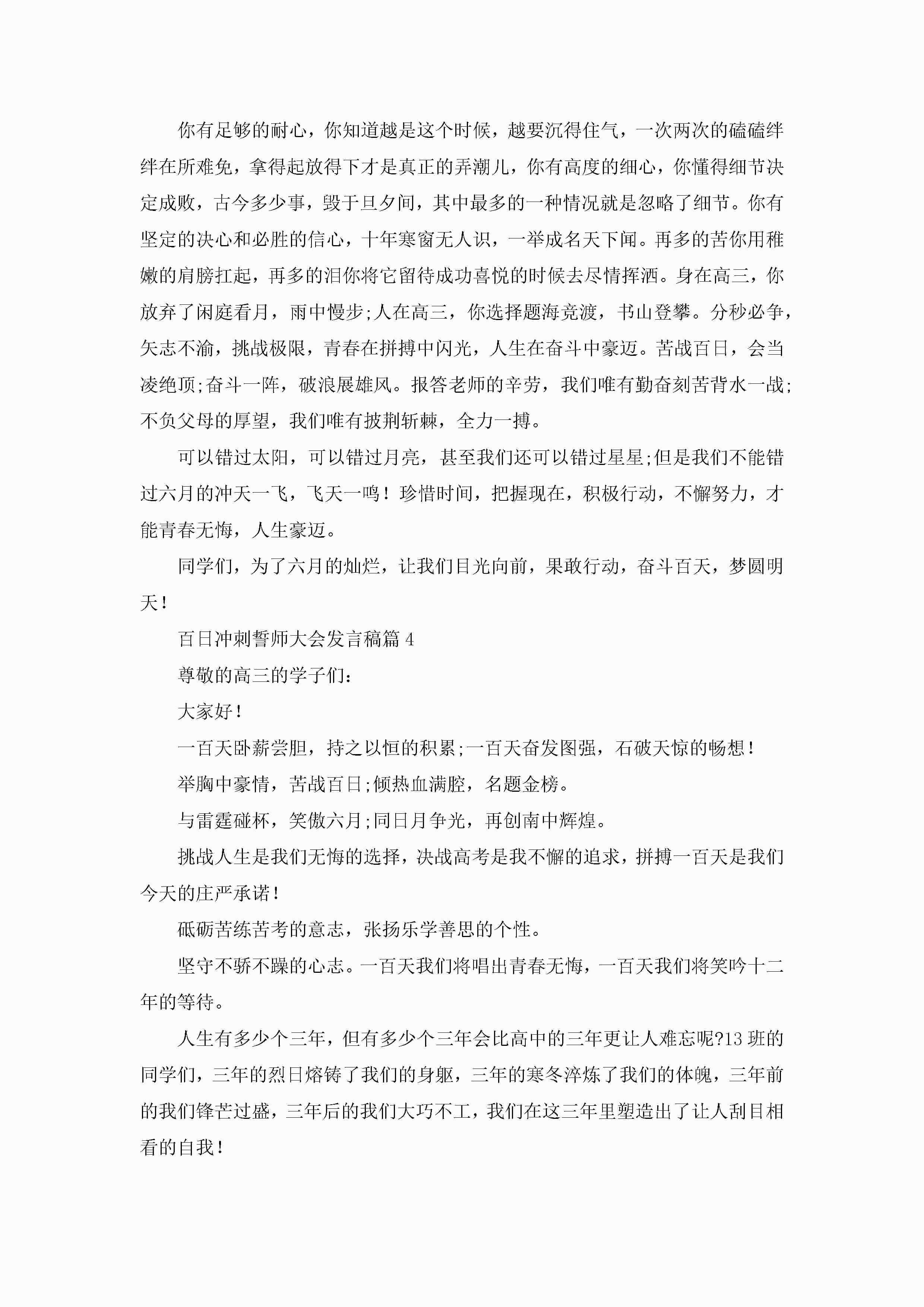 百日冲刺誓师大会发言稿(7篇)jugei3月23日 01:42发布关注339 百日冲刺誓师大会发言稿(7篇)此内容为付费资源,请付费后查看¥10.9 单篇文档限时特惠¥15个人会员开通企业会员开通立即下载无需登陆!可直接快捷下载单个模板付费资源© 版权声明THE ENDWord模板# 实用文档# 演讲稿# 经典演讲稿# 百日冲刺誓师大会发言稿 如有问题,可点击最底部“联系我们”联系客服 分享QQ空间微博QQ好友海报分享复制链接收藏