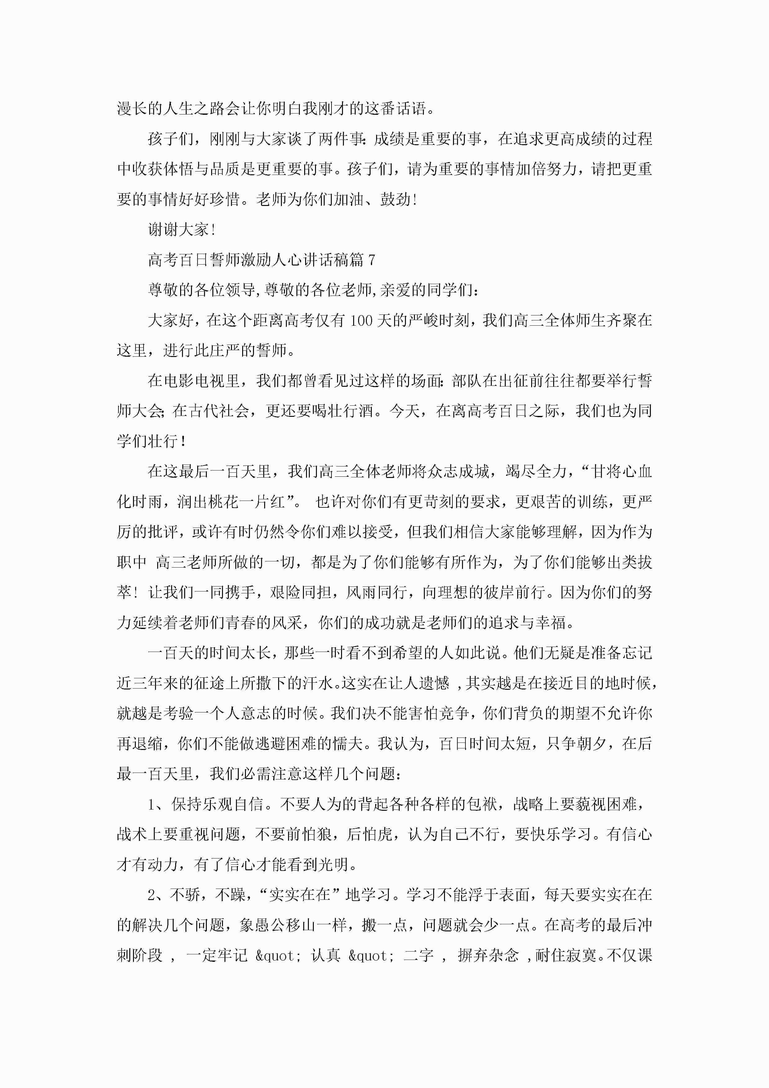 高考百日誓师激励人心讲话稿(10篇精选)jugei3月23日 01:42发布关注196 高考百日誓师激励人心讲话稿(10篇精选)此内容为付费资源,请付费后查看¥10.9 单篇文档限时特惠¥15个人会员开通企业会员开通立即下载无需登陆!可直接快捷下载单个模板付费资源© 版权声明THE ENDWord模板# 实用文档# 演讲稿# 经典演讲稿# 高考百日誓师激励人心讲话稿10篇 如有问题,可点击最底部“联系我们”联系客服 分享QQ空间微博QQ好友海报分享复制链接收藏