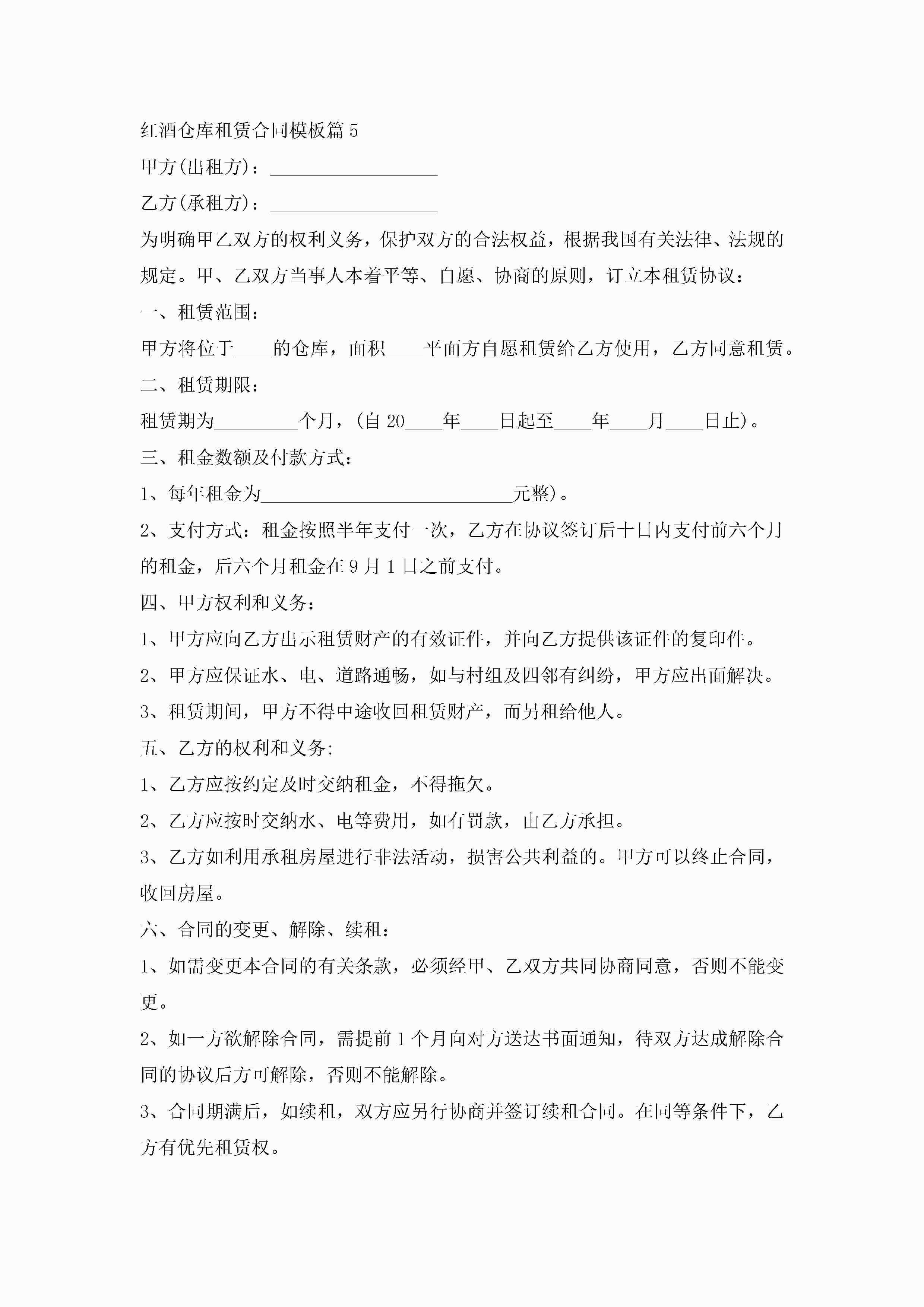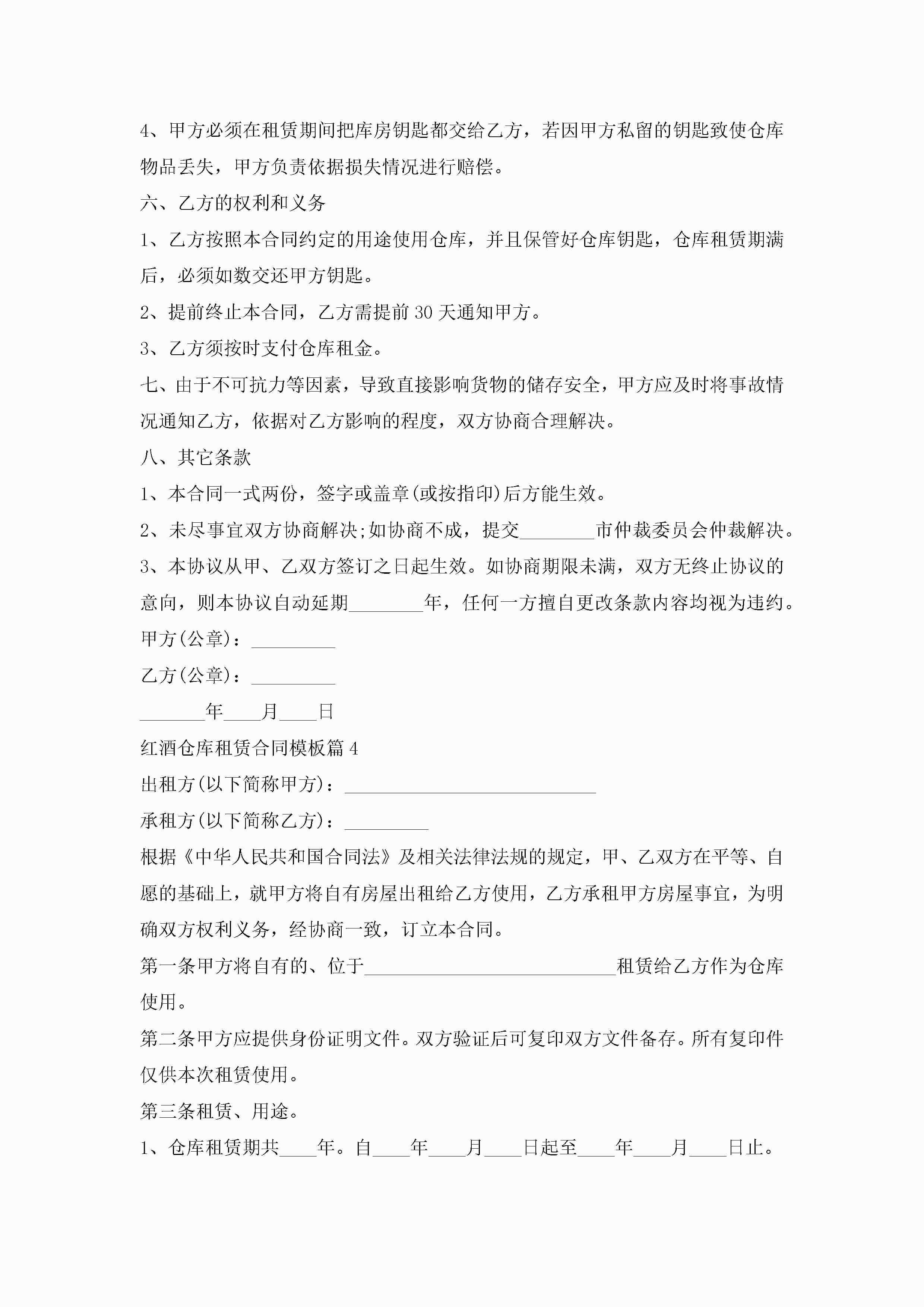 红酒仓库租赁合同模板5篇(精选)jugei3月23日 01:42发布关注258 红酒仓库租赁合同模板5篇(精选)此内容为付费资源,请付费后查看¥10.9 单篇文档限时特惠¥15个人会员开通企业会员开通立即下载无需登陆!可直接快捷下载单个模板付费资源© 版权声明THE ENDWord模板# 实用文档# 实用模板# 合同模板# 租赁合同 如有问题,可点击最底部“联系我们”联系客服 分享QQ空间微博QQ好友海报分享复制链接收藏