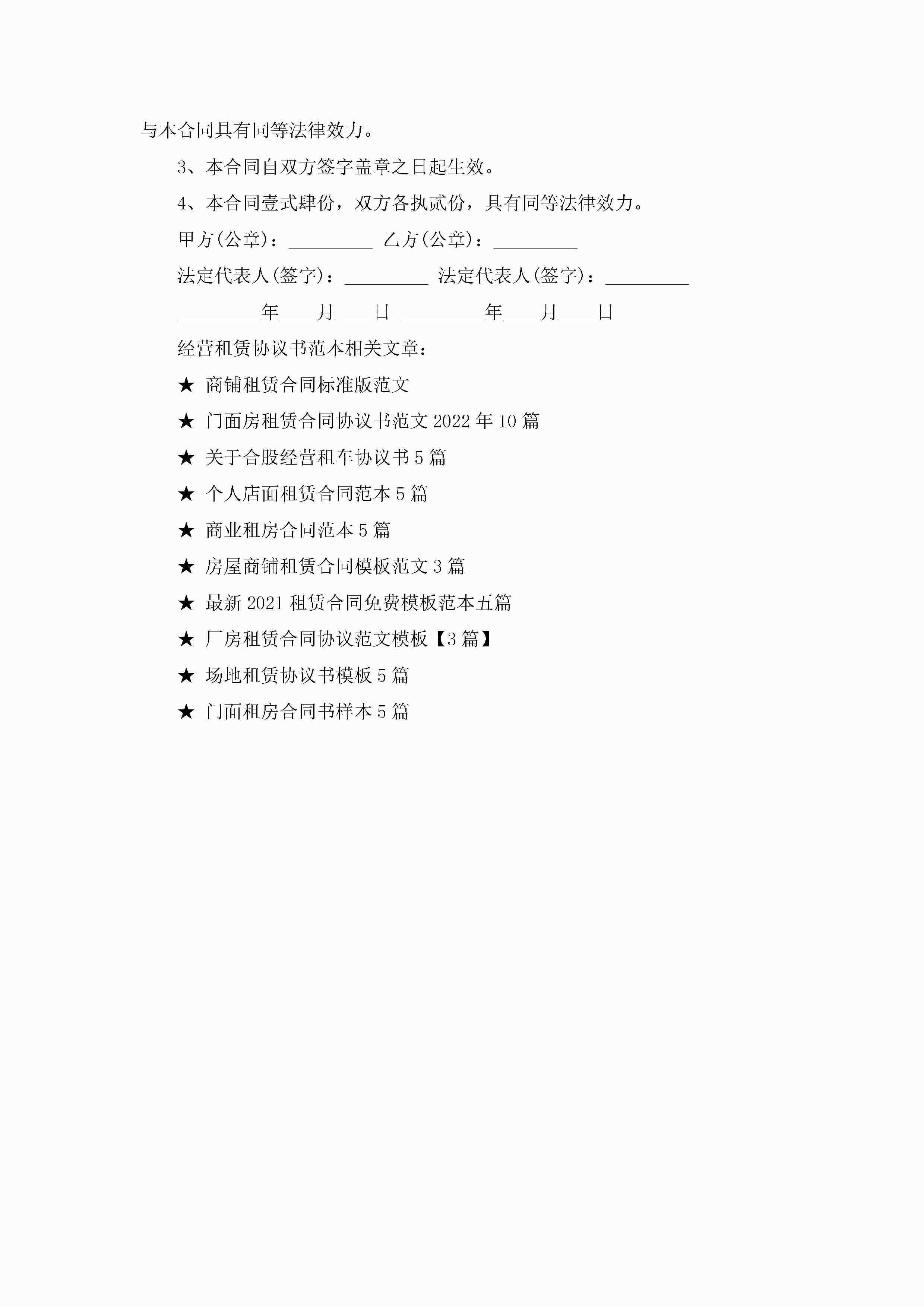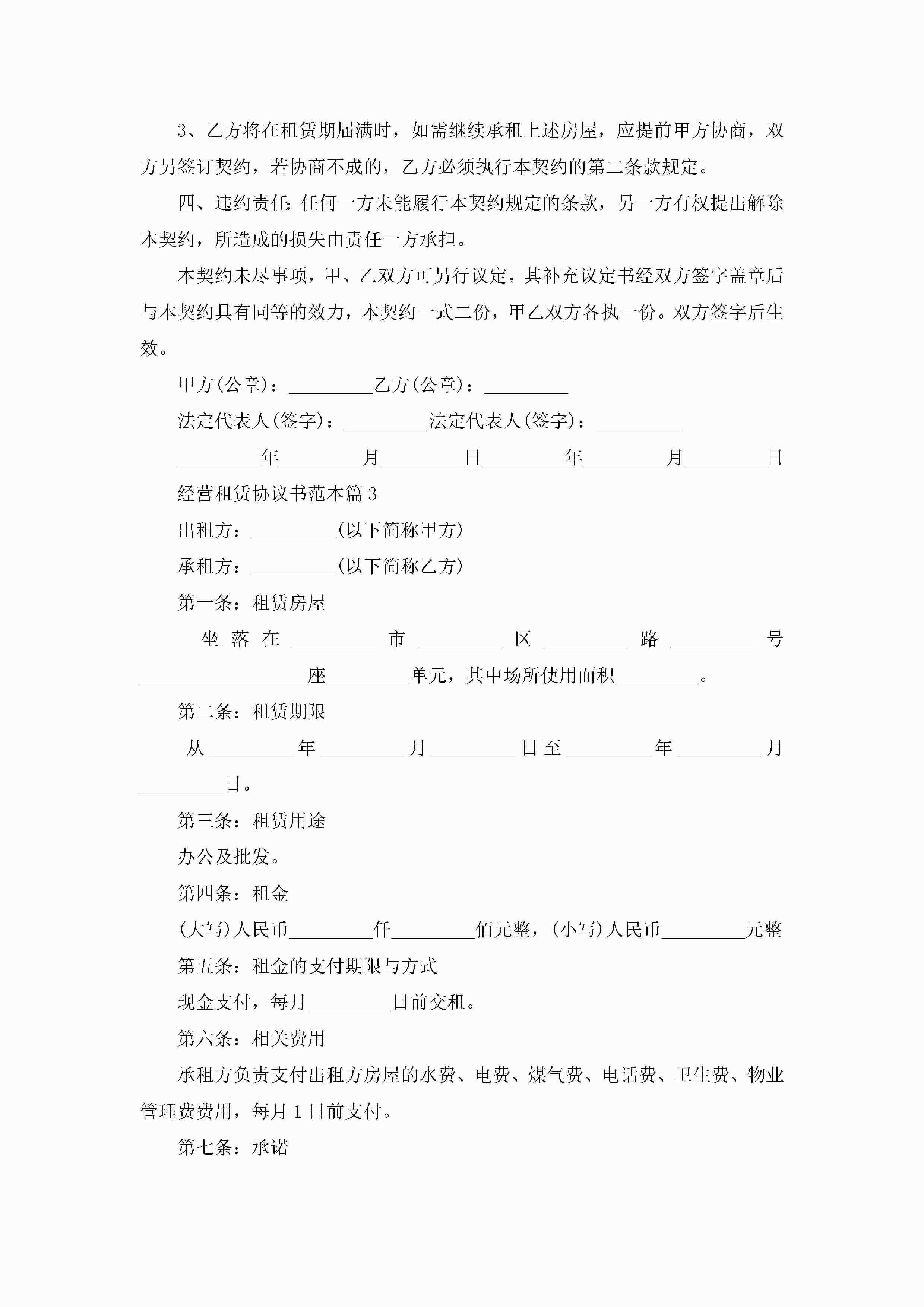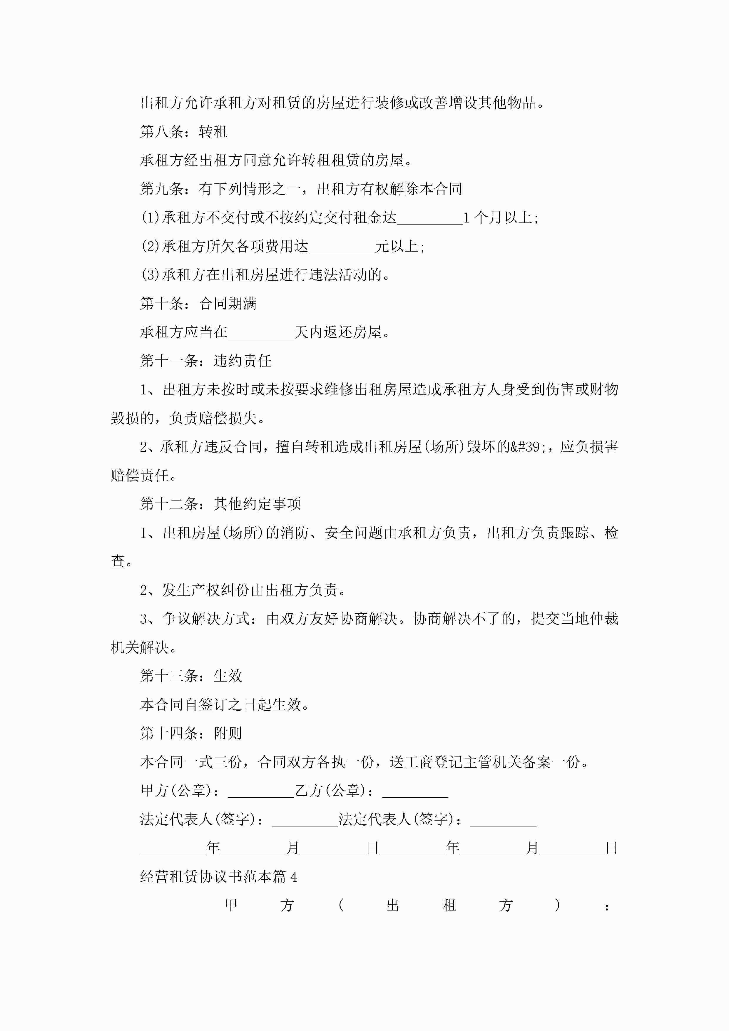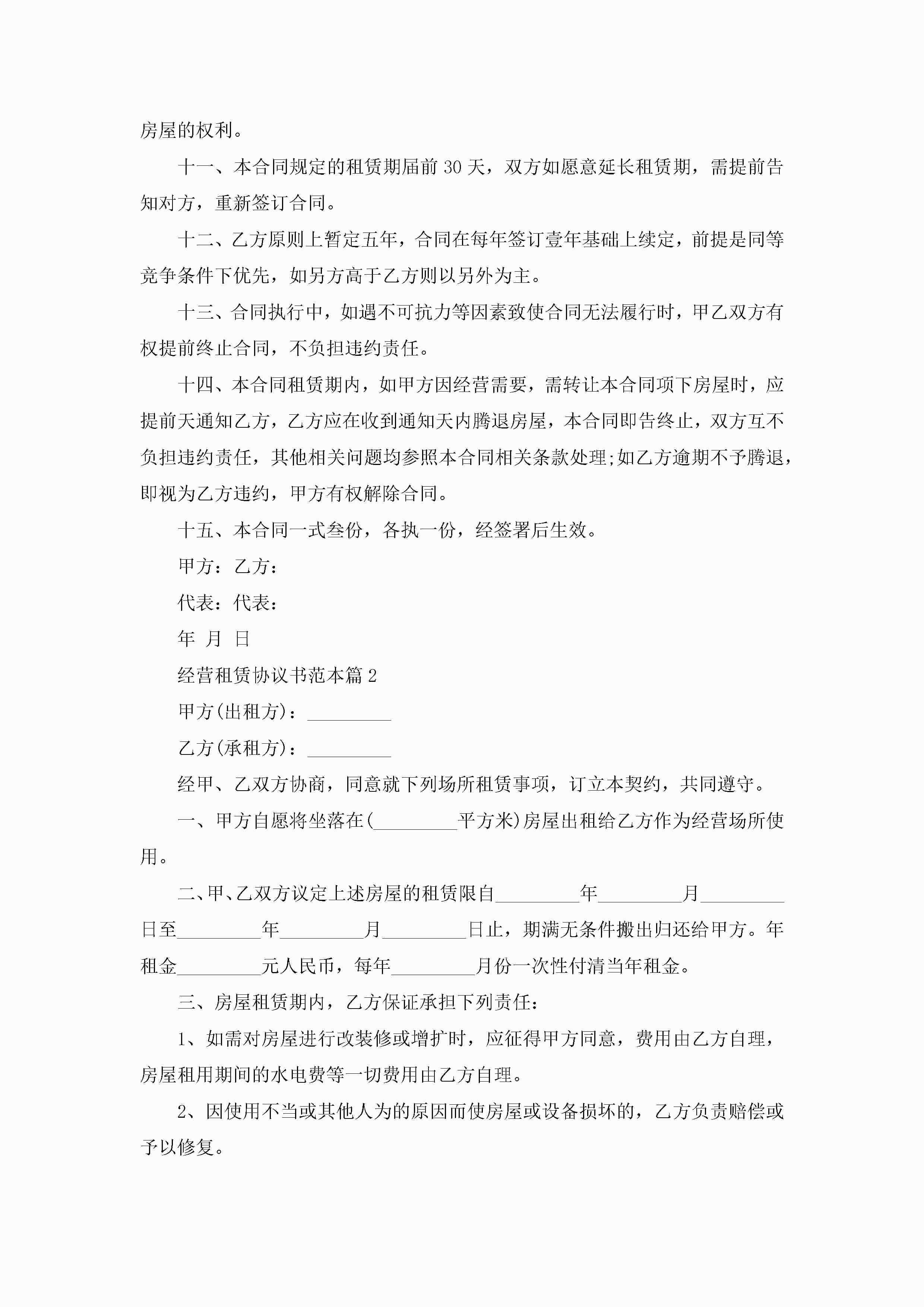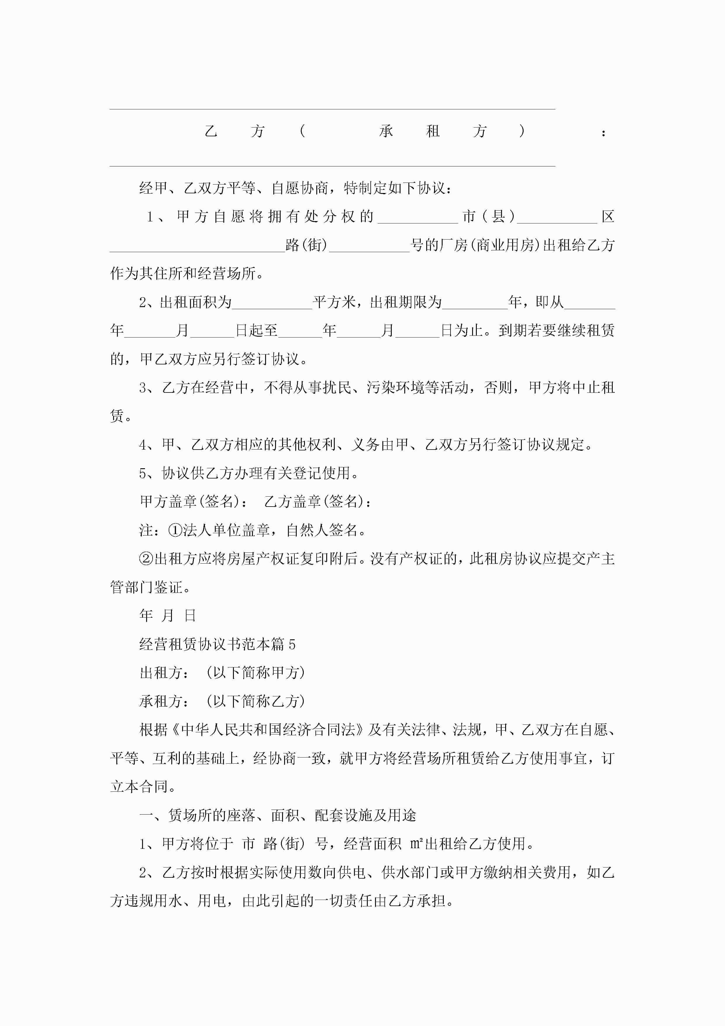 经营租赁协议书最新范本jugei3月23日 01:42发布关注188 经营租赁协议书最新范本此内容为付费资源,请付费后查看¥10.9 单篇文档限时特惠¥15个人会员开通企业会员开通立即下载无需登陆!可直接快捷下载单个模板付费资源© 版权声明THE ENDWord模板# 实用文档# 实用模板# 合同模板# 租赁合同 如有问题,可点击最底部“联系我们”联系客服 分享QQ空间微博QQ好友海报分享复制链接收藏