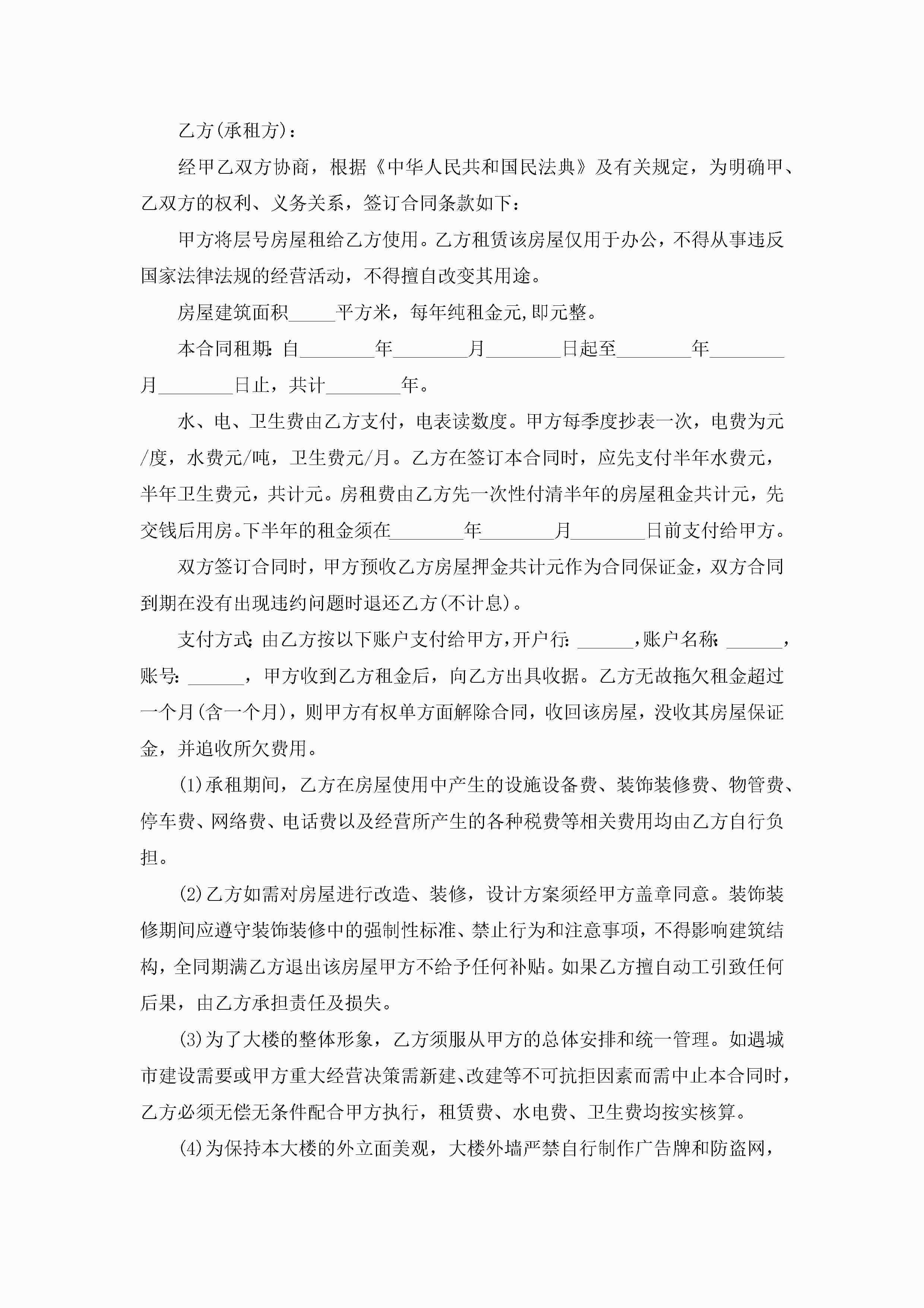 办公室租赁合同最新范本电子版jugei3月23日 01:42发布关注191 办公室租赁合同最新范本电子版此内容为付费资源,请付费后查看¥10.9 单篇文档限时特惠¥15个人会员开通企业会员开通立即下载无需登陆!可直接快捷下载单个模板付费资源© 版权声明THE ENDWord模板# 实用文档# 实用模板# 合同模板# 租赁合同 如有问题,可点击最底部“联系我们”联系客服 分享QQ空间微博QQ好友海报分享复制链接收藏