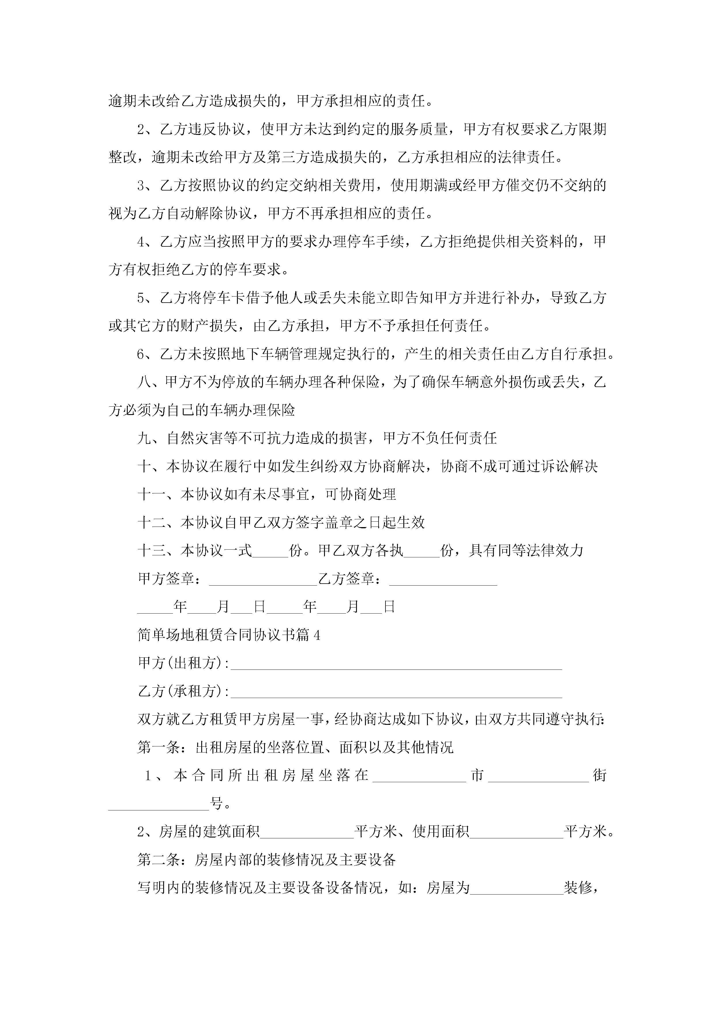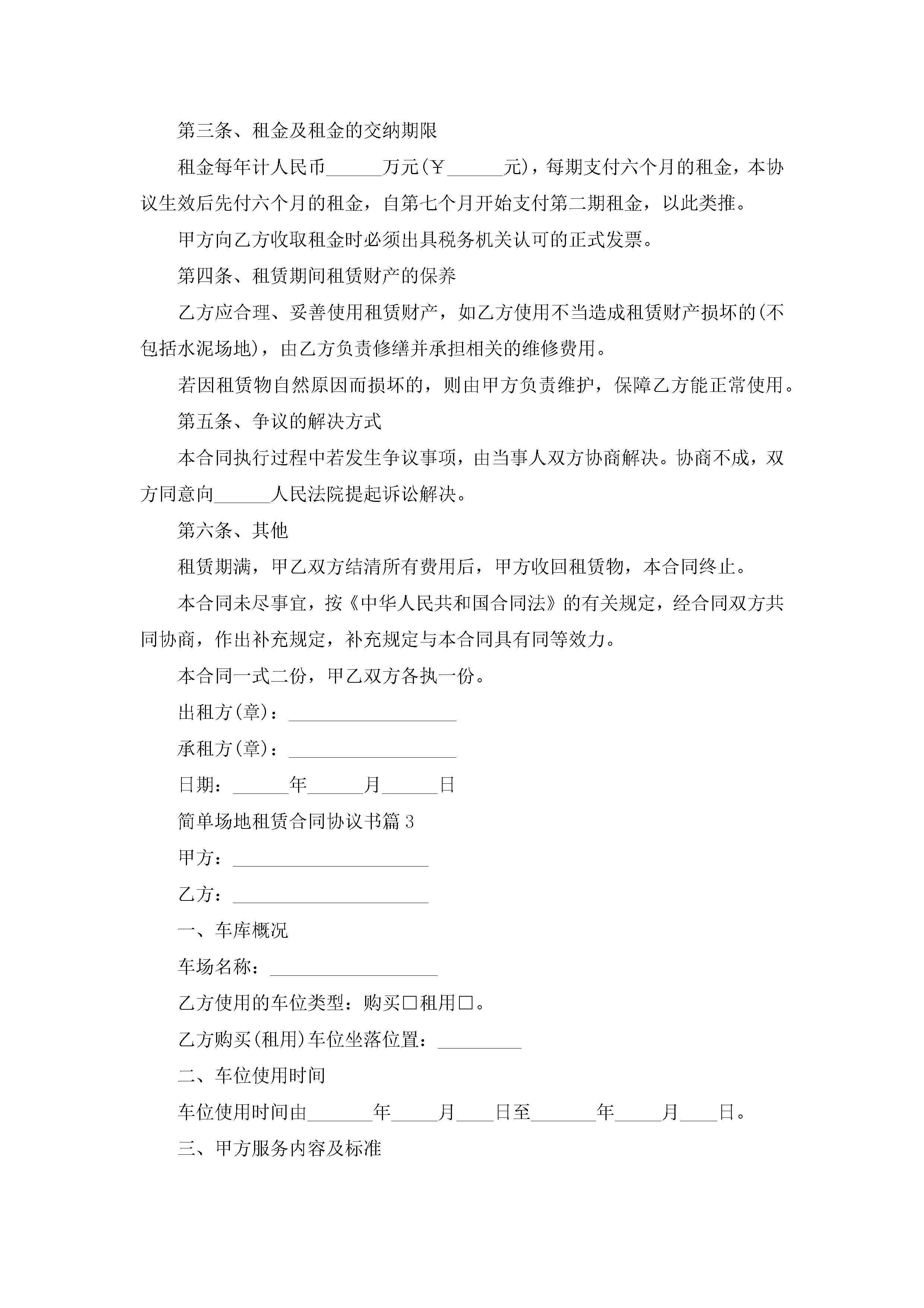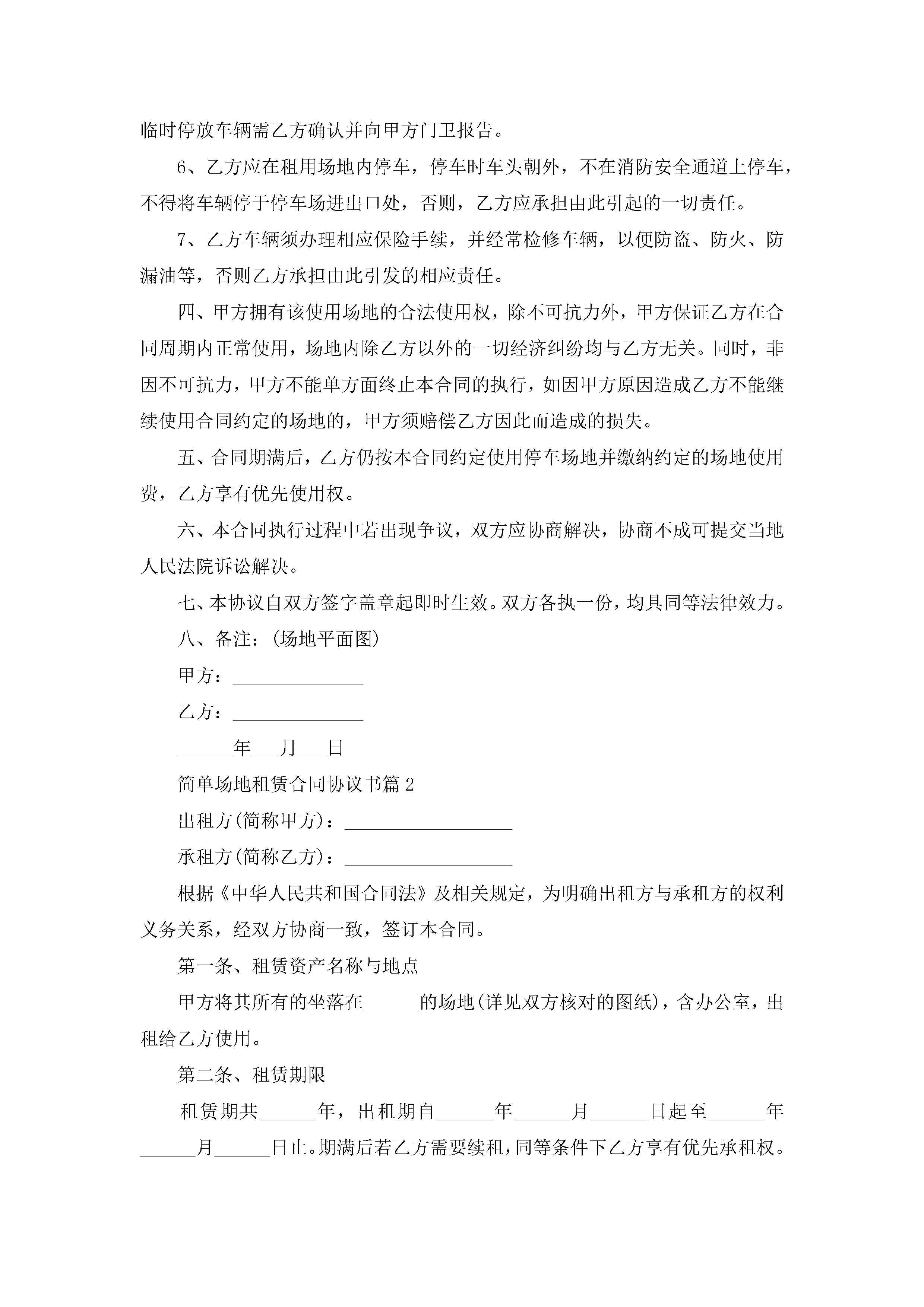 简单场地租赁合同协议书范文jugei3月23日 01:42发布关注370 简单场地租赁合同协议书范文此内容为付费资源,请付费后查看¥10.9 单篇文档限时特惠¥15个人会员开通企业会员开通立即下载无需登陆!可直接快捷下载单个模板付费资源© 版权声明THE ENDWord模板# 实用文档# 实用模板# 合同模板# 租赁合同 如有问题,可点击最底部“联系我们”联系客服 分享QQ空间微博QQ好友海报分享复制链接收藏