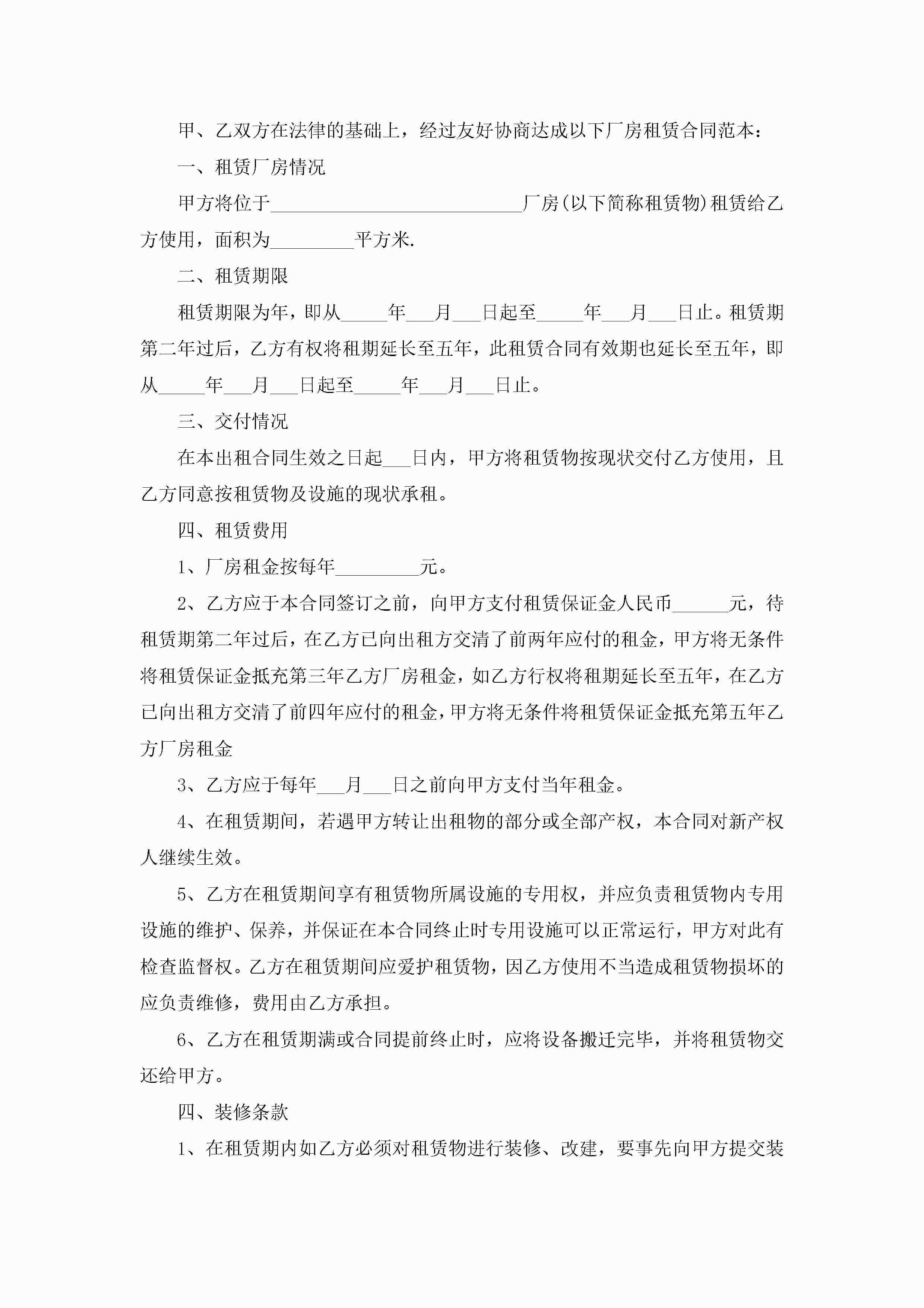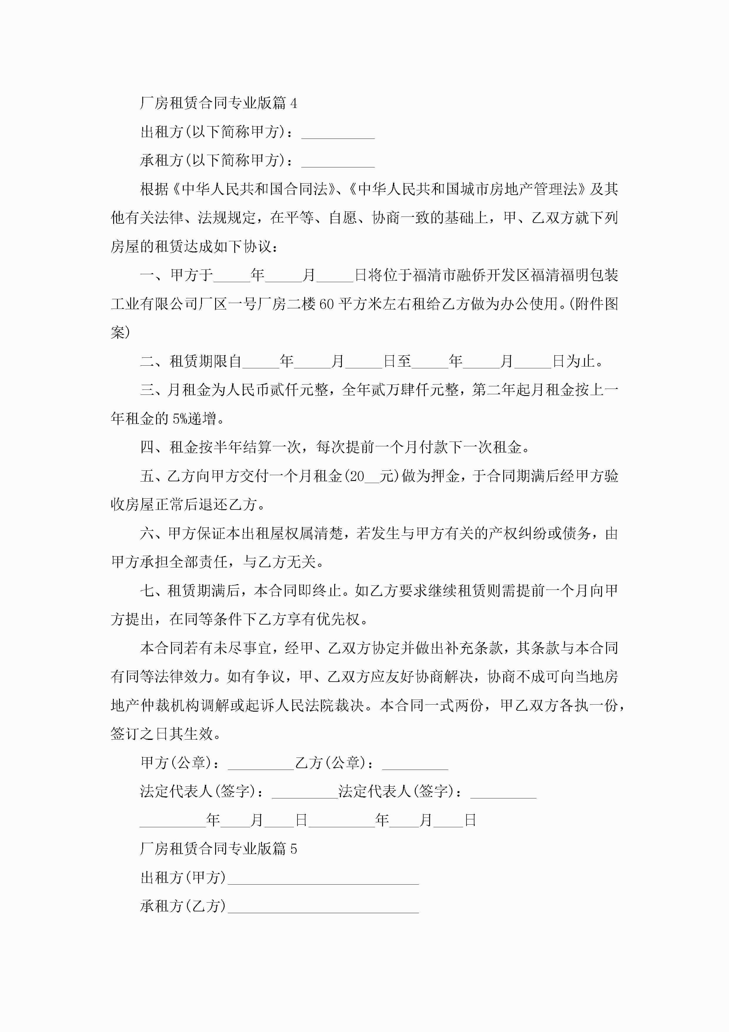 厂房租赁合同最新专业版jugei3月23日 01:42发布关注262 厂房租赁合同最新专业版此内容为付费资源,请付费后查看¥10.9 单篇文档限时特惠¥15个人会员开通企业会员开通立即下载无需登陆!可直接快捷下载单个模板付费资源© 版权声明THE ENDWord模板# 实用文档# 实用模板# 合同模板# 租赁合同 如有问题,可点击最底部“联系我们”联系客服 分享QQ空间微博QQ好友海报分享复制链接收藏