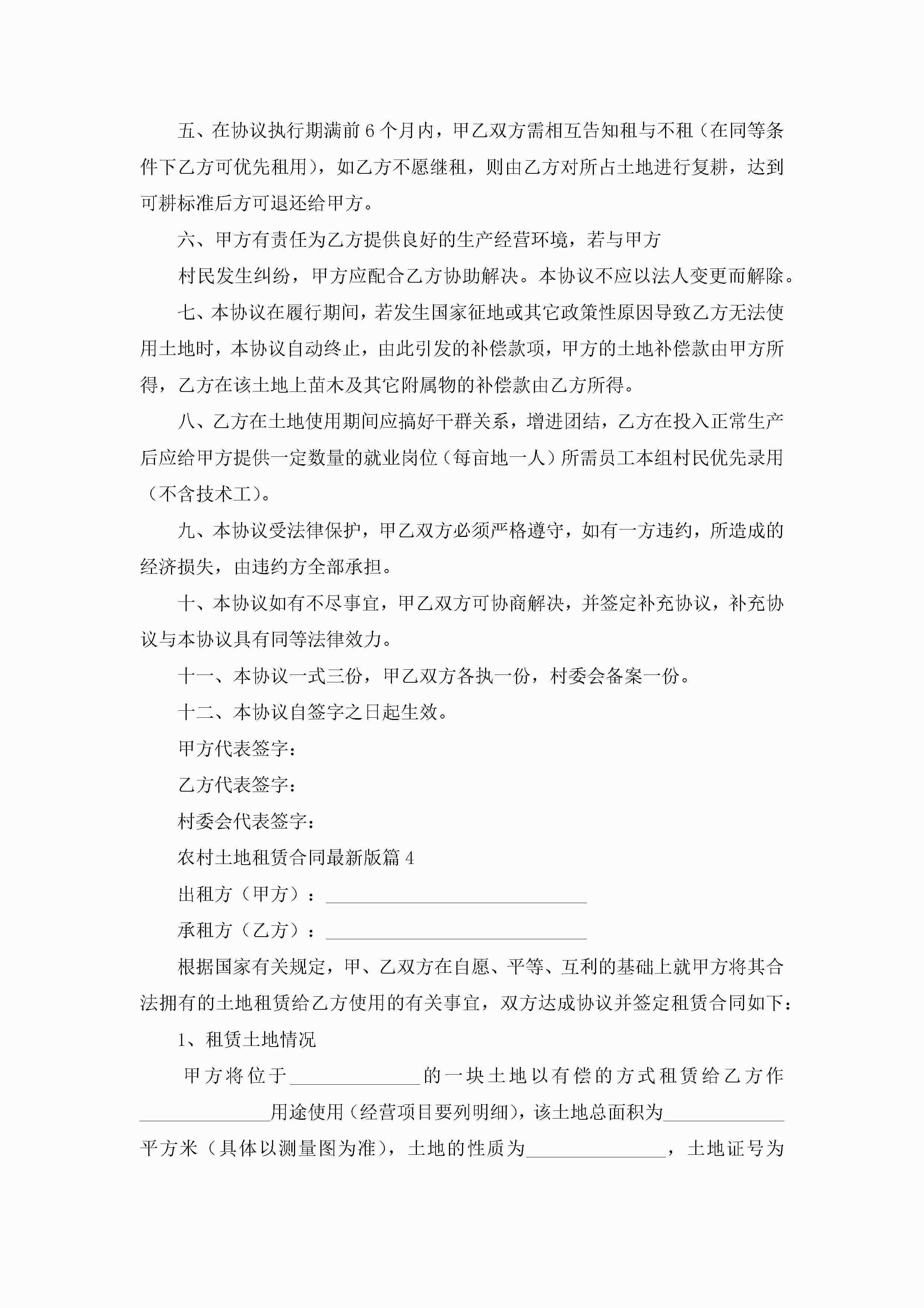 农村土地租赁合同最新版5篇jugei3月23日 01:42发布关注192 农村土地租赁合同最新版5篇此内容为付费资源,请付费后查看¥10.9 单篇文档限时特惠¥15个人会员开通企业会员开通立即下载无需登陆!可直接快捷下载单个模板付费资源© 版权声明THE ENDWord模板# 实用文档# 实用模板# 合同模板# 租赁合同 如有问题,可点击最底部“联系我们”联系客服 分享QQ空间微博QQ好友海报分享复制链接收藏