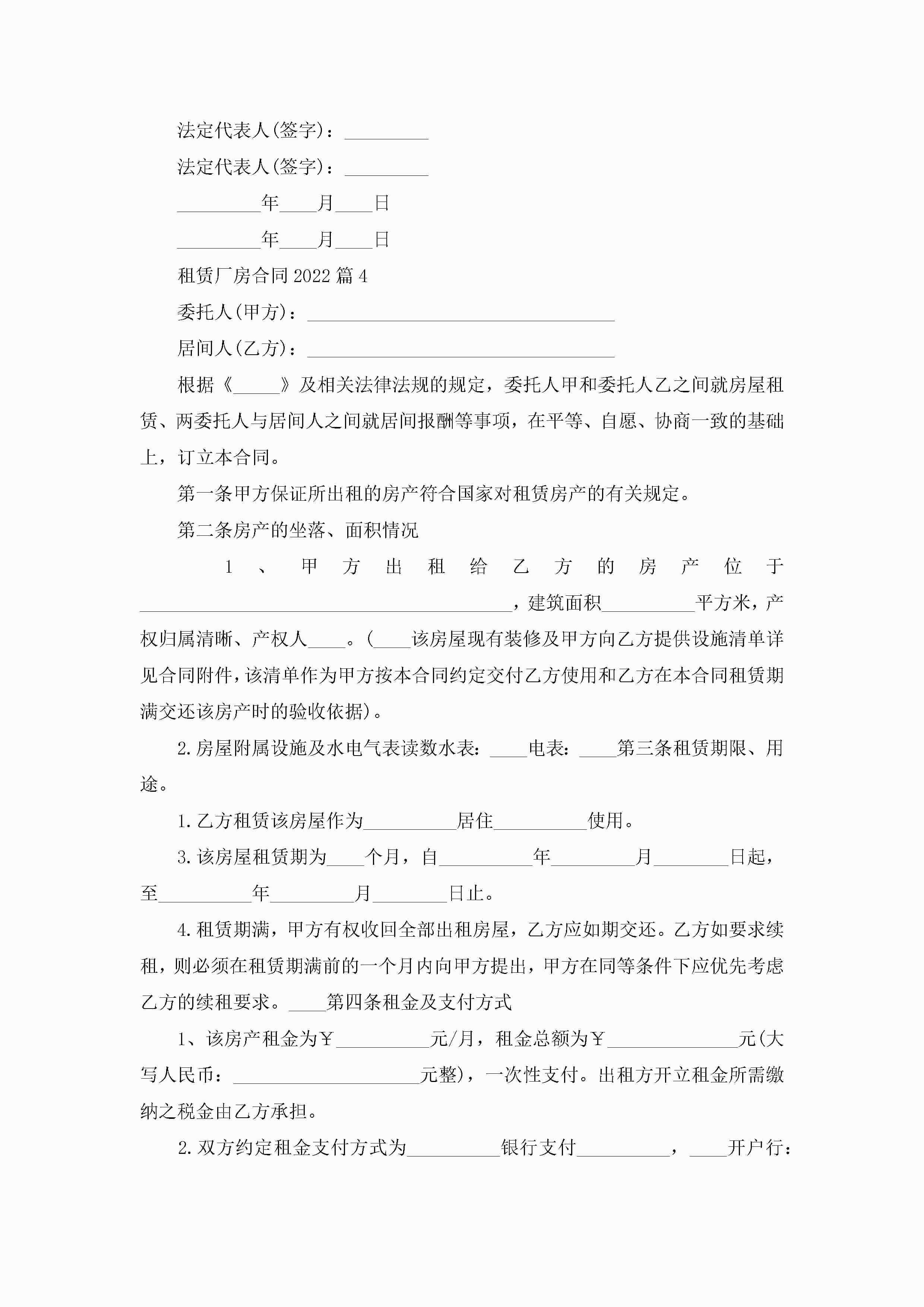 租赁厂房合同2022模板jugei3月23日 01:42发布关注197 租赁厂房合同2022模板此内容为付费资源,请付费后查看¥10.9 单篇文档限时特惠¥15个人会员开通企业会员开通立即下载无需登陆!可直接快捷下载单个模板付费资源© 版权声明THE ENDWord模板# 实用文档# 实用模板# 合同模板# 租赁合同 如有问题,可点击最底部“联系我们”联系客服 分享QQ空间微博QQ好友海报分享复制链接收藏