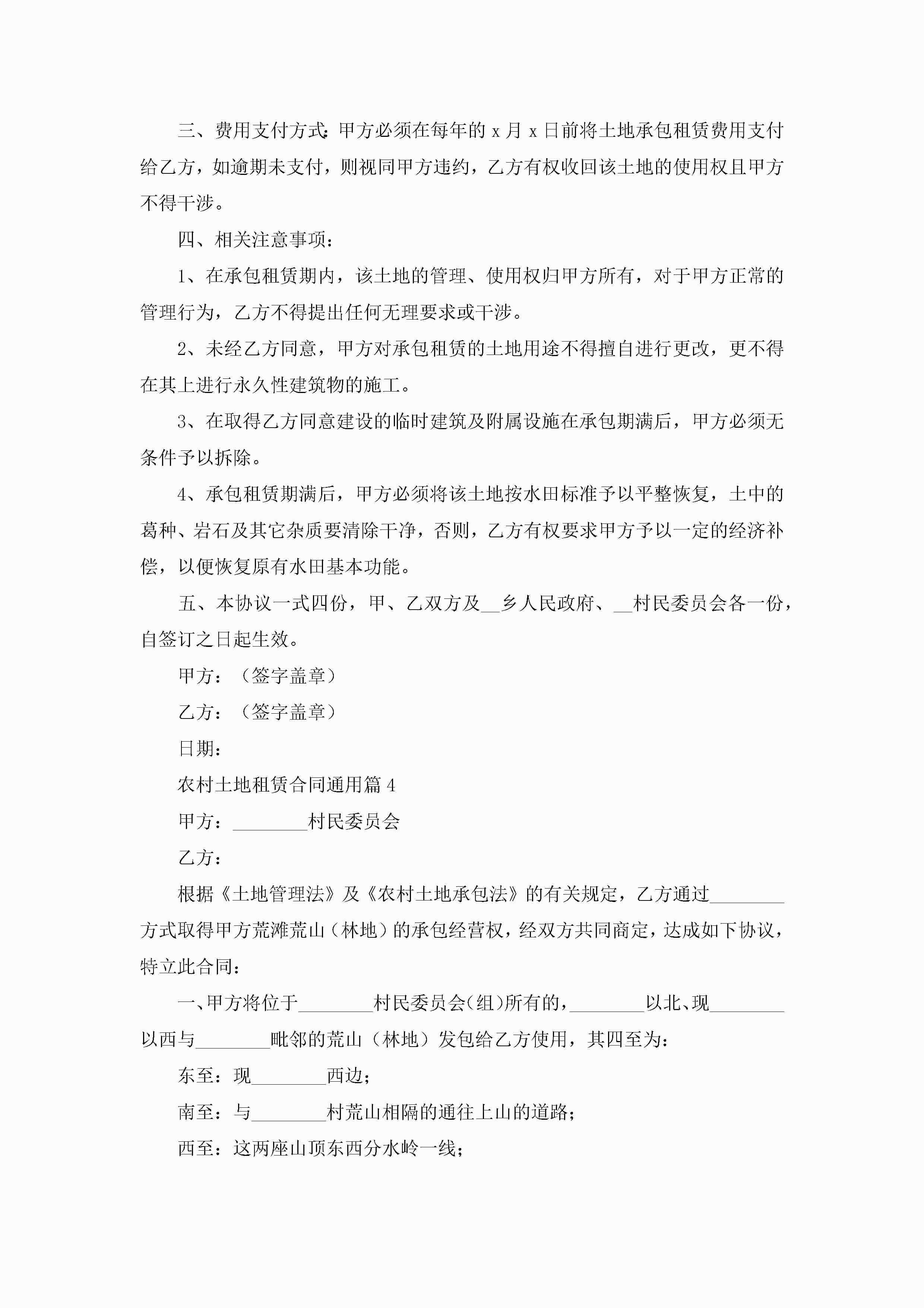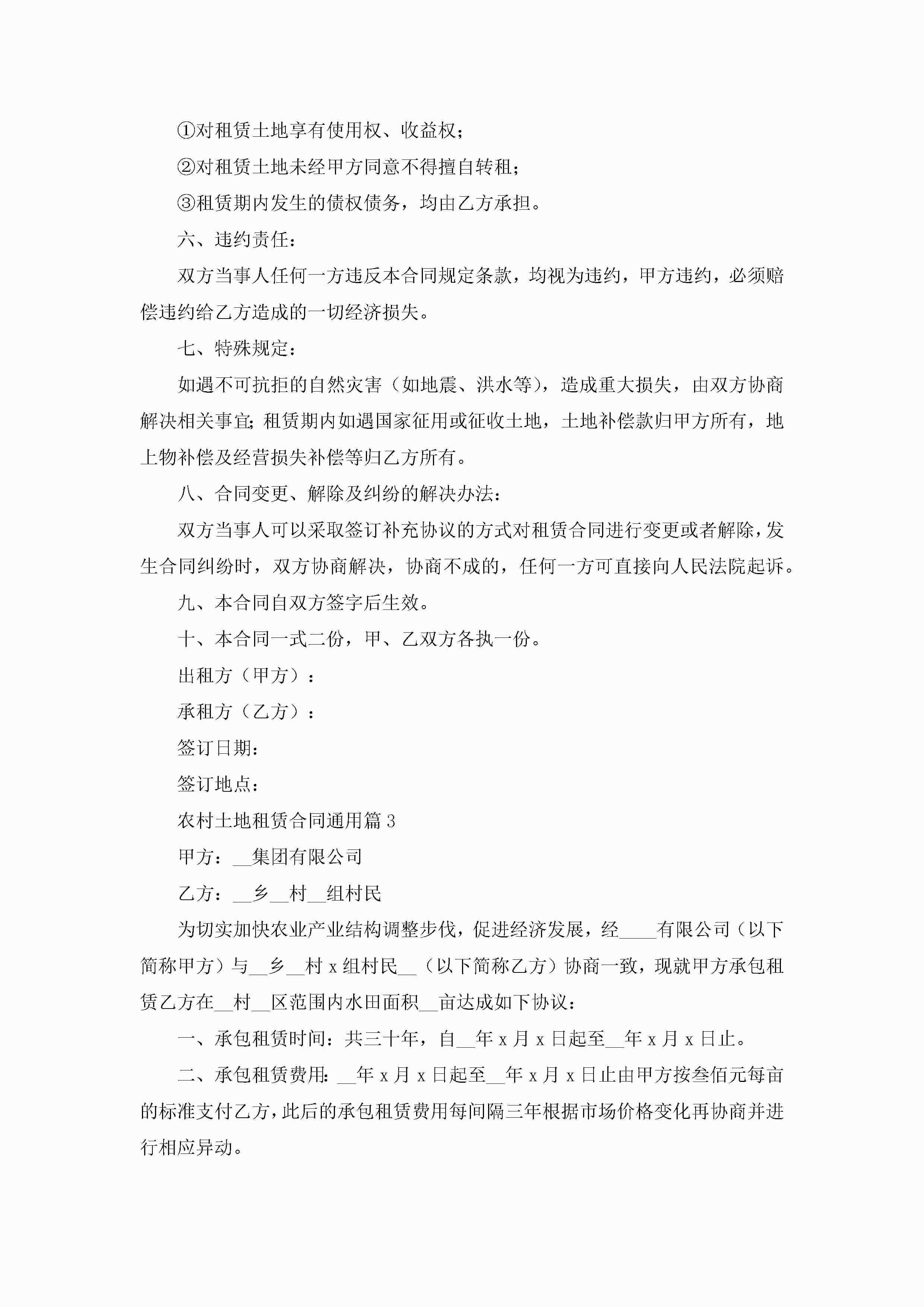 农村土地租赁合同通用5篇(实用)jugei3月23日 01:42发布关注186 农村土地租赁合同通用5篇(实用)此内容为付费资源,请付费后查看¥10.9 单篇文档限时特惠¥15个人会员开通企业会员开通立即下载无需登陆!可直接快捷下载单个模板付费资源© 版权声明THE ENDWord模板# 实用文档# 实用模板# 合同模板# 租赁合同 如有问题,可点击最底部“联系我们”联系客服 分享QQ空间微博QQ好友海报分享复制链接收藏