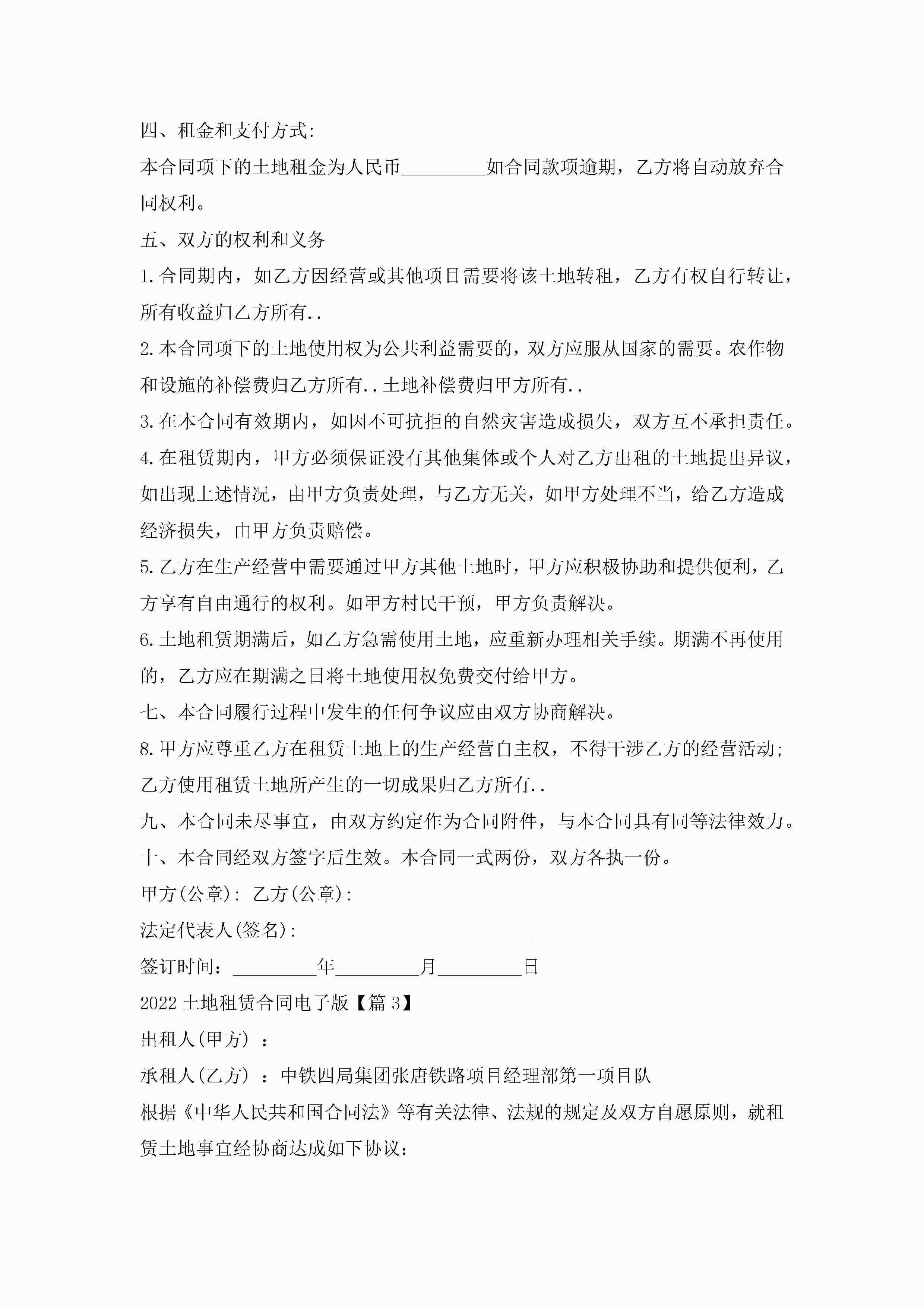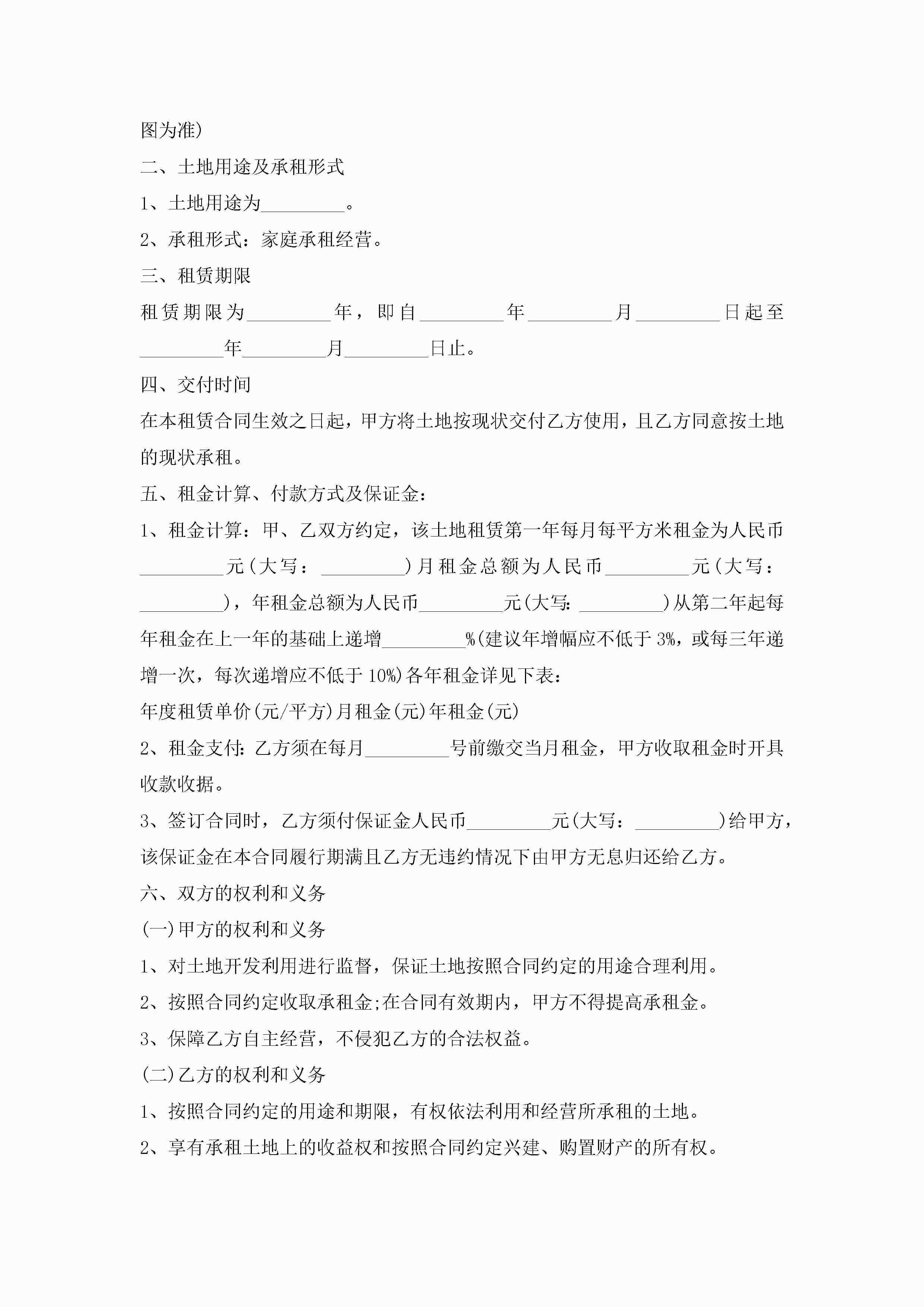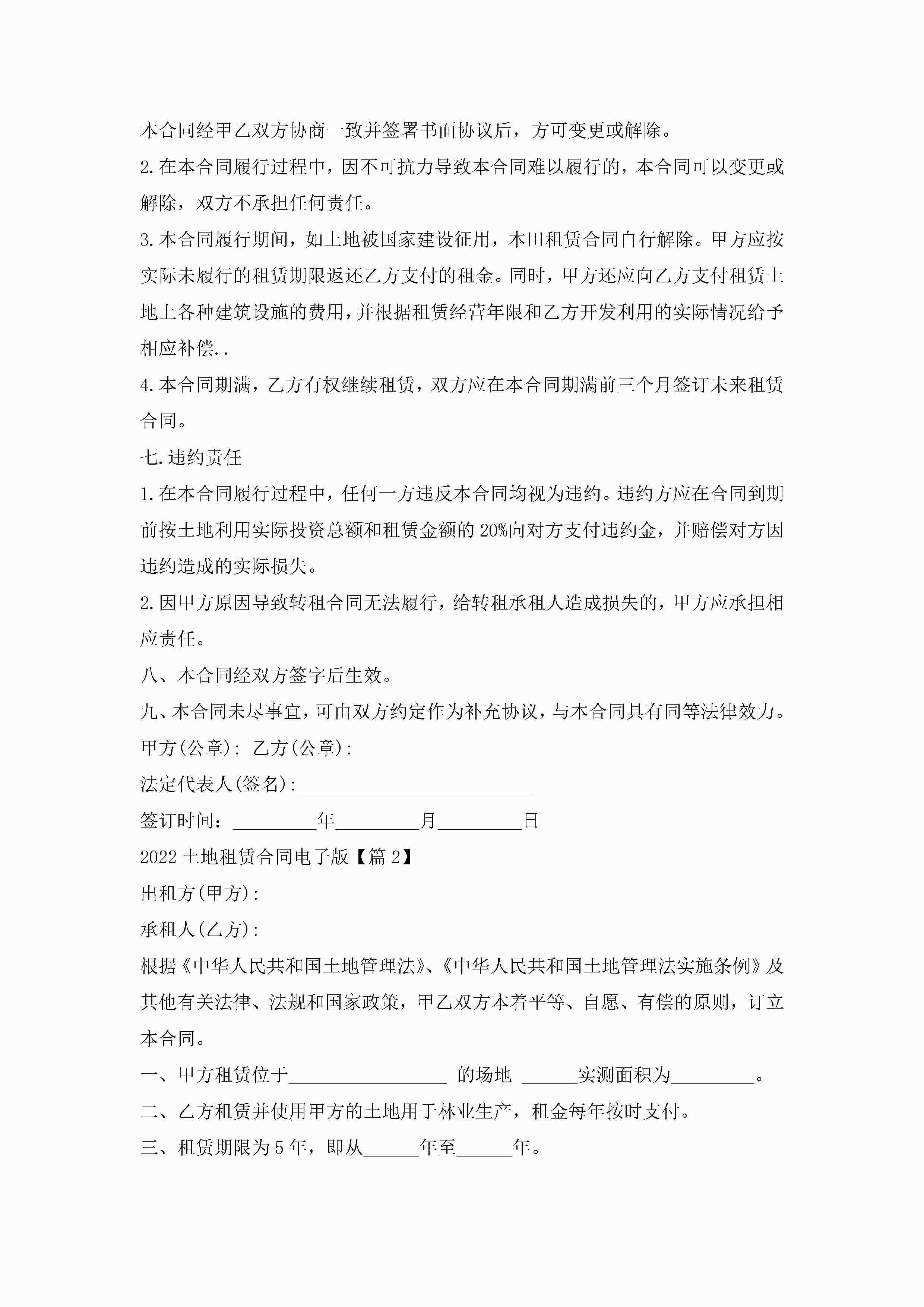 2022土地租赁合同电子版精选6篇jugei3月23日 01:42发布关注187 2022土地租赁合同电子版精选6篇此内容为付费资源,请付费后查看¥10.9 单篇文档限时特惠¥15个人会员开通企业会员开通立即下载无需登陆!可直接快捷下载单个模板付费资源© 版权声明THE ENDWord模板# 实用文档# 实用模板# 合同模板# 租赁合同 如有问题,可点击最底部“联系我们”联系客服 分享QQ空间微博QQ好友海报分享复制链接收藏