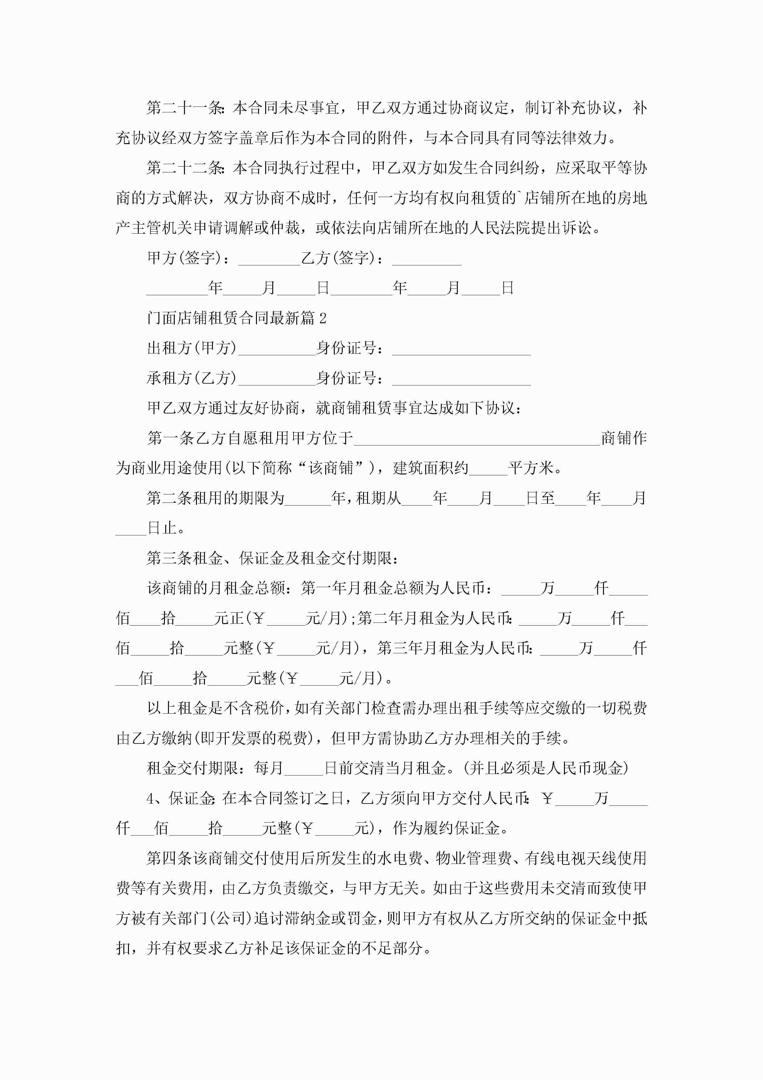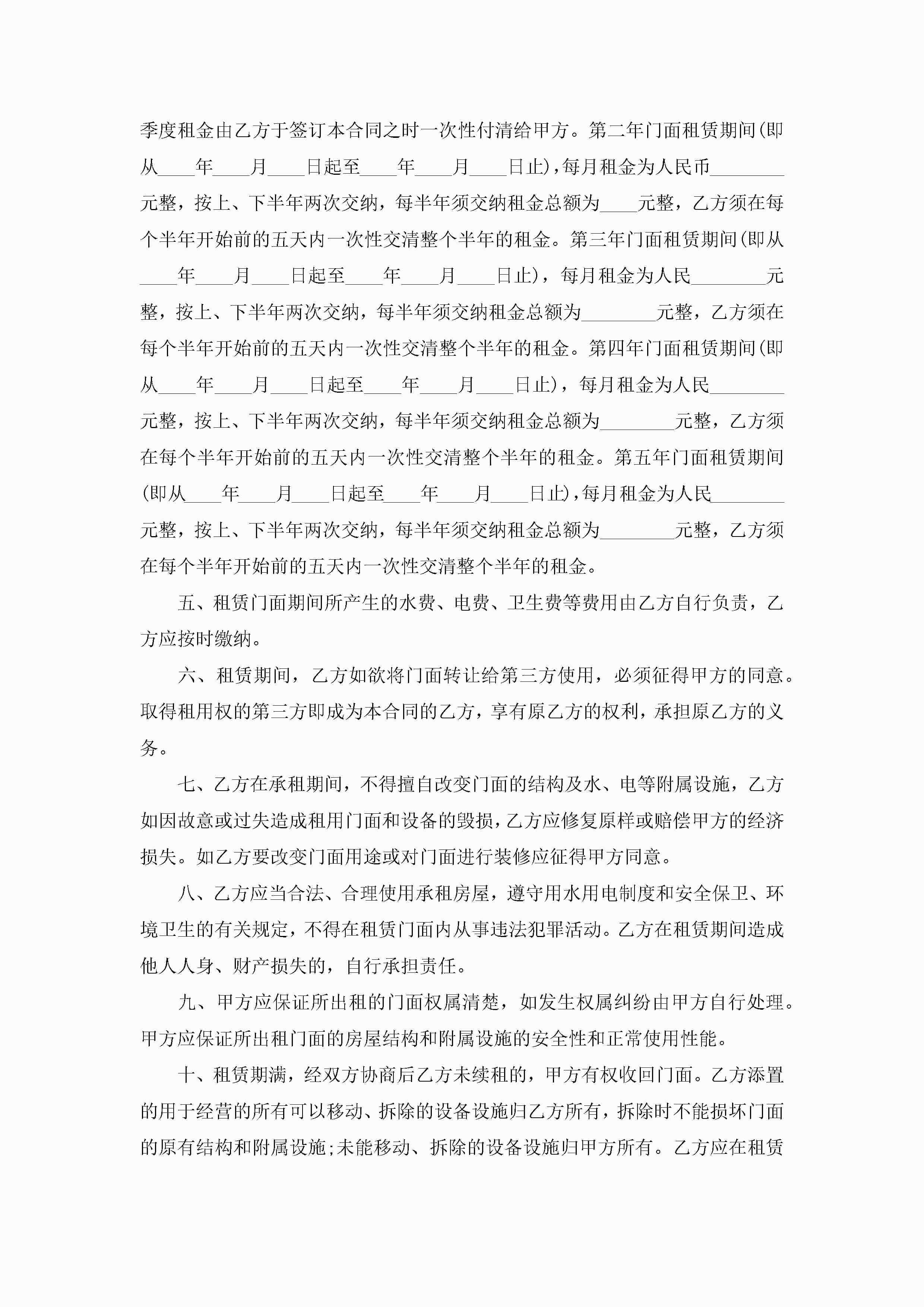 门面店铺租赁合同最新模板jugei3月23日 01:42发布关注214 门面店铺租赁合同最新模板此内容为付费资源,请付费后查看¥10.9 单篇文档限时特惠¥15个人会员开通企业会员开通立即下载无需登陆!可直接快捷下载单个模板付费资源© 版权声明THE ENDWord模板# 实用文档# 实用模板# 合同模板# 租赁合同 如有问题,可点击最底部“联系我们”联系客服 分享QQ空间微博QQ好友海报分享复制链接收藏