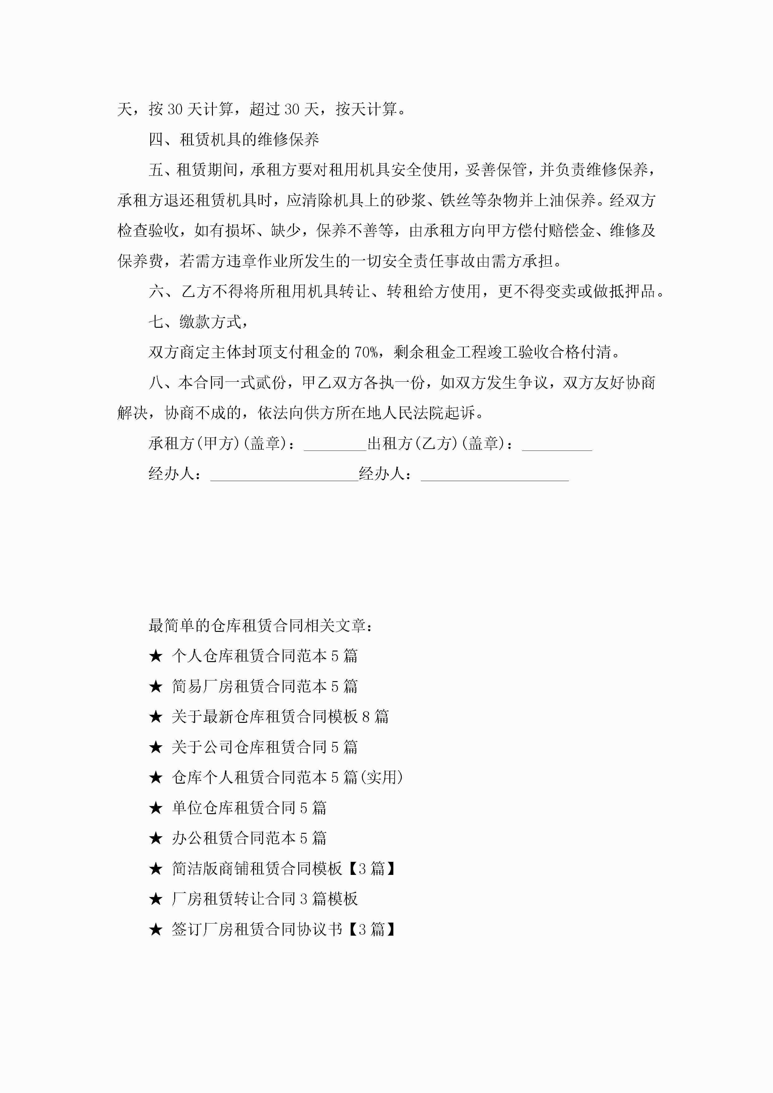 最简单的仓库租赁合同模板jugei3月23日 01:42发布关注285 最简单的仓库租赁合同模板此内容为付费资源,请付费后查看¥10.9 单篇文档限时特惠¥15个人会员开通企业会员开通立即下载无需登陆!可直接快捷下载单个模板付费资源© 版权声明THE ENDWord模板# 实用文档# 实用模板# 合同模板# 租赁合同 如有问题,可点击最底部“联系我们”联系客服 分享QQ空间微博QQ好友海报分享复制链接收藏