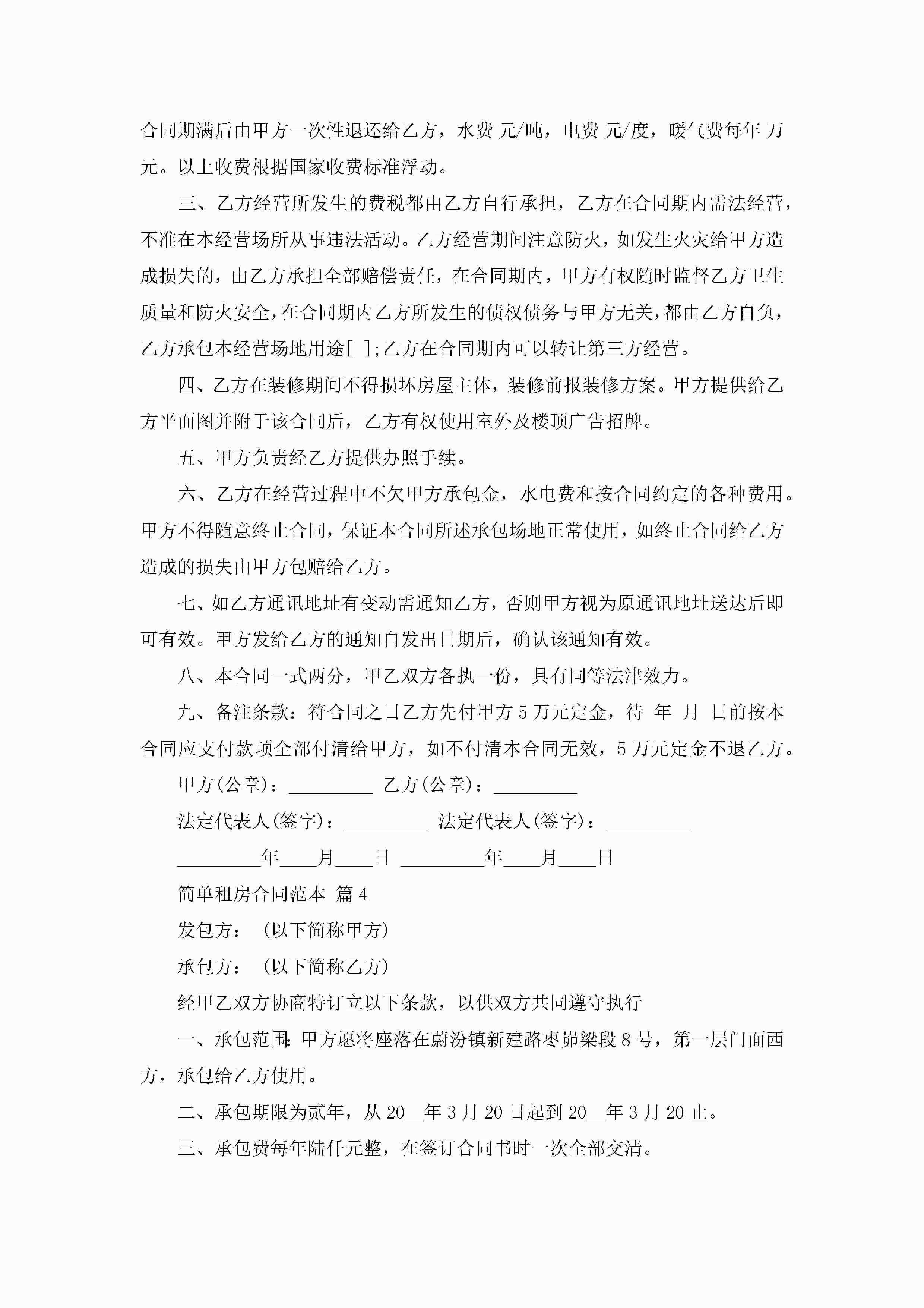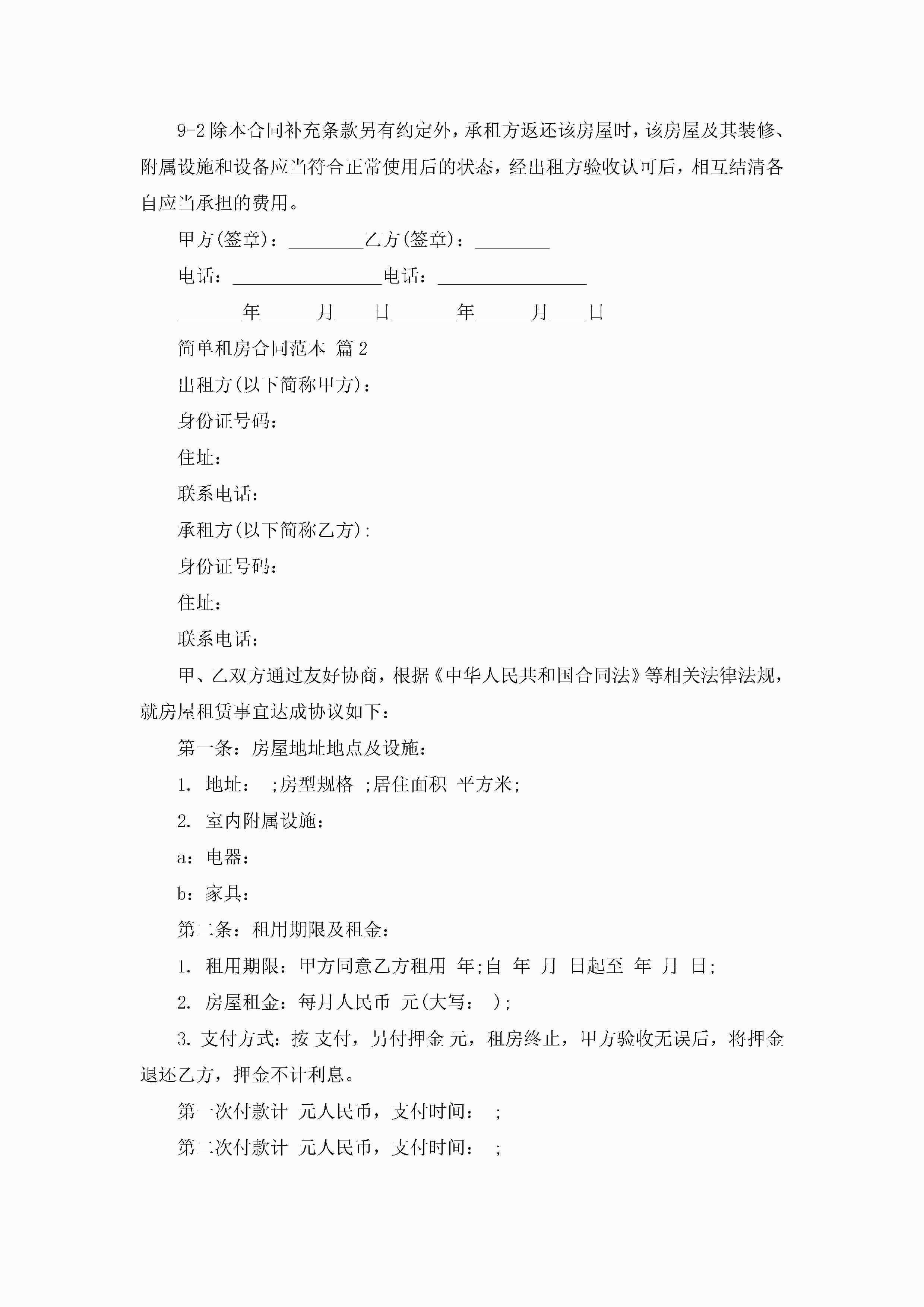 简单租房合同范本最新【6篇】jugei3月23日 01:42发布关注197 简单租房合同范本最新【6篇】此内容为付费资源,请付费后查看¥10.9 单篇文档限时特惠¥15个人会员开通企业会员开通立即下载无需登陆!可直接快捷下载单个模板付费资源© 版权声明THE ENDWord模板# 实用文档# 实用模板# 合同模板# 租赁合同 如有问题,可点击最底部“联系我们”联系客服 分享QQ空间微博QQ好友海报分享复制链接收藏