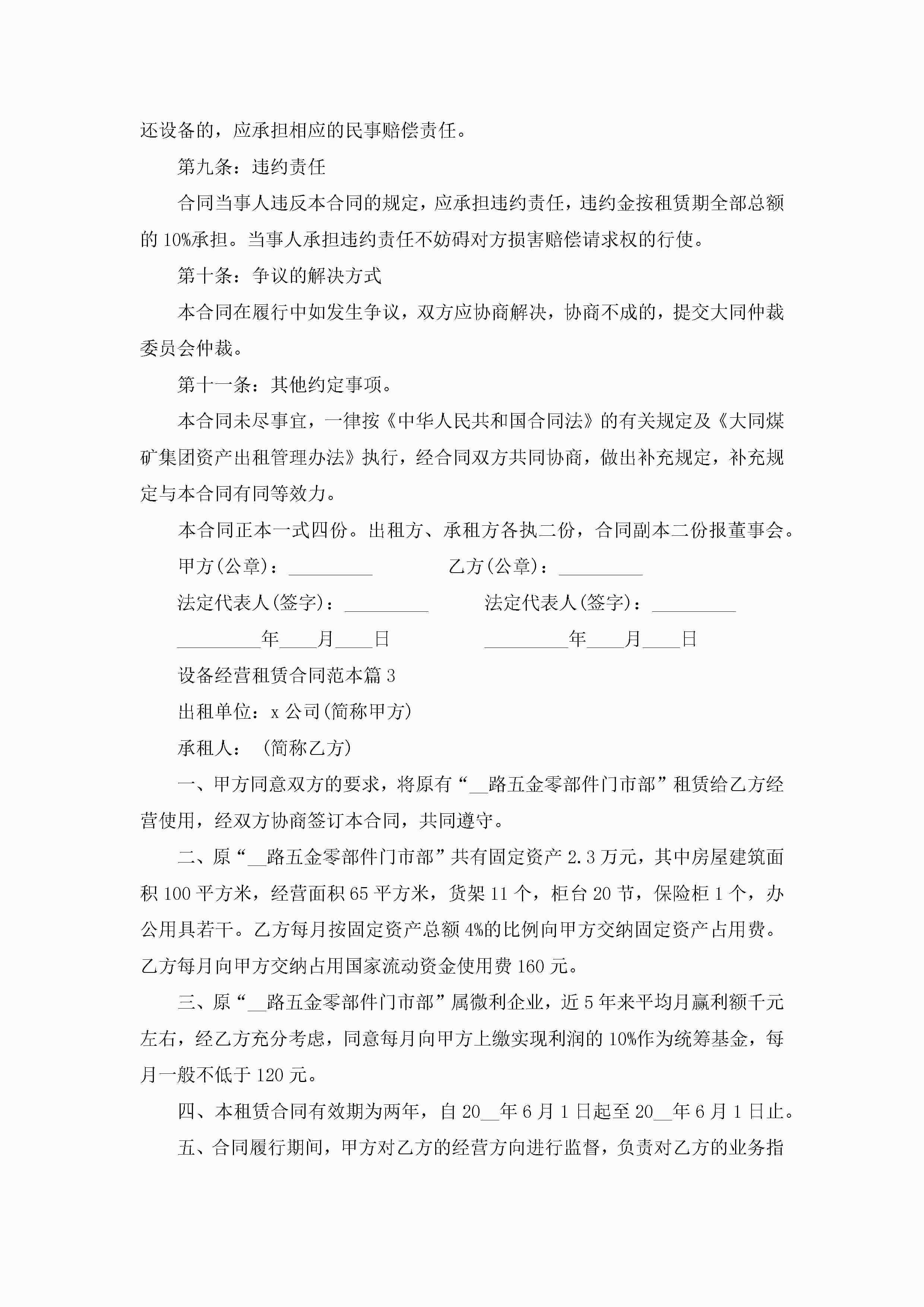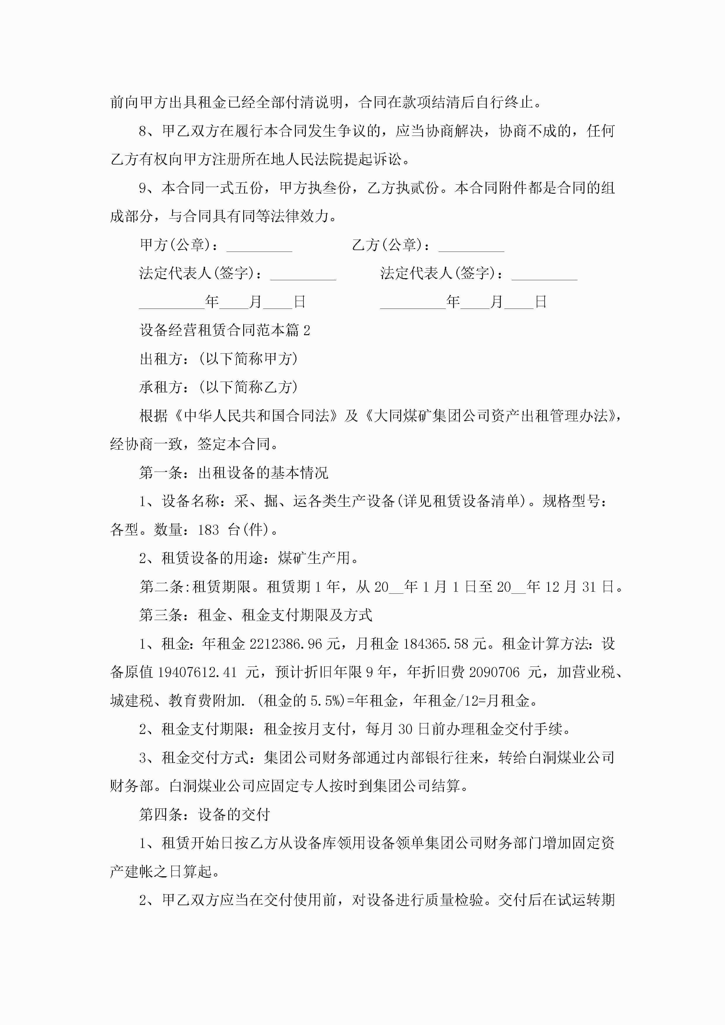 设备经营租赁合同最新范本jugei3月23日 01:42发布关注183 设备经营租赁合同最新范本此内容为付费资源,请付费后查看¥10.9 单篇文档限时特惠¥15个人会员开通企业会员开通立即下载无需登陆!可直接快捷下载单个模板付费资源© 版权声明THE ENDWord模板# 实用文档# 实用模板# 合同模板# 租赁合同 如有问题,可点击最底部“联系我们”联系客服 分享QQ空间微博QQ好友海报分享复制链接收藏