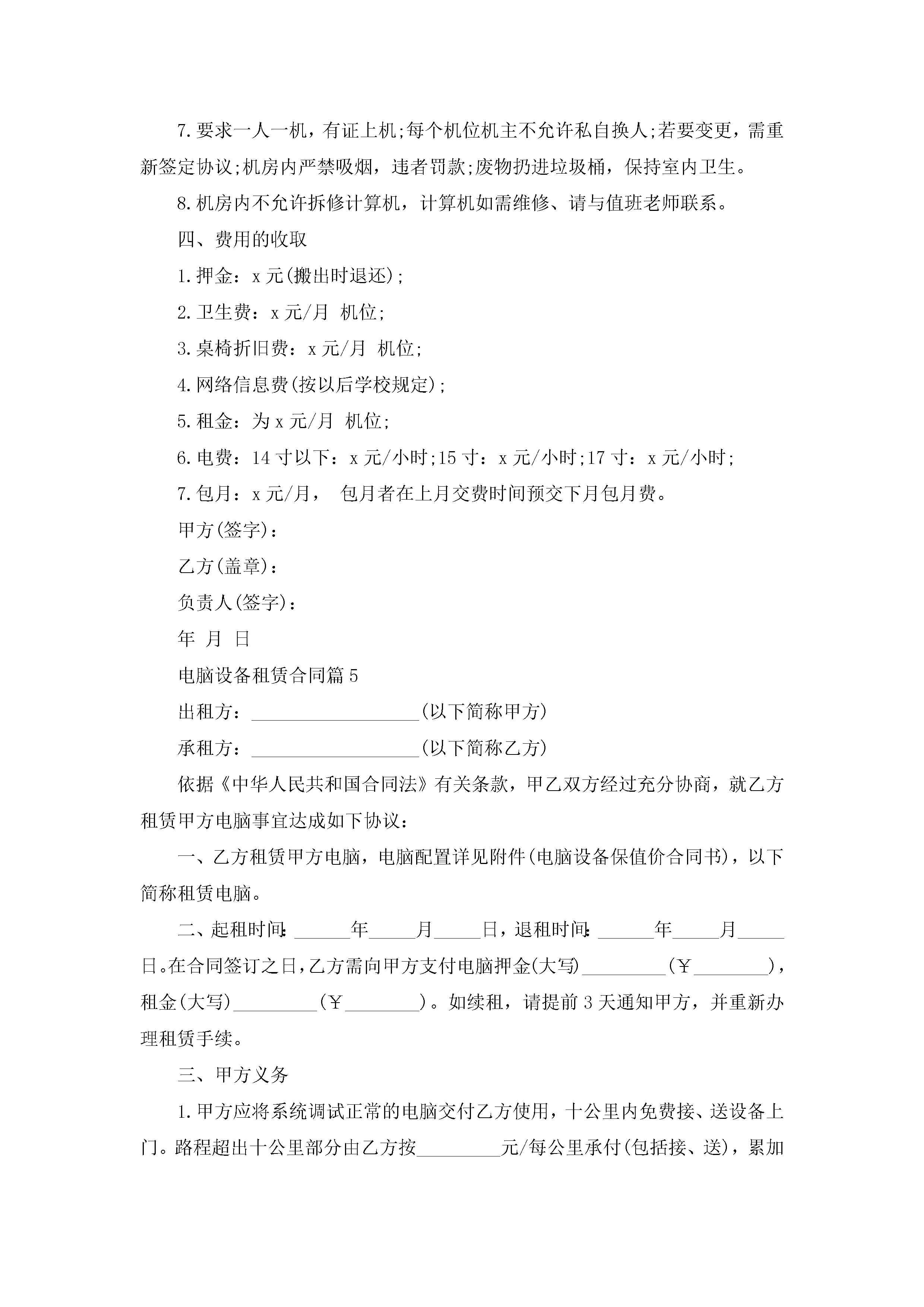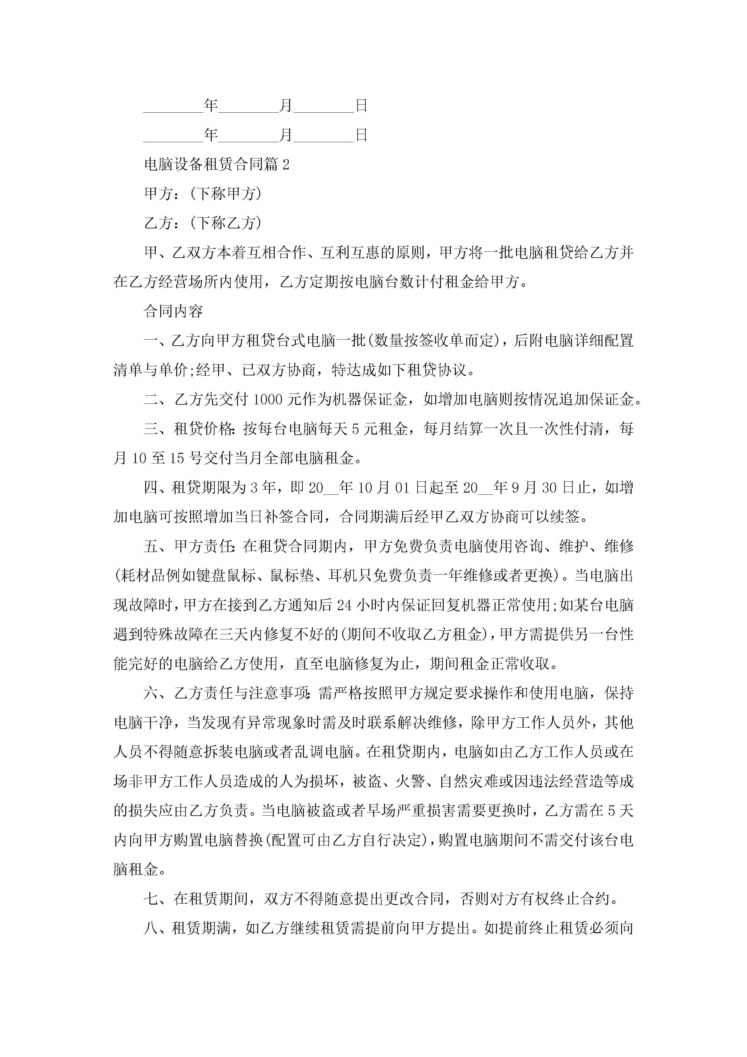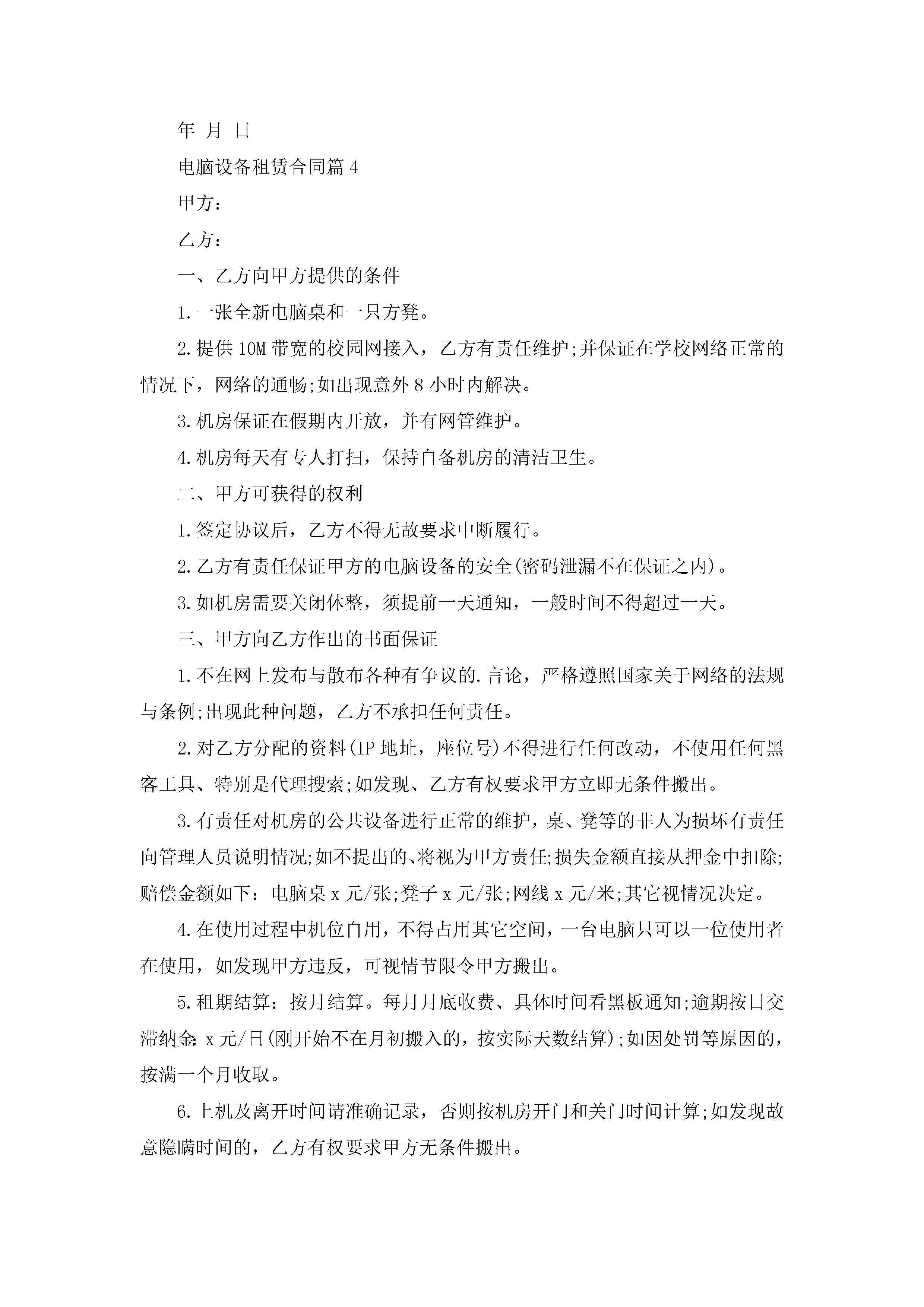 电脑设备租赁合同模板jugei3月23日 01:42发布关注191 电脑设备租赁合同模板此内容为付费资源,请付费后查看¥10.9 单篇文档限时特惠¥15个人会员开通企业会员开通立即下载无需登陆!可直接快捷下载单个模板付费资源© 版权声明THE ENDWord模板# 实用文档# 实用模板# 合同模板# 租赁合同 如有问题,可点击最底部“联系我们”联系客服 分享QQ空间微博QQ好友海报分享复制链接收藏