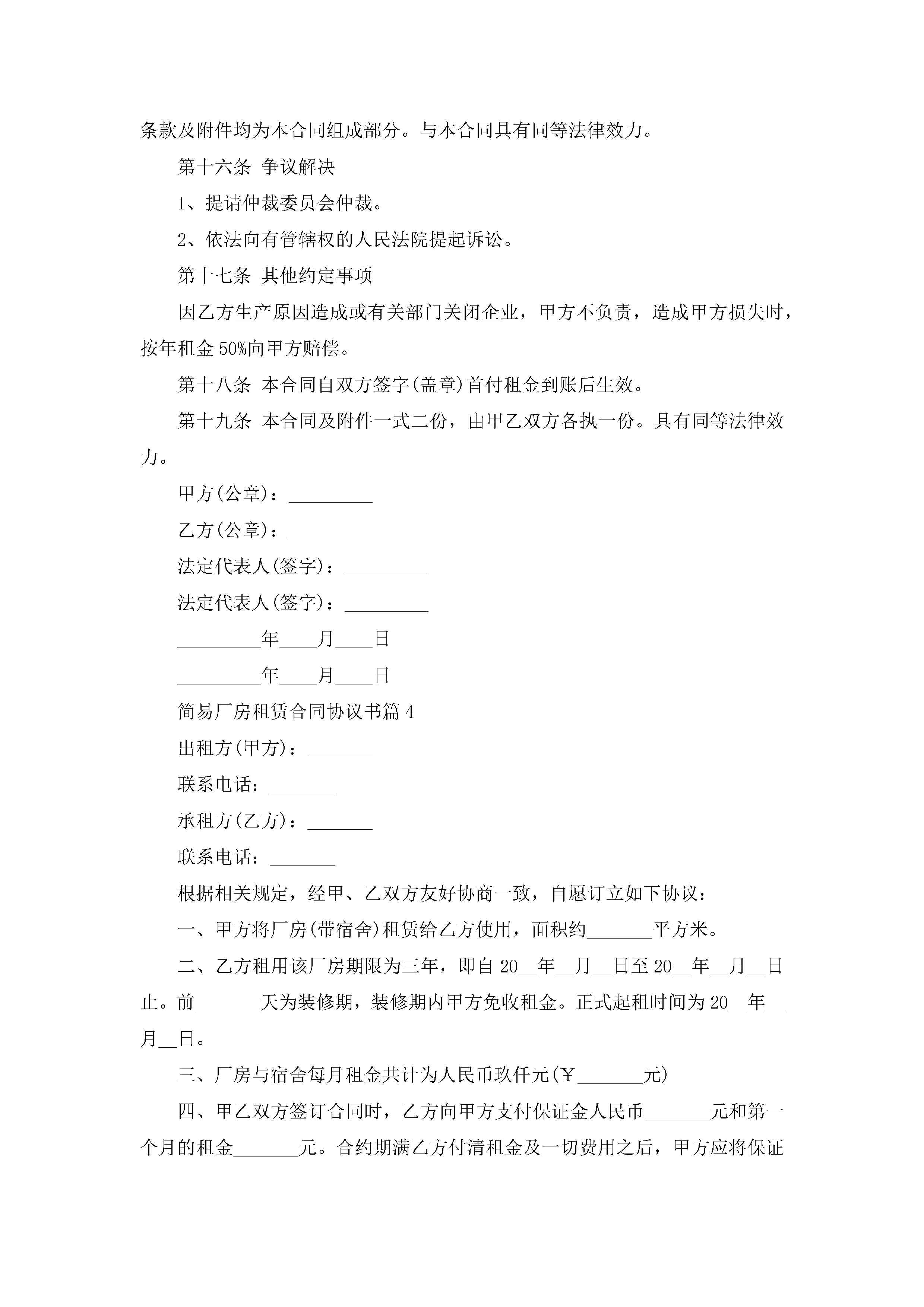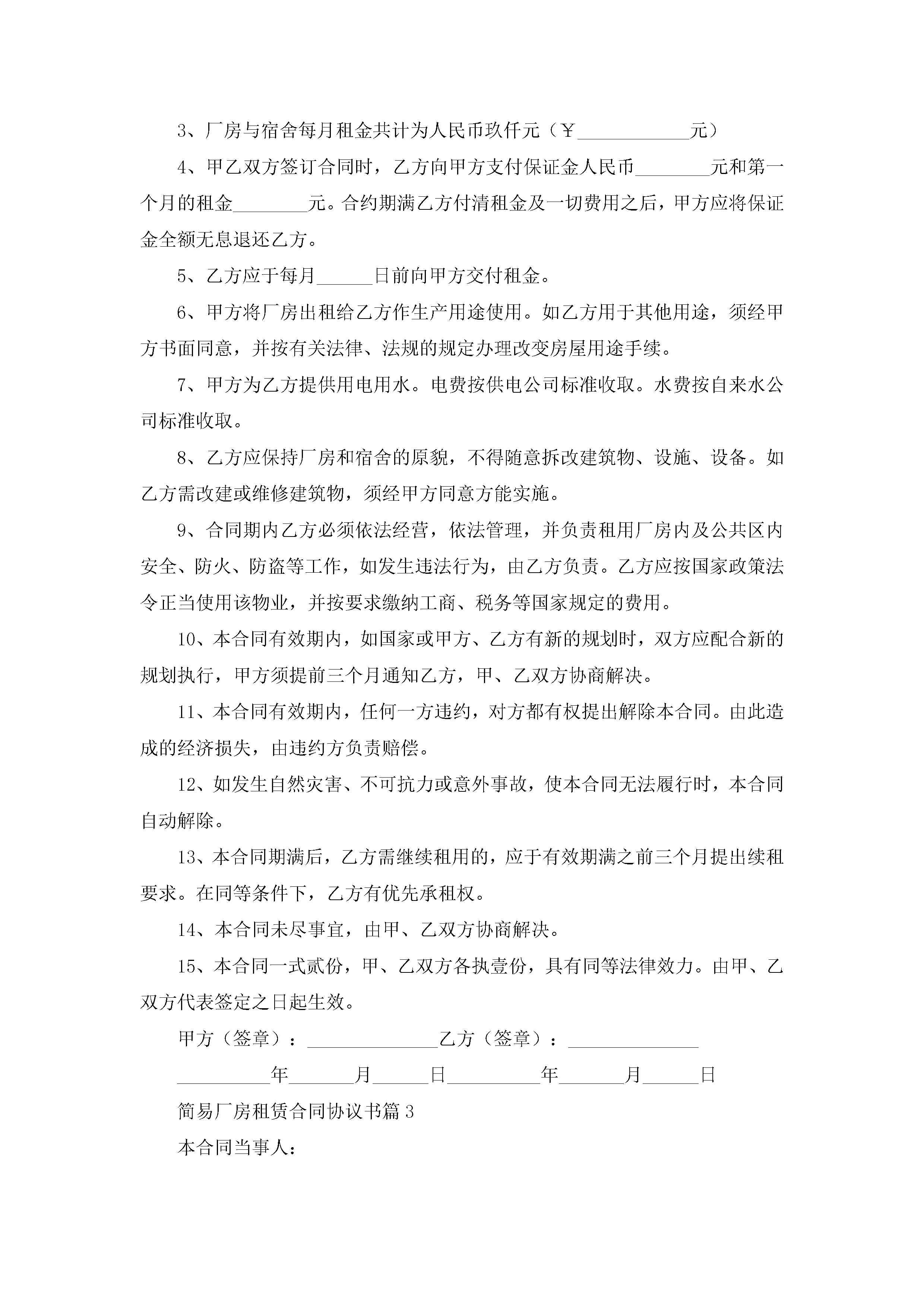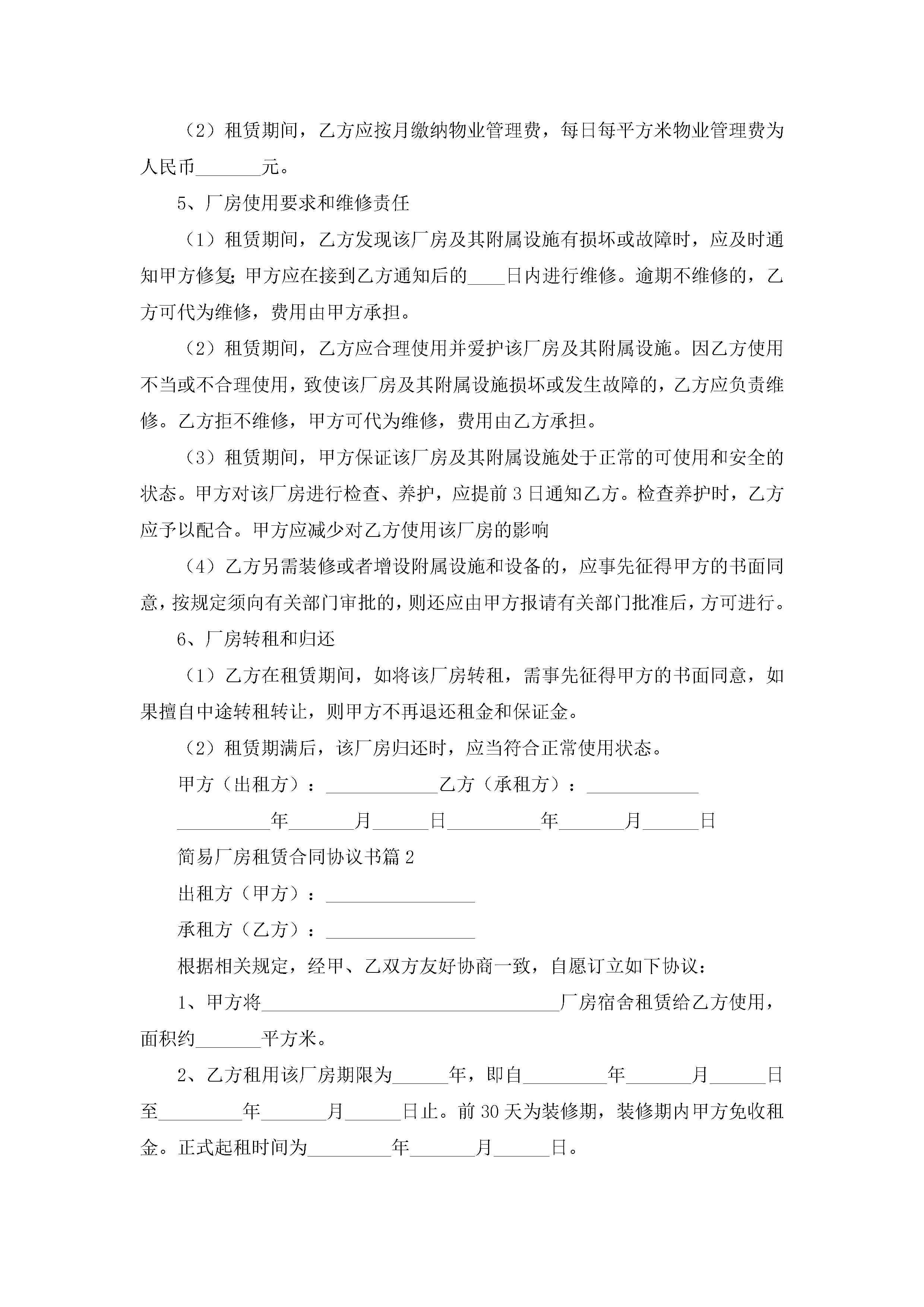 简易厂房租赁合同协议书5篇jugei3月23日 01:42发布关注260 简易厂房租赁合同协议书5篇此内容为付费资源,请付费后查看¥10.9 单篇文档限时特惠¥15个人会员开通企业会员开通立即下载无需登陆!可直接快捷下载单个模板付费资源© 版权声明THE ENDWord模板# 实用文档# 实用模板# 合同模板# 租赁合同 如有问题,可点击最底部“联系我们”联系客服 分享QQ空间微博QQ好友海报分享复制链接收藏