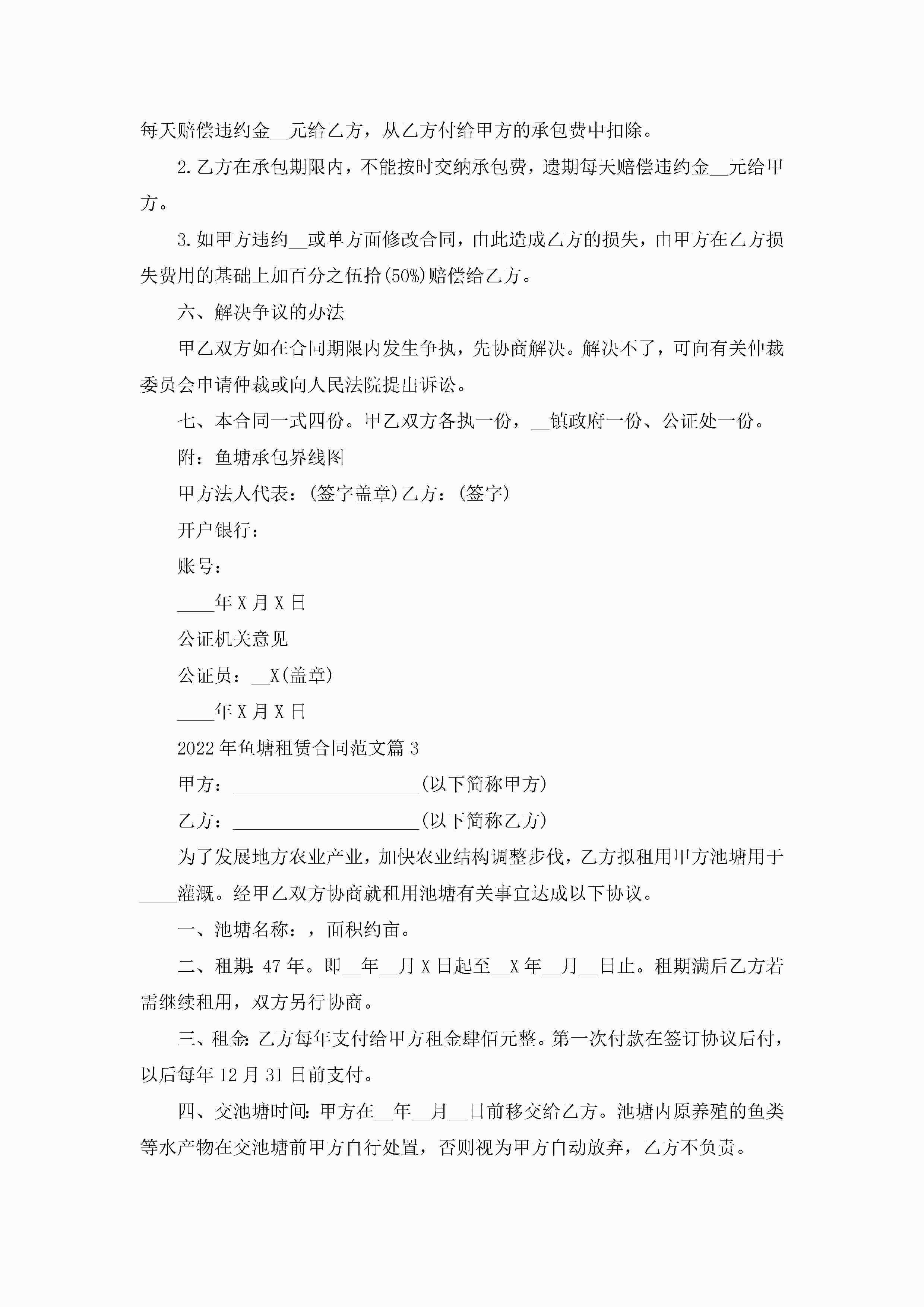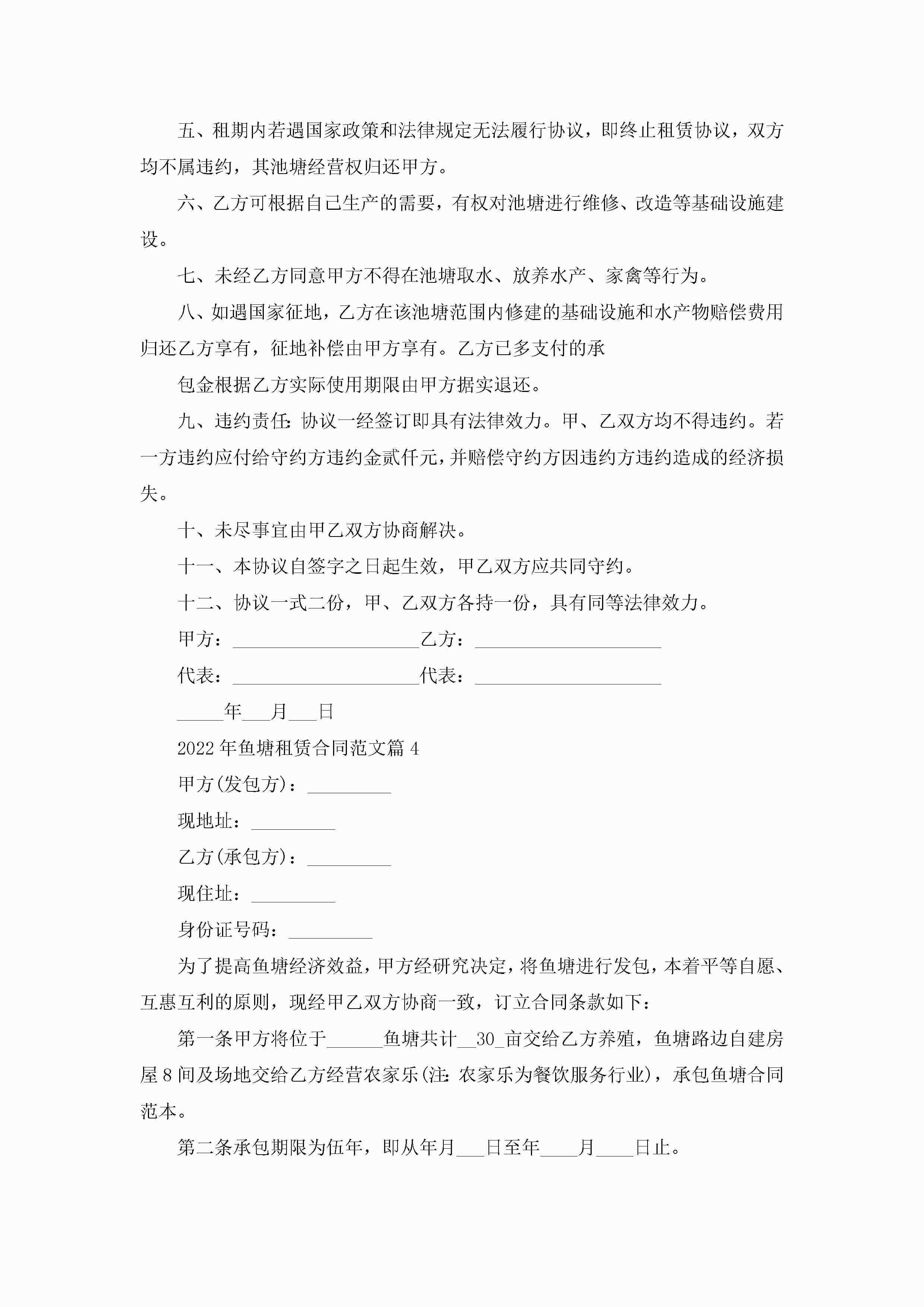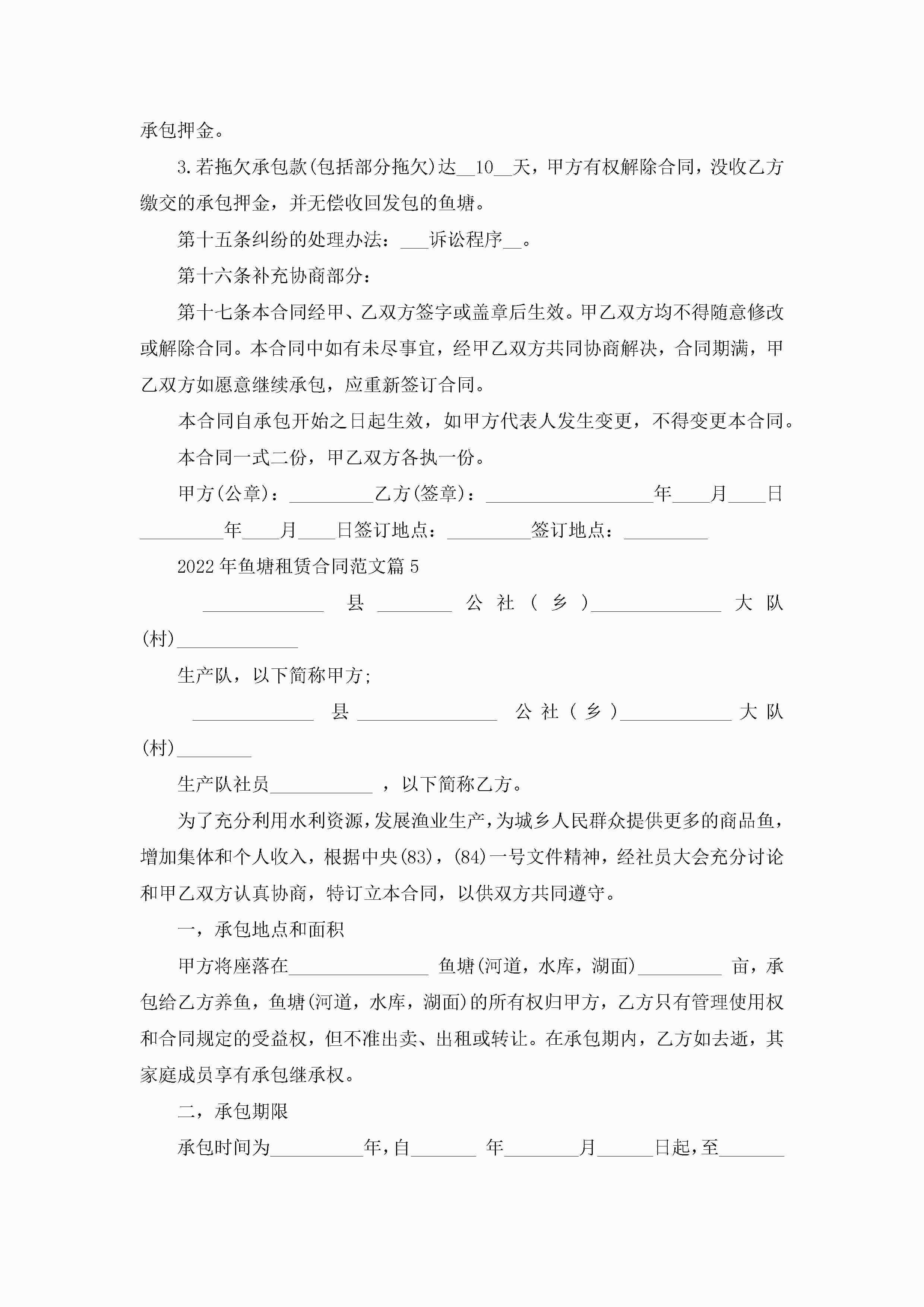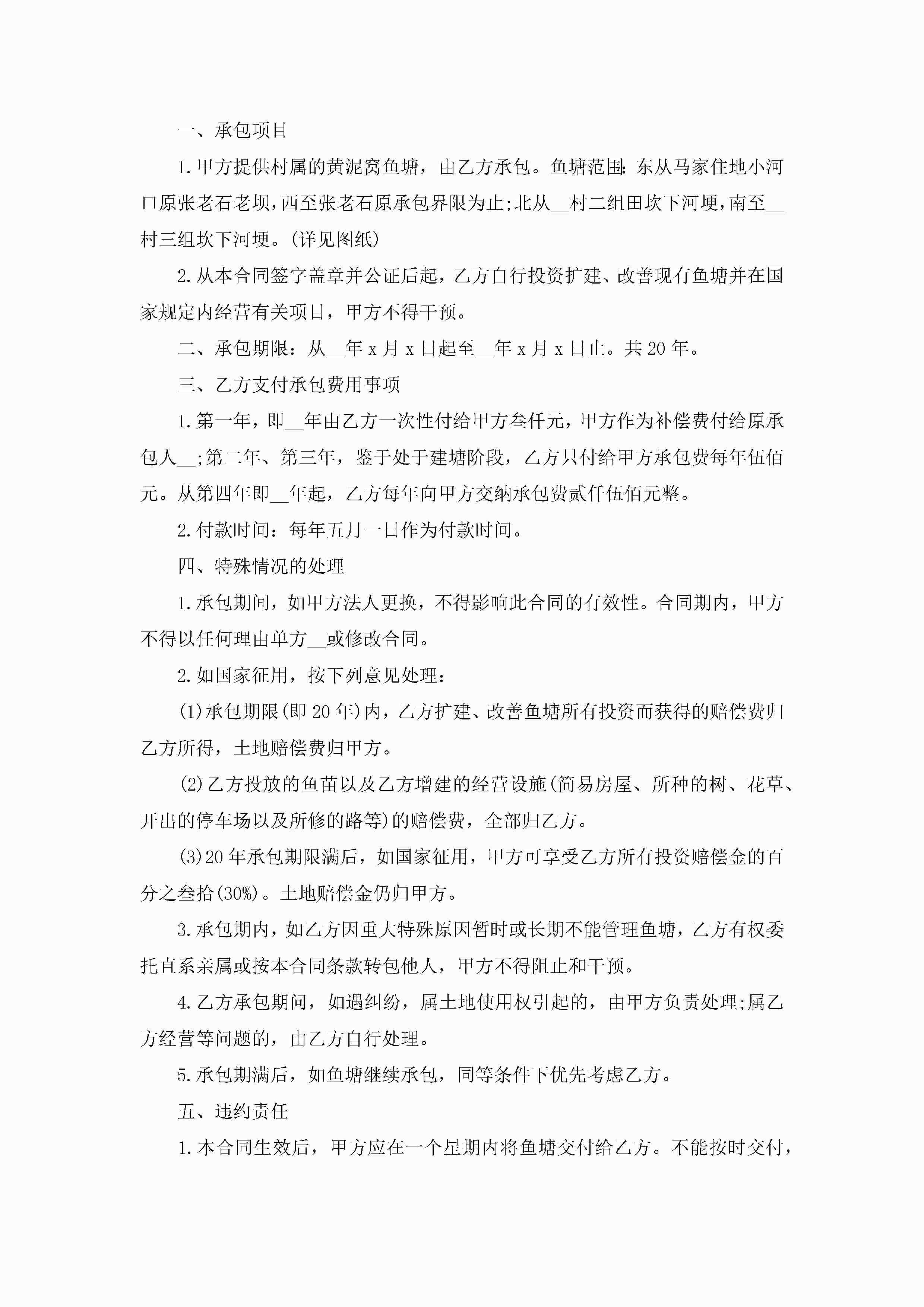 2022年鱼塘租赁合同最新范文jugei3月23日 01:42发布关注220 2022年鱼塘租赁合同最新范文此内容为付费资源,请付费后查看¥10.9 单篇文档限时特惠¥15个人会员开通企业会员开通立即下载无需登陆!可直接快捷下载单个模板付费资源© 版权声明THE ENDWord模板# 实用文档# 实用模板# 合同模板# 租赁合同 如有问题,可点击最底部“联系我们”联系客服 分享QQ空间微博QQ好友海报分享复制链接收藏