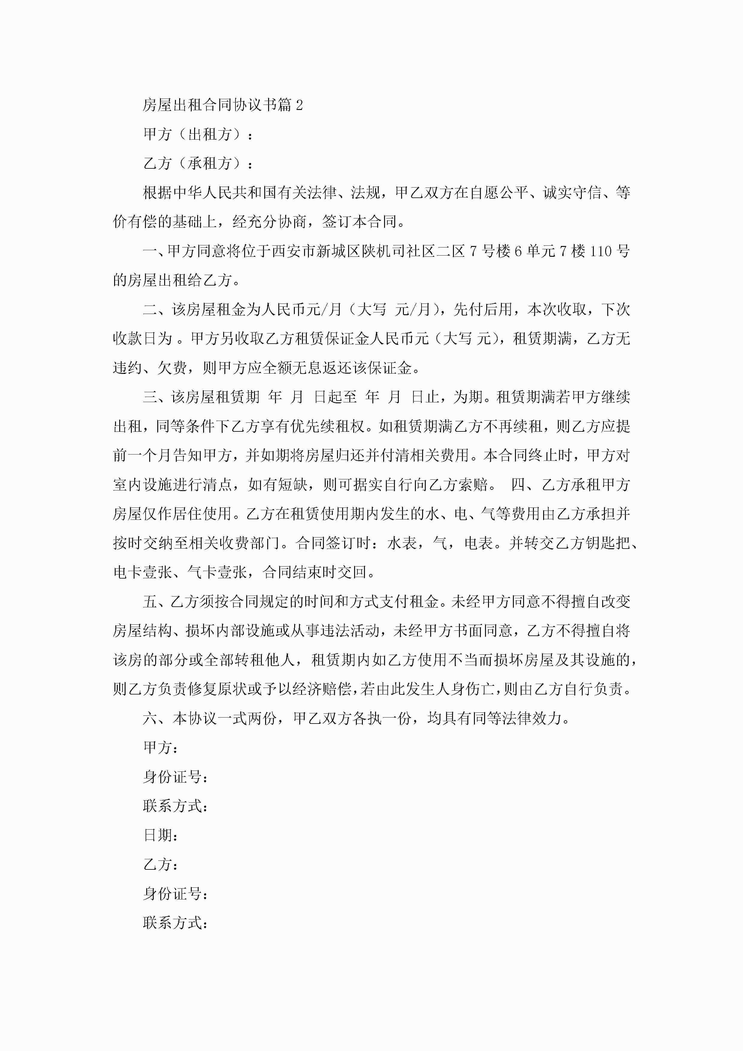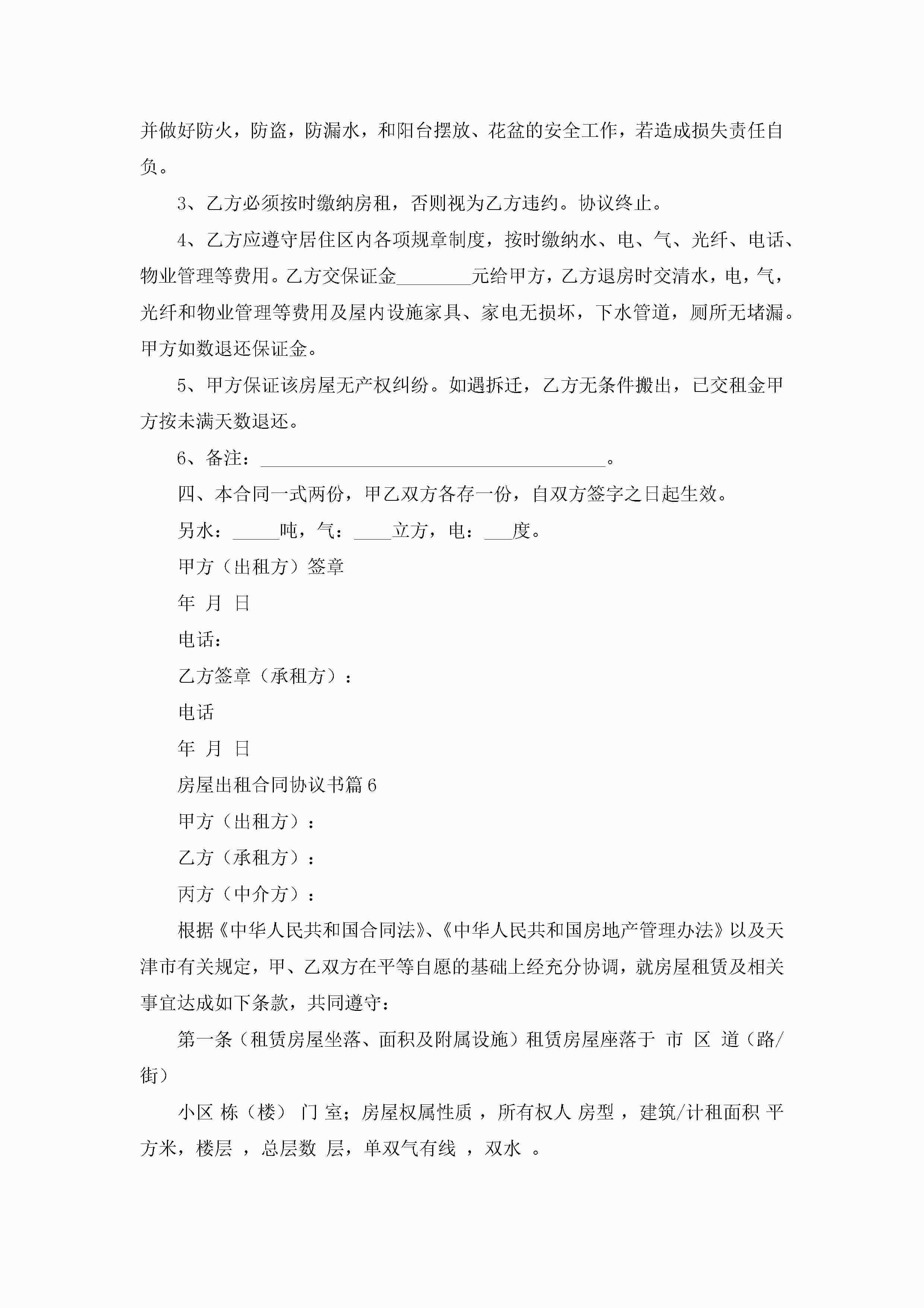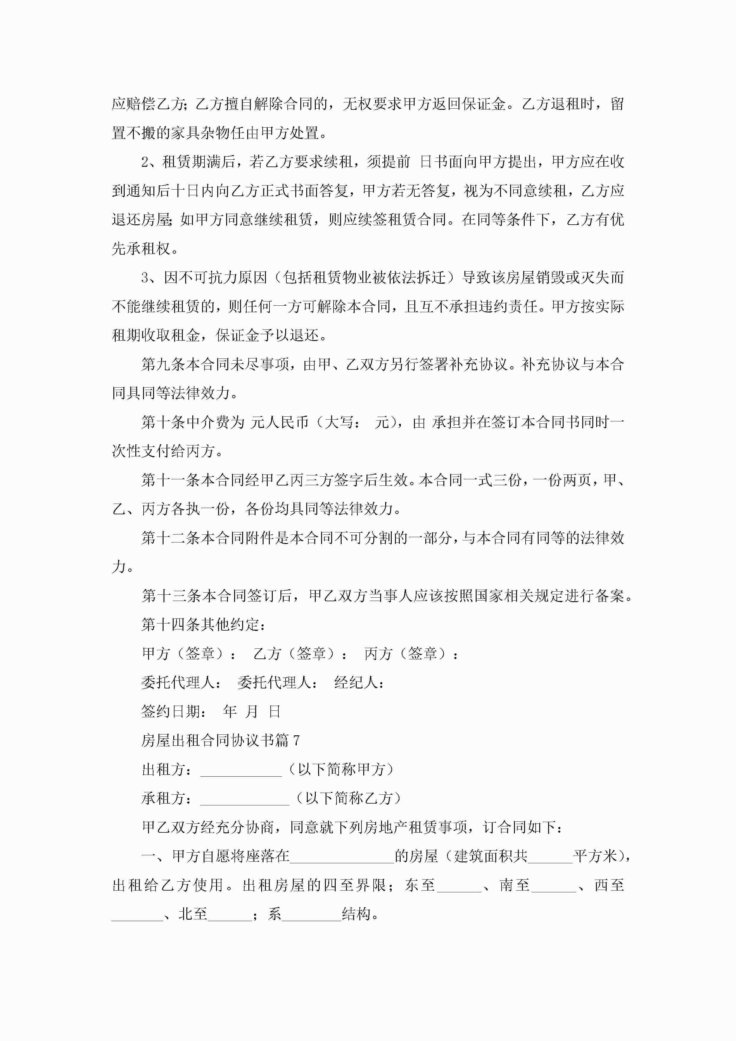 房屋出租合同协议书精选8篇jugei3月23日 01:42发布关注189 房屋出租合同协议书精选8篇此内容为付费资源,请付费后查看¥10.9 单篇文档限时特惠¥15个人会员开通企业会员开通立即下载无需登陆!可直接快捷下载单个模板付费资源© 版权声明THE ENDWord模板# 实用文档# 实用模板# 合同模板# 租赁合同 如有问题,可点击最底部“联系我们”联系客服 分享QQ空间微博QQ好友海报分享复制链接收藏