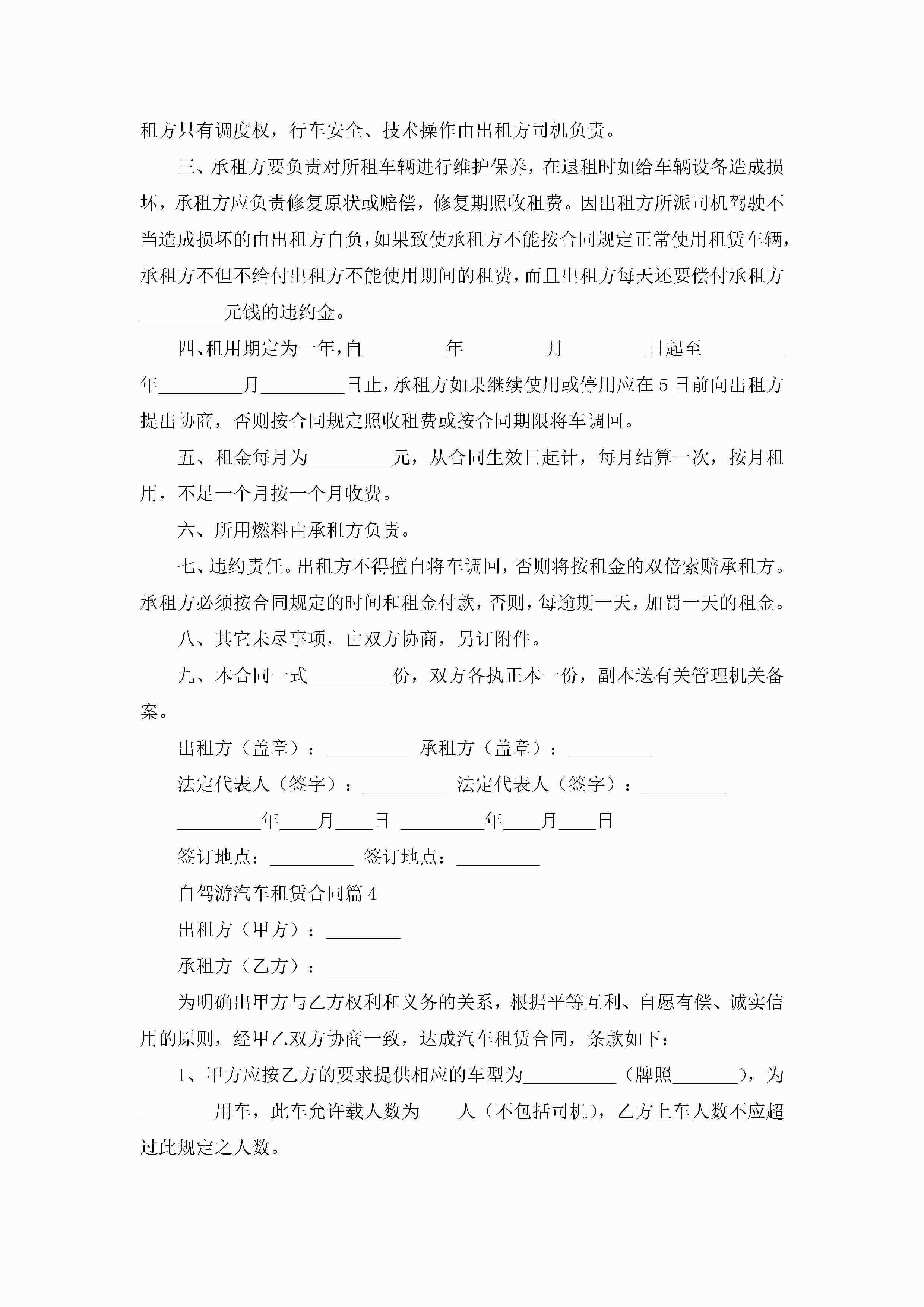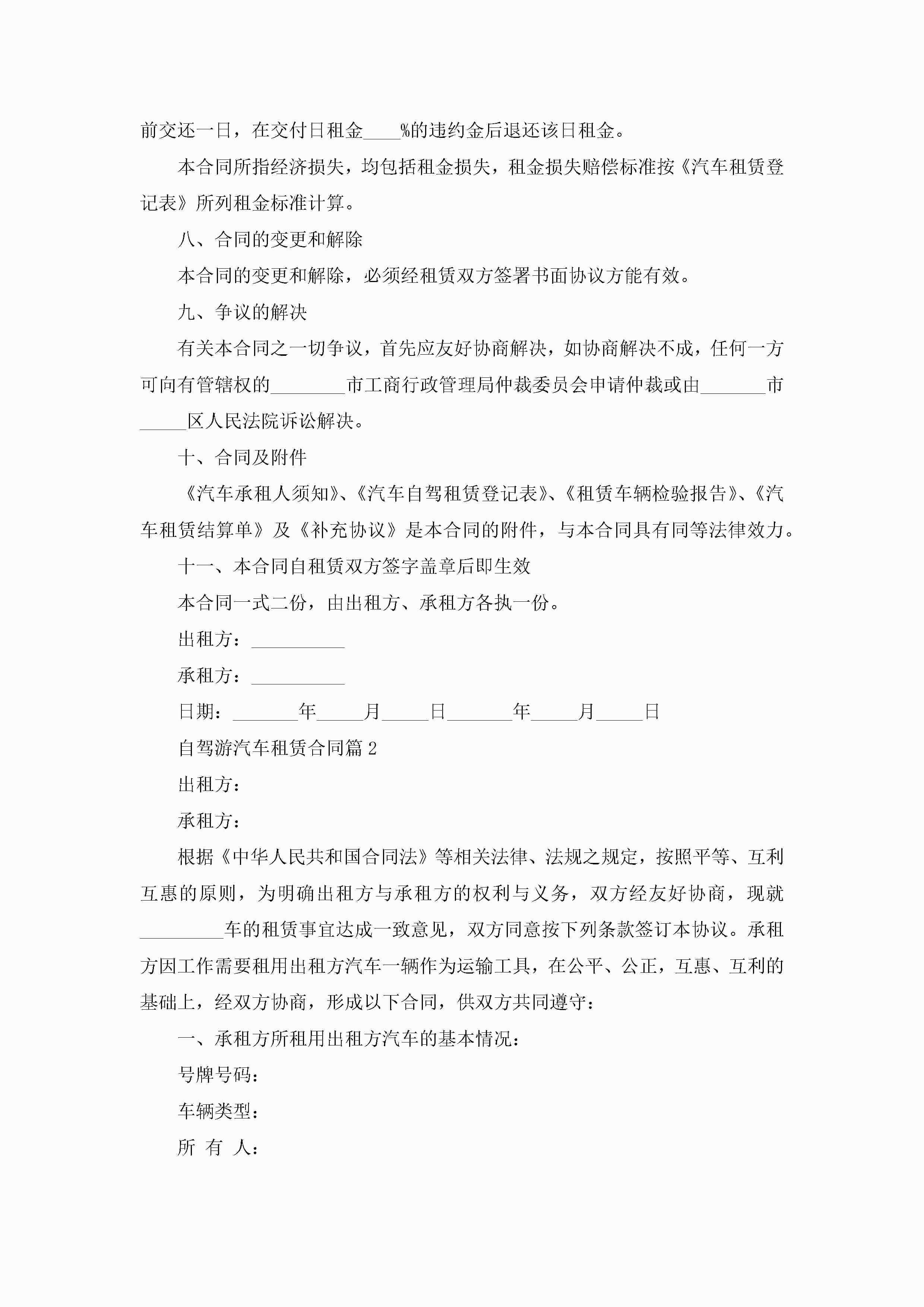 自驾游汽车租赁合同范本5篇jugei3月23日 01:42发布关注193 自驾游汽车租赁合同范本5篇此内容为付费资源,请付费后查看¥10.9 单篇文档限时特惠¥15个人会员开通企业会员开通立即下载无需登陆!可直接快捷下载单个模板付费资源© 版权声明THE ENDWord模板# 实用文档# 实用模板# 合同模板# 租赁合同 如有问题,可点击最底部“联系我们”联系客服 分享QQ空间微博QQ好友海报分享复制链接收藏