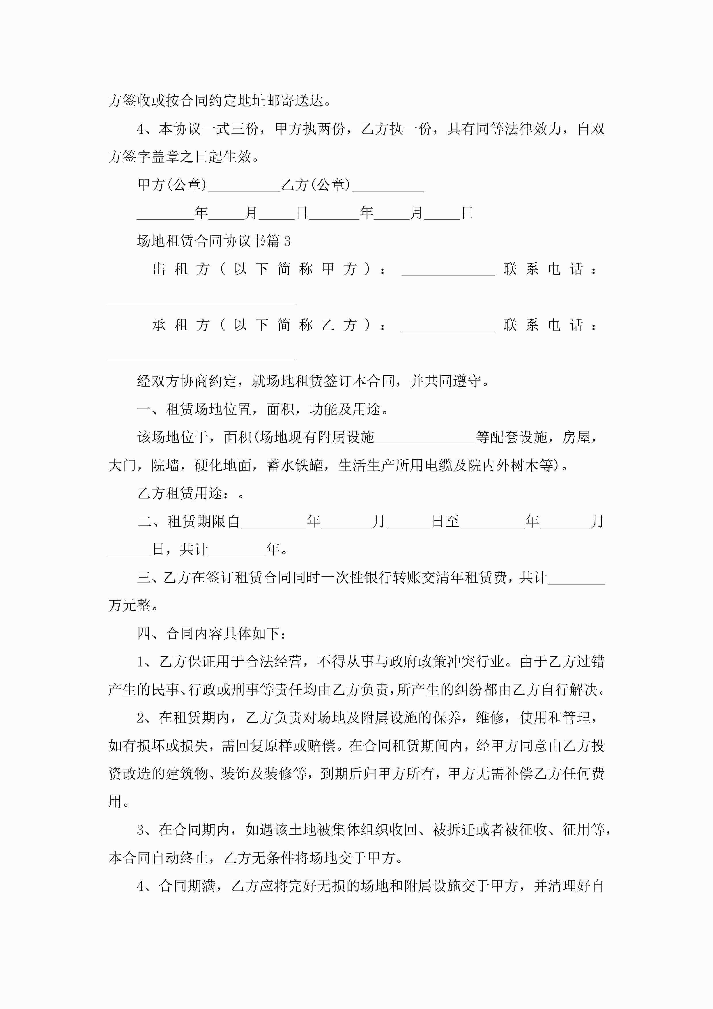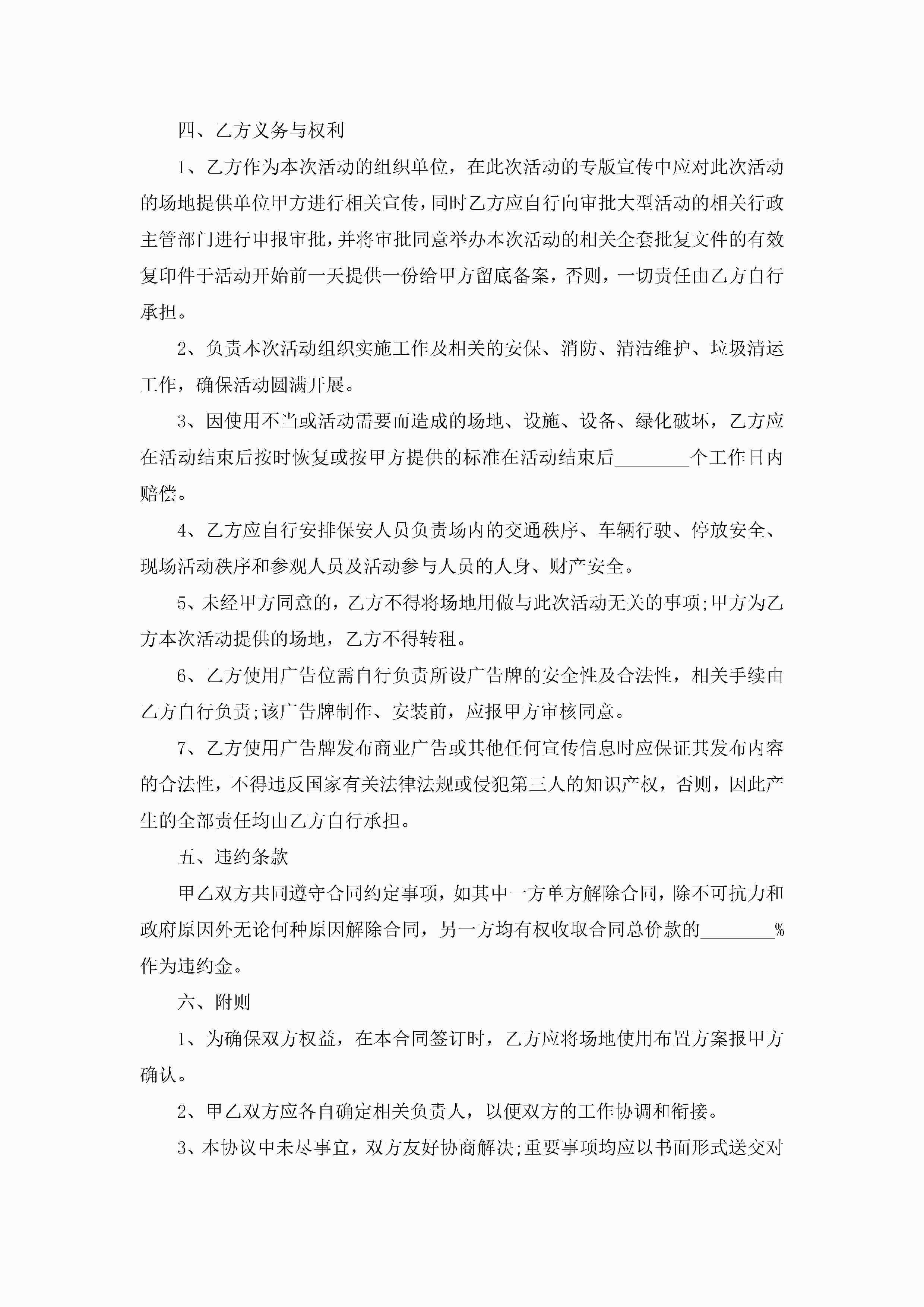 场地租赁合同协议书范文jugei3月23日 01:42发布关注236 场地租赁合同协议书范文此内容为付费资源,请付费后查看¥10.9 单篇文档限时特惠¥15个人会员开通企业会员开通立即下载无需登陆!可直接快捷下载单个模板付费资源© 版权声明THE ENDWord模板# 实用文档# 实用模板# 合同模板# 租赁合同 如有问题,可点击最底部“联系我们”联系客服 分享QQ空间微博QQ好友海报分享复制链接收藏