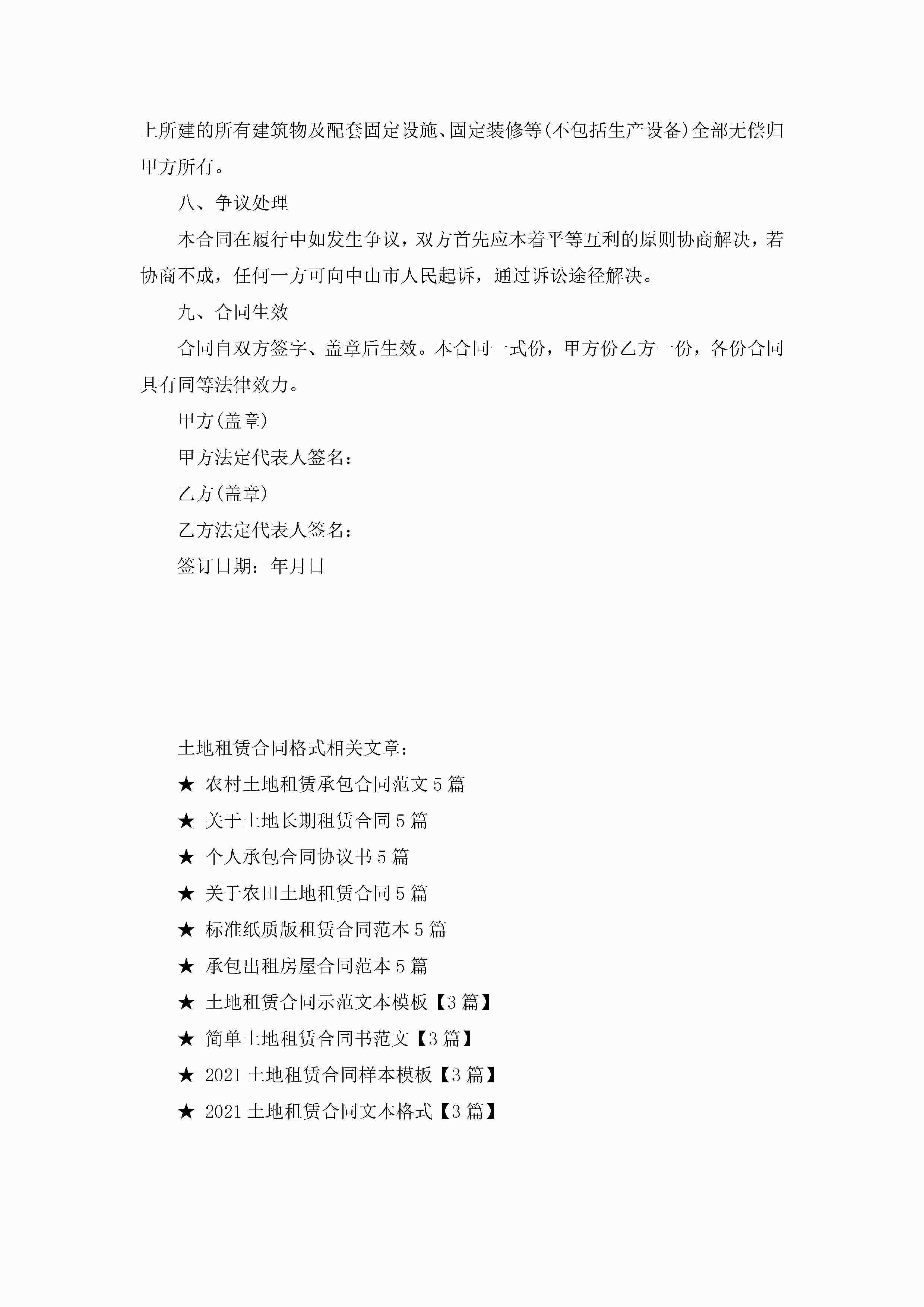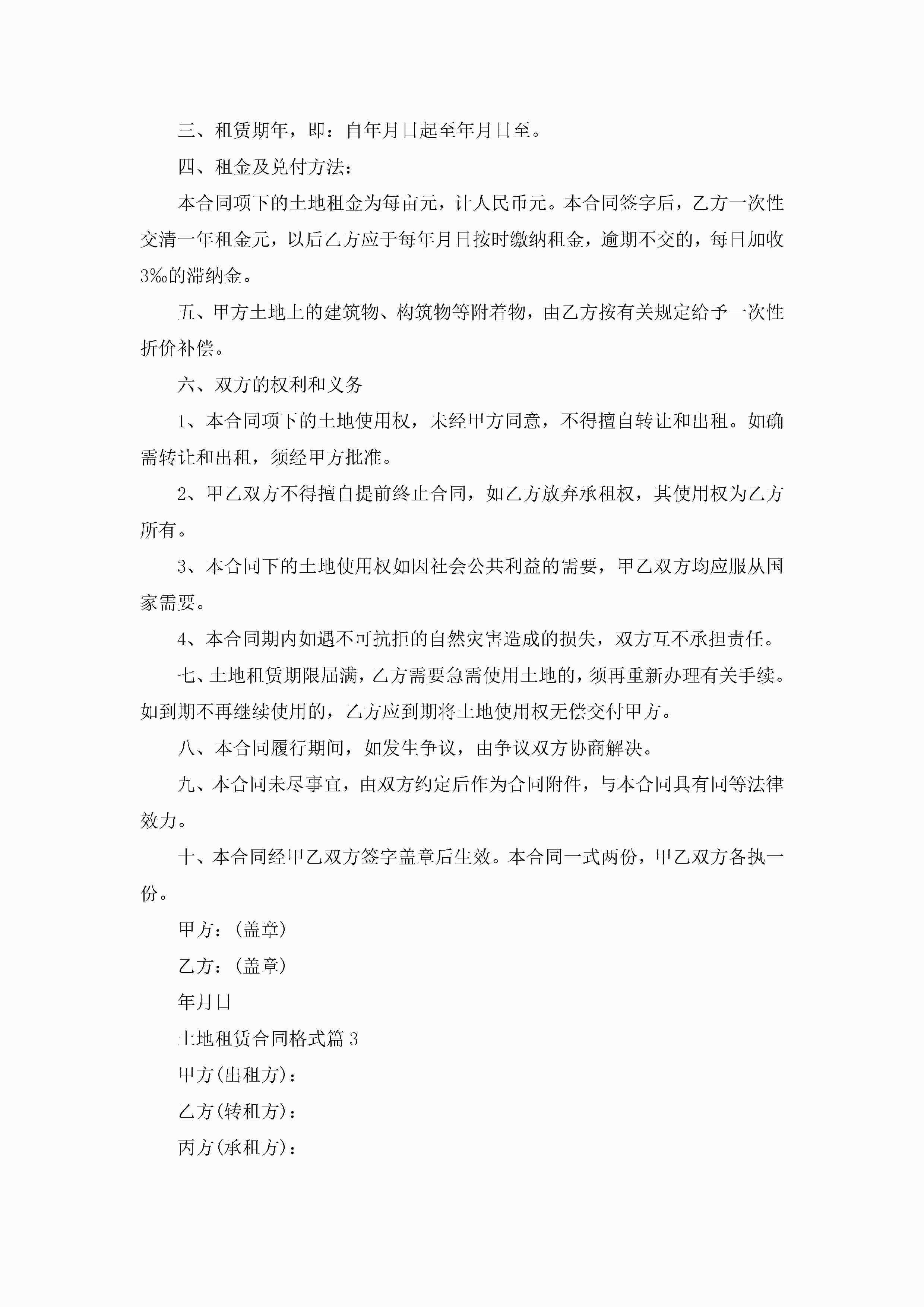 土地租赁合同格式最新jugei3月23日 01:42发布关注191 土地租赁合同格式最新此内容为付费资源,请付费后查看¥10.9 单篇文档限时特惠¥15个人会员开通企业会员开通立即下载无需登陆!可直接快捷下载单个模板付费资源© 版权声明THE ENDWord模板# 实用文档# 实用模板# 合同模板# 租赁合同 如有问题,可点击最底部“联系我们”联系客服 分享QQ空间微博QQ好友海报分享复制链接收藏