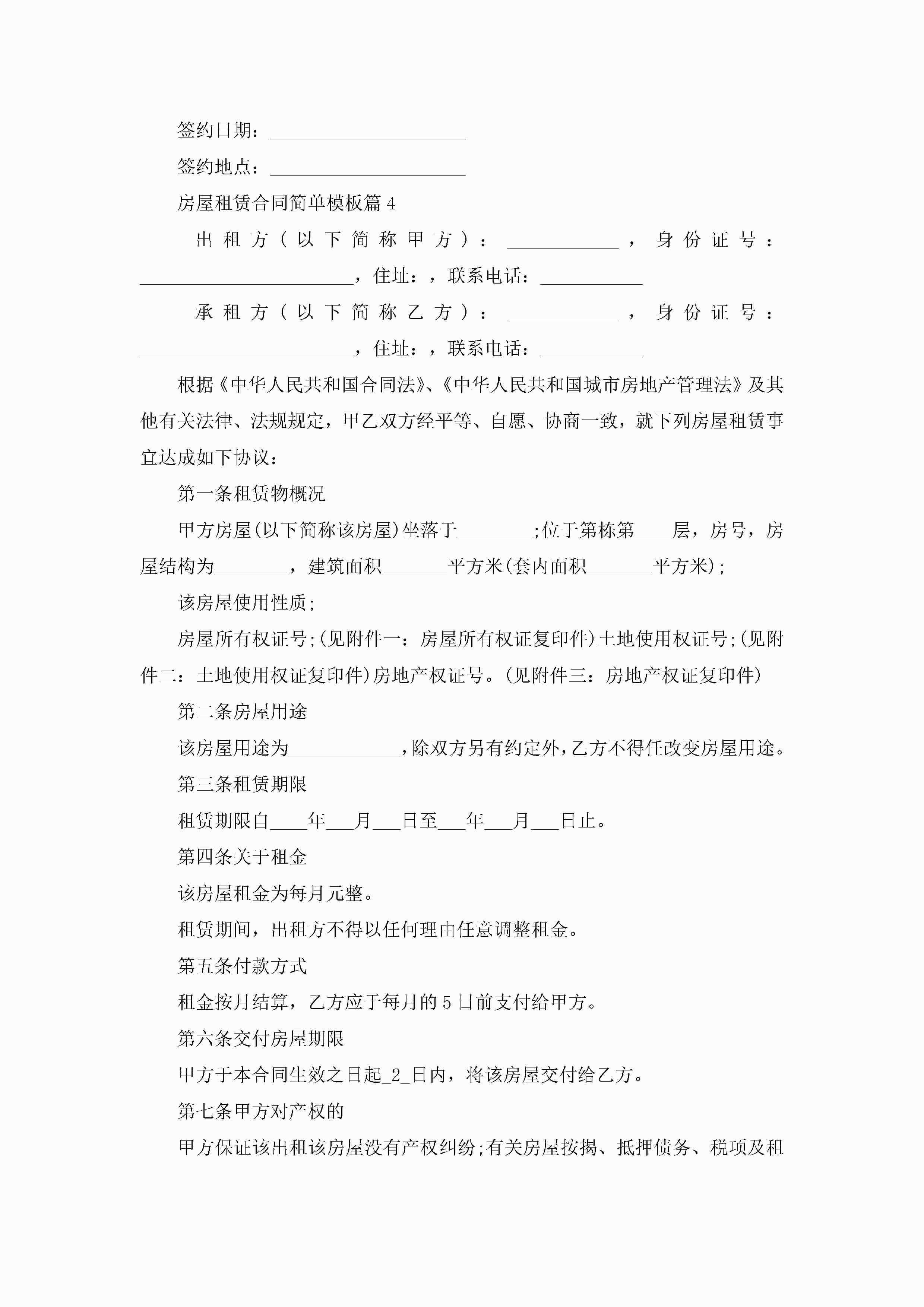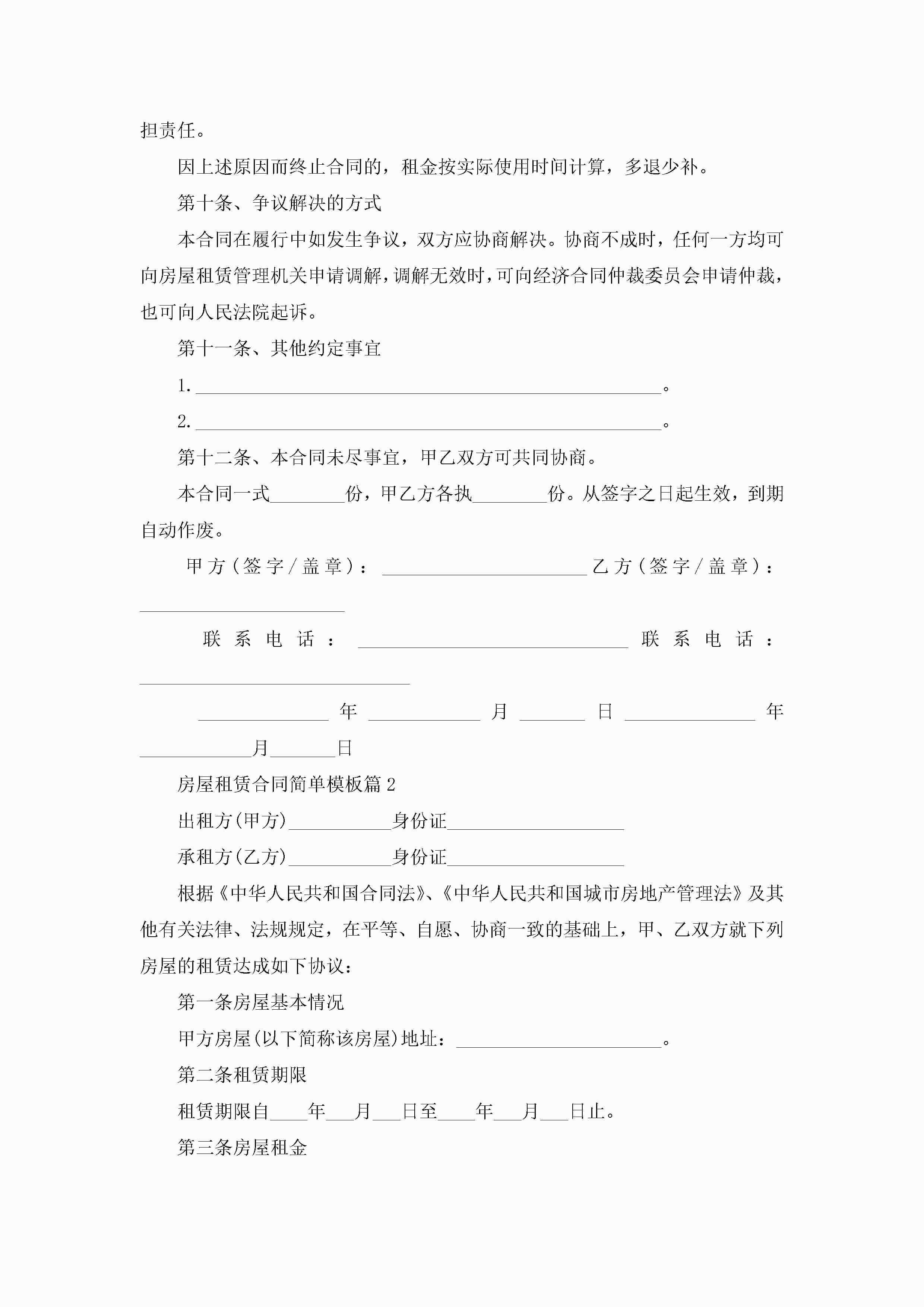房屋租赁合同简单范文模板jugei3月23日 01:42发布关注186 房屋租赁合同简单范文模板此内容为付费资源,请付费后查看¥10.9 单篇文档限时特惠¥15个人会员开通企业会员开通立即下载无需登陆!可直接快捷下载单个模板付费资源© 版权声明THE ENDWord模板# 实用文档# 实用模板# 合同模板# 租赁合同 如有问题,可点击最底部“联系我们”联系客服 分享QQ空间微博QQ好友海报分享复制链接收藏