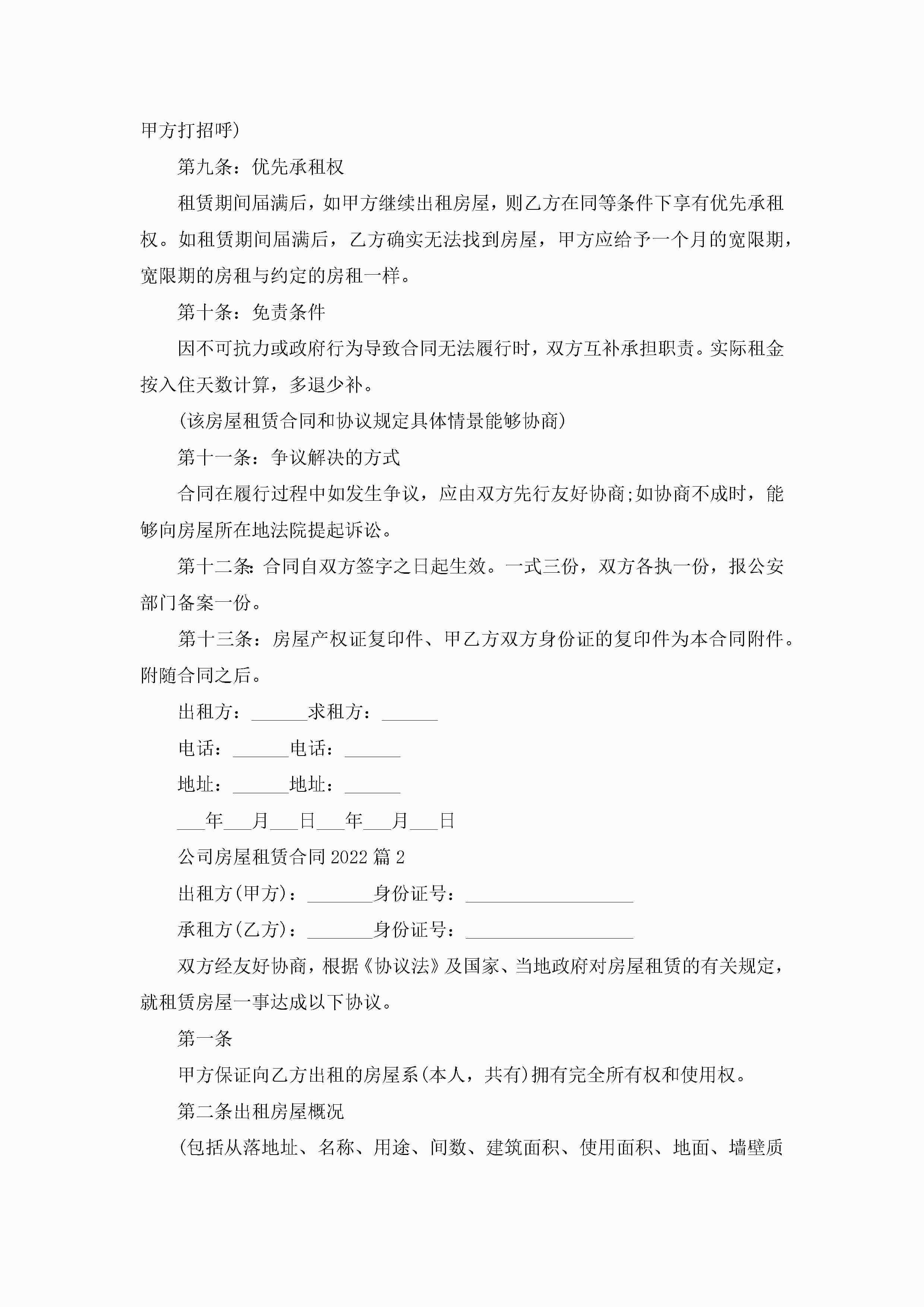 公司房屋租赁合同2022模板jugei3月23日 01:42发布关注194 公司房屋租赁合同2022模板此内容为付费资源,请付费后查看¥10.9 单篇文档限时特惠¥15个人会员开通企业会员开通立即下载无需登陆!可直接快捷下载单个模板付费资源© 版权声明THE ENDWord模板# 实用文档# 实用模板# 合同模板# 租赁合同 如有问题,可点击最底部“联系我们”联系客服 分享QQ空间微博QQ好友海报分享复制链接收藏