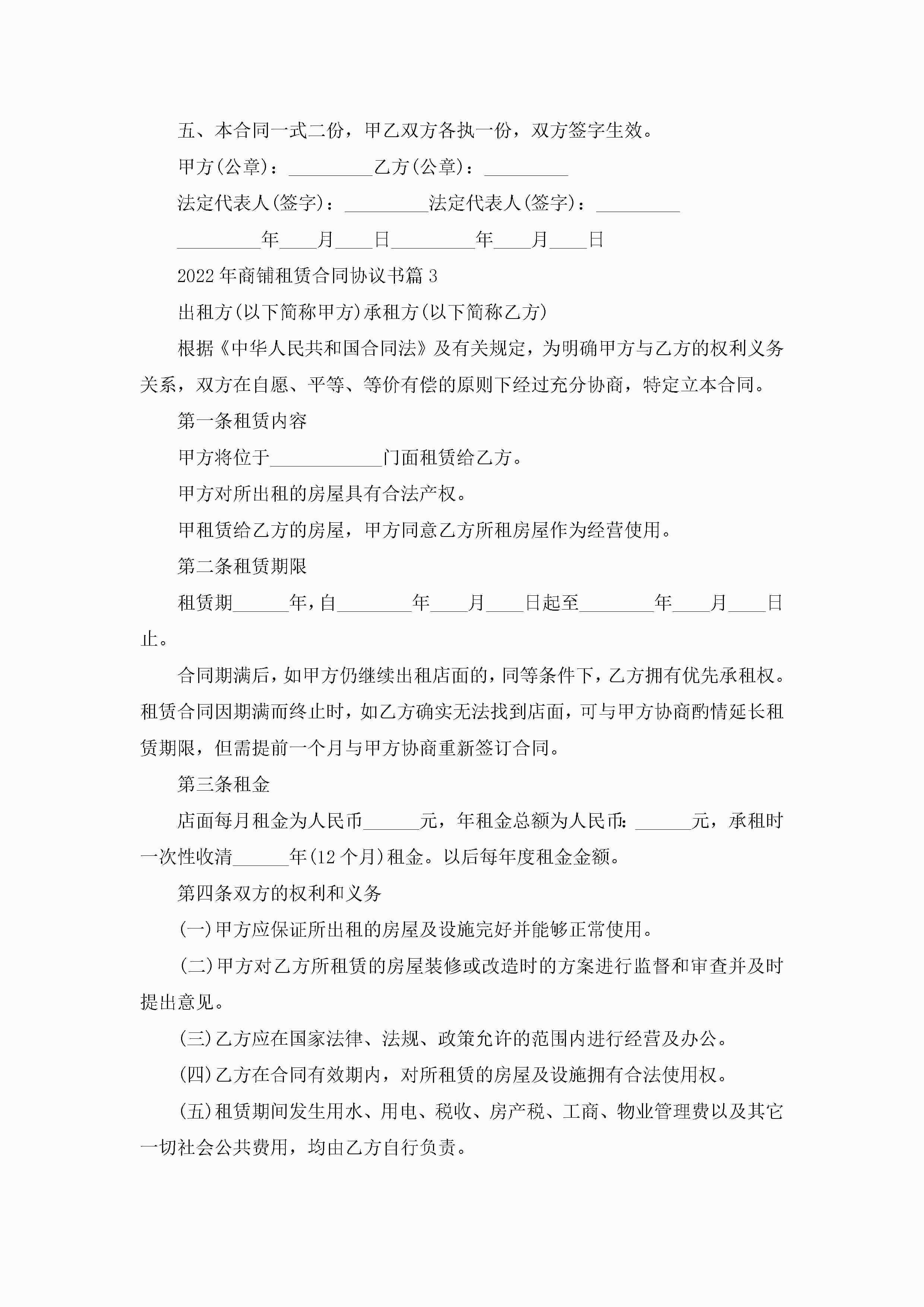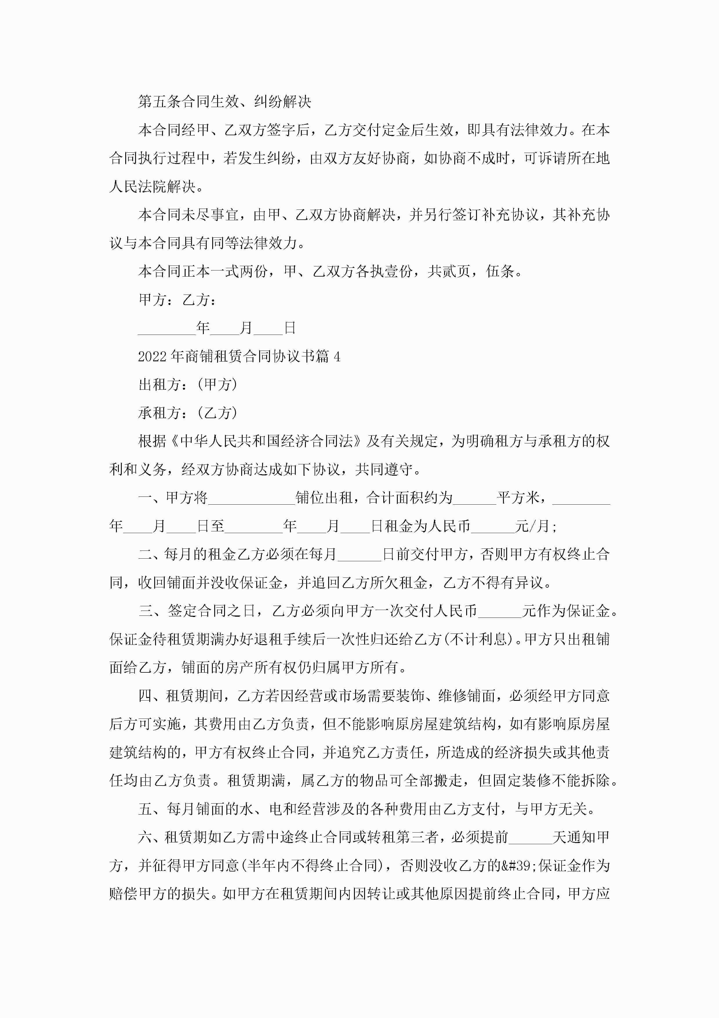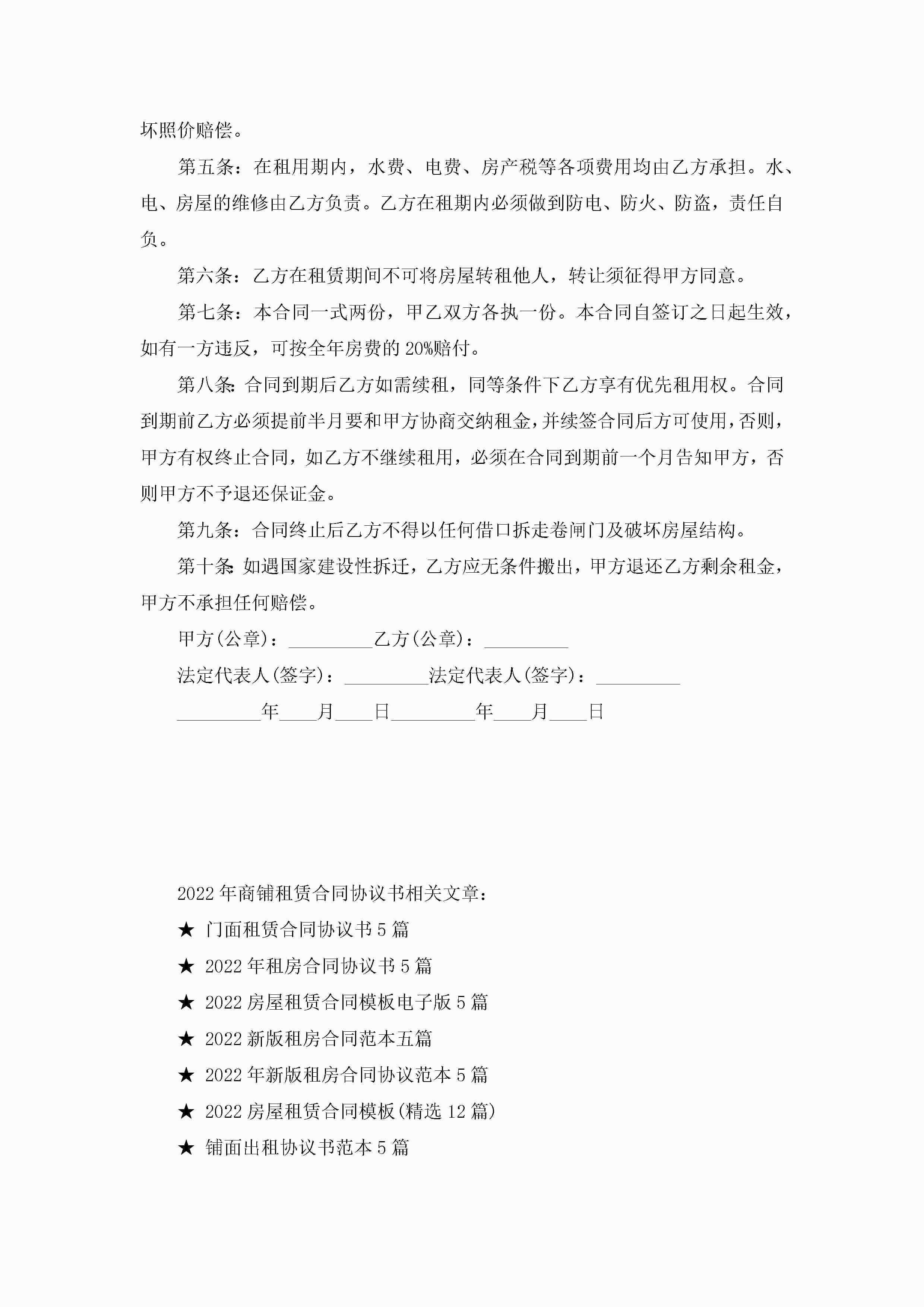 2022年商铺租赁合同协议书最新jugei3月23日 01:42发布关注241 2022年商铺租赁合同协议书最新此内容为付费资源,请付费后查看¥10.9 单篇文档限时特惠¥15个人会员开通企业会员开通立即下载无需登陆!可直接快捷下载单个模板付费资源© 版权声明THE ENDWord模板# 实用文档# 实用模板# 合同模板# 租赁合同 如有问题,可点击最底部“联系我们”联系客服 分享QQ空间微博QQ好友海报分享复制链接收藏
