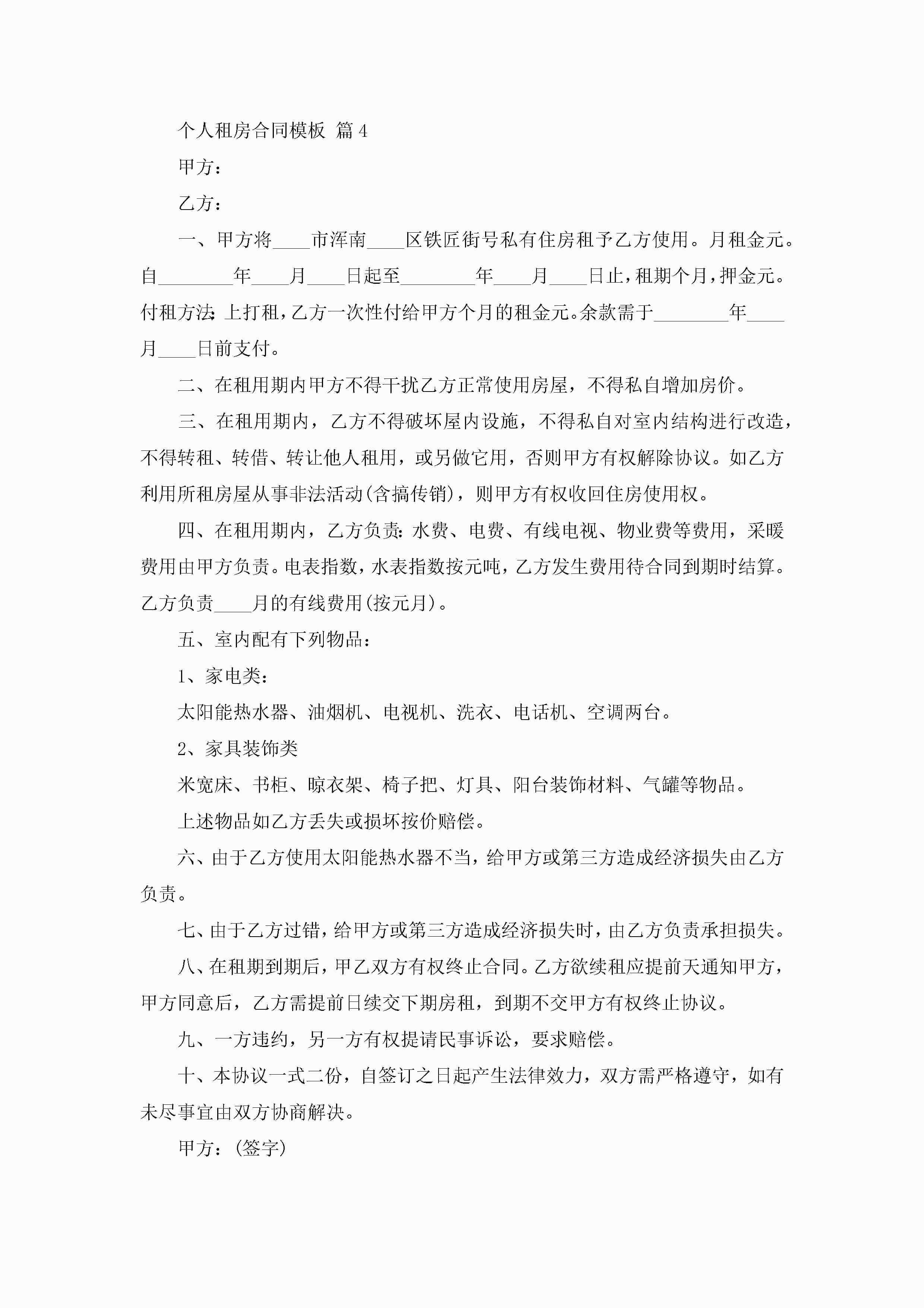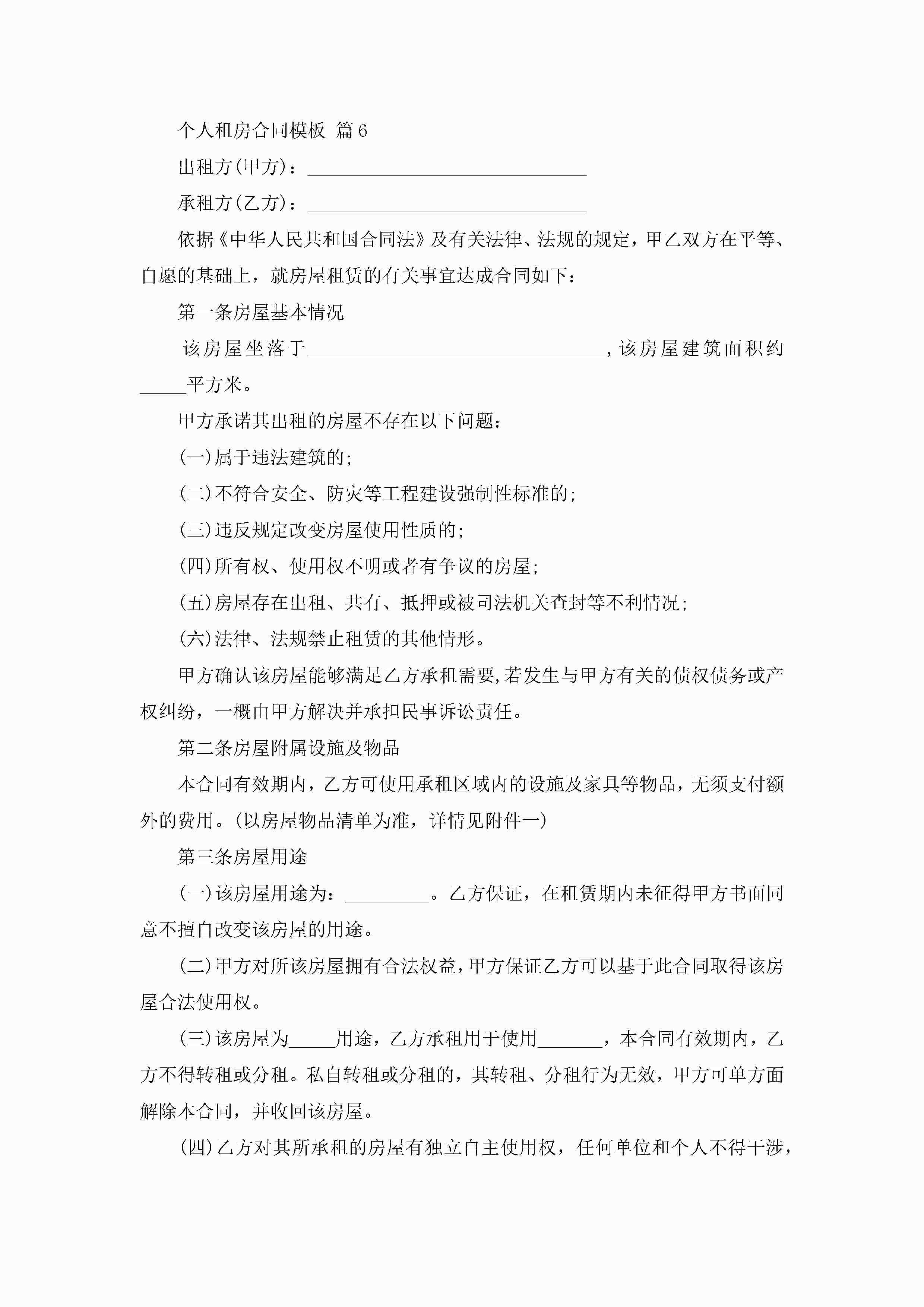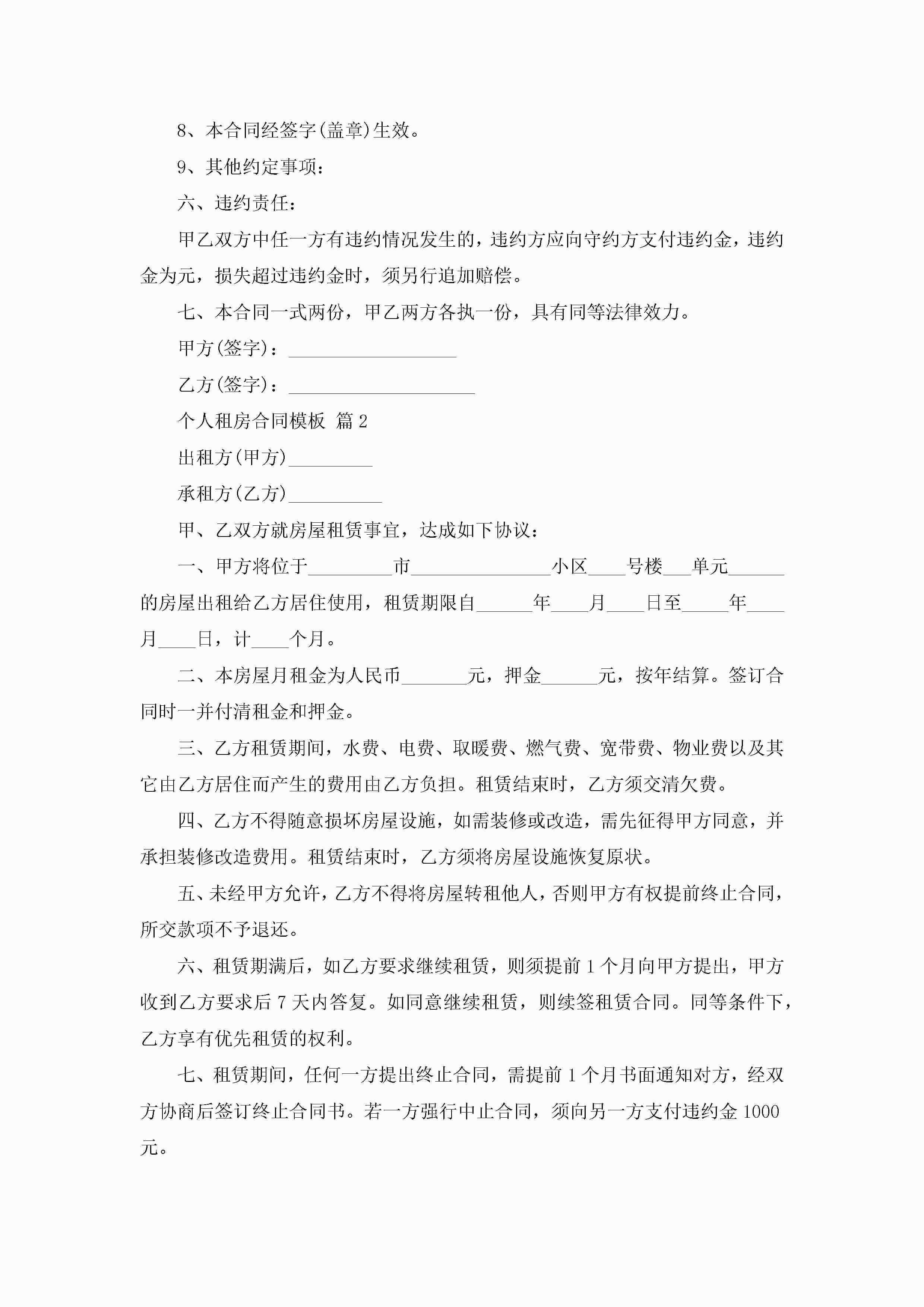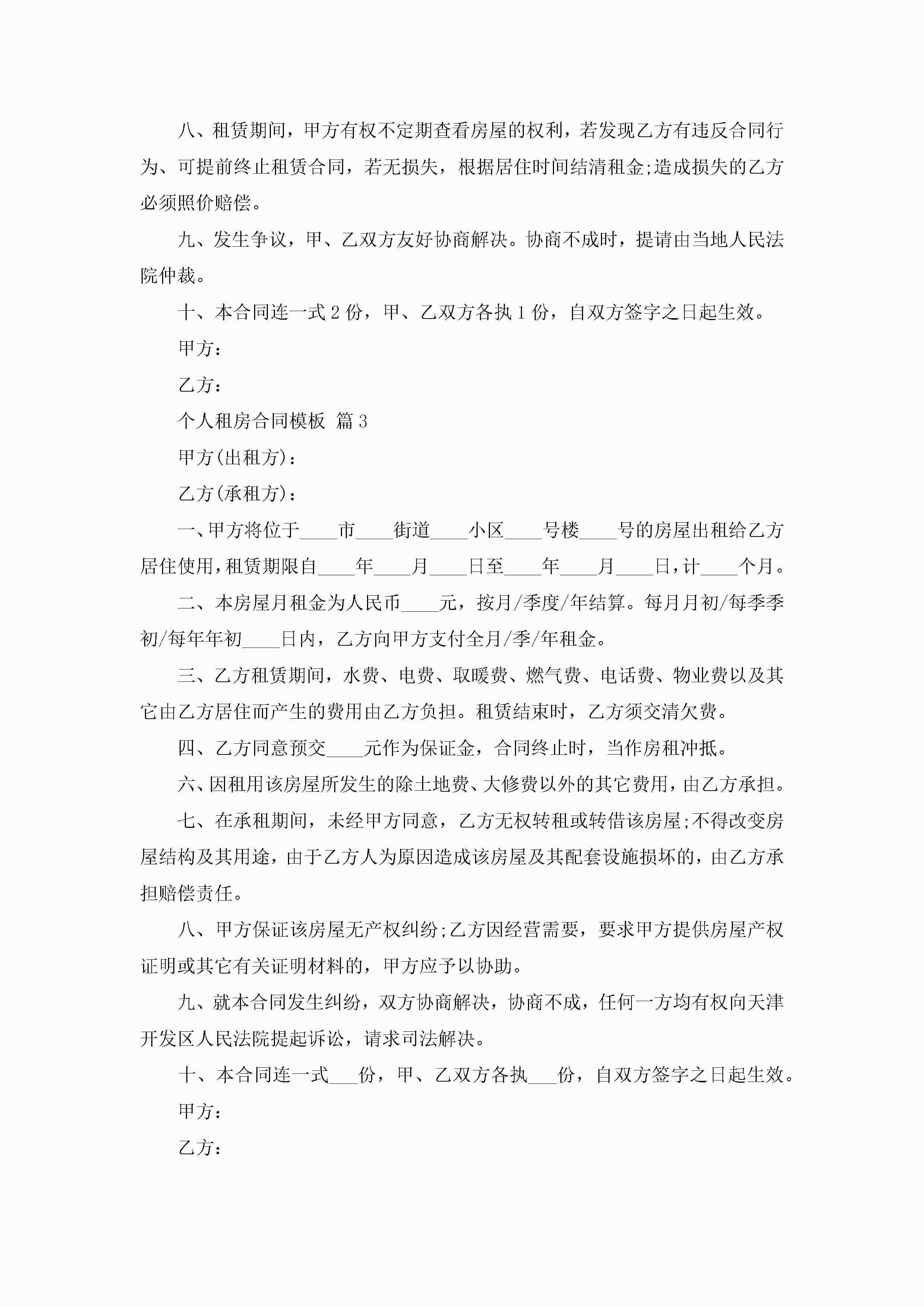 个人租房合同模板(10篇)jugei3月23日 01:42发布关注243 个人租房合同模板(10篇)此内容为付费资源,请付费后查看¥10.9 单篇文档限时特惠¥15个人会员开通企业会员开通立即下载无需登陆!可直接快捷下载单个模板付费资源© 版权声明THE ENDWord模板# 实用文档# 实用模板# 合同模板# 租赁合同 如有问题,可点击最底部“联系我们”联系客服 分享QQ空间微博QQ好友海报分享复制链接收藏