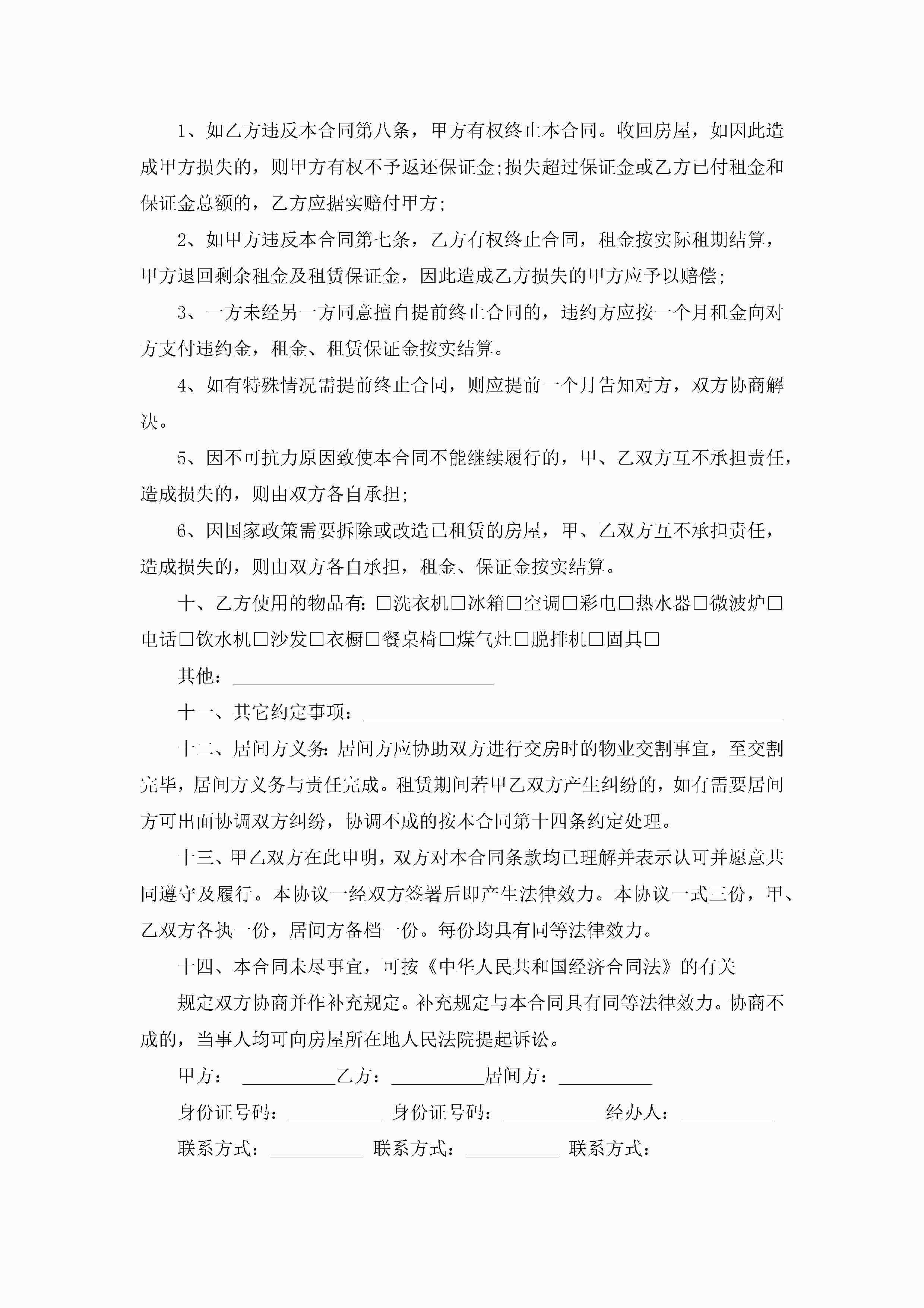 租房协议书合同范本(精选6篇)jugei3月23日 01:42发布关注251 租房协议书合同范本(精选6篇)此内容为付费资源,请付费后查看¥10.9 单篇文档限时特惠¥15个人会员开通企业会员开通立即下载无需登陆!可直接快捷下载单个模板付费资源© 版权声明THE ENDWord模板# 实用文档# 实用模板# 合同模板# 租赁合同 如有问题,可点击最底部“联系我们”联系客服 分享QQ空间微博QQ好友海报分享复制链接收藏