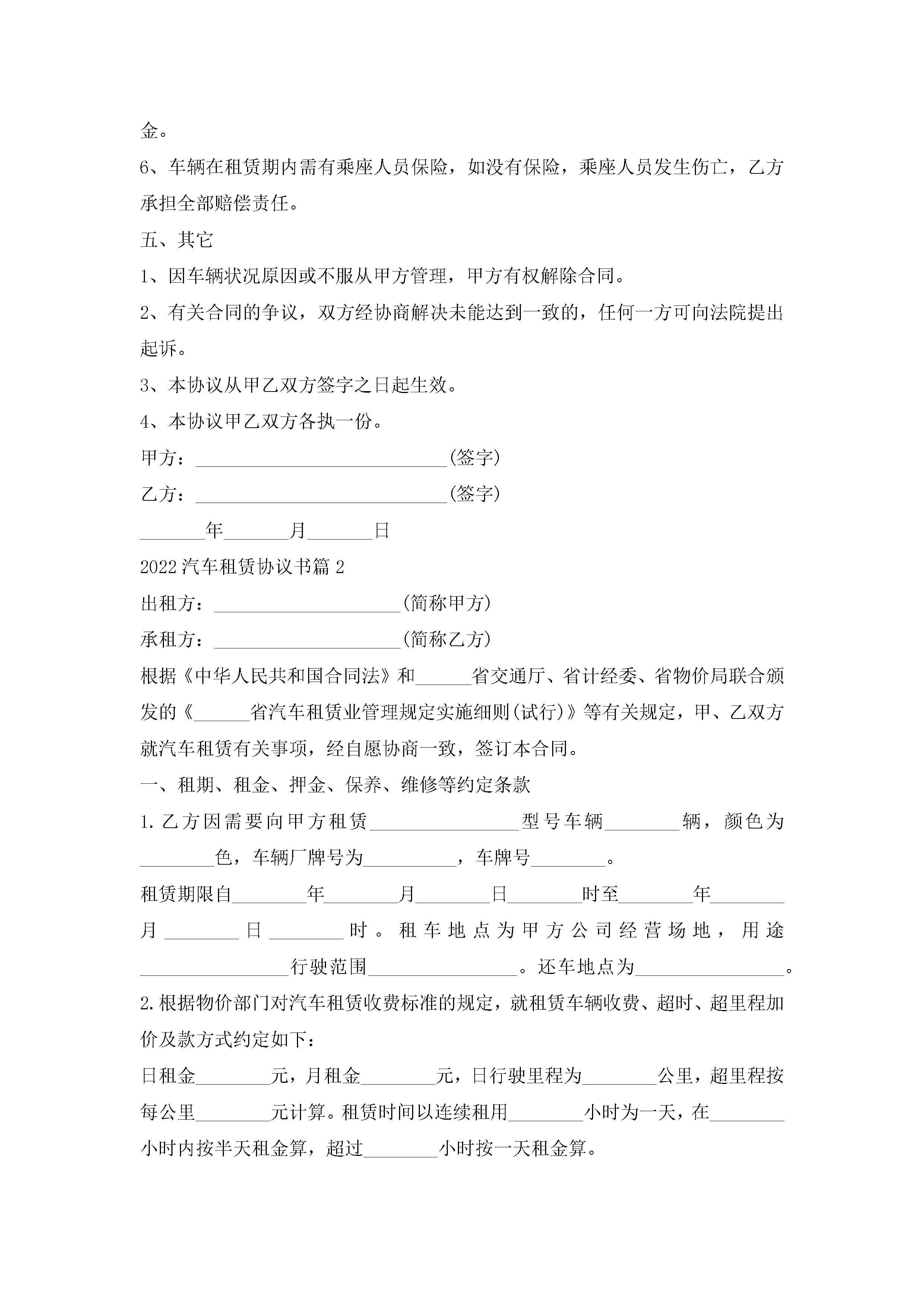 2022汽车租赁协议书范本jugei3月23日 01:42发布关注239 2022汽车租赁协议书范本此内容为付费资源,请付费后查看¥10.9 单篇文档限时特惠¥15个人会员开通企业会员开通立即下载无需登陆!可直接快捷下载单个模板付费资源© 版权声明THE ENDWord模板# 实用文档# 实用模板# 合同模板# 租赁合同 如有问题,可点击最底部“联系我们”联系客服 分享QQ空间微博QQ好友海报分享复制链接收藏