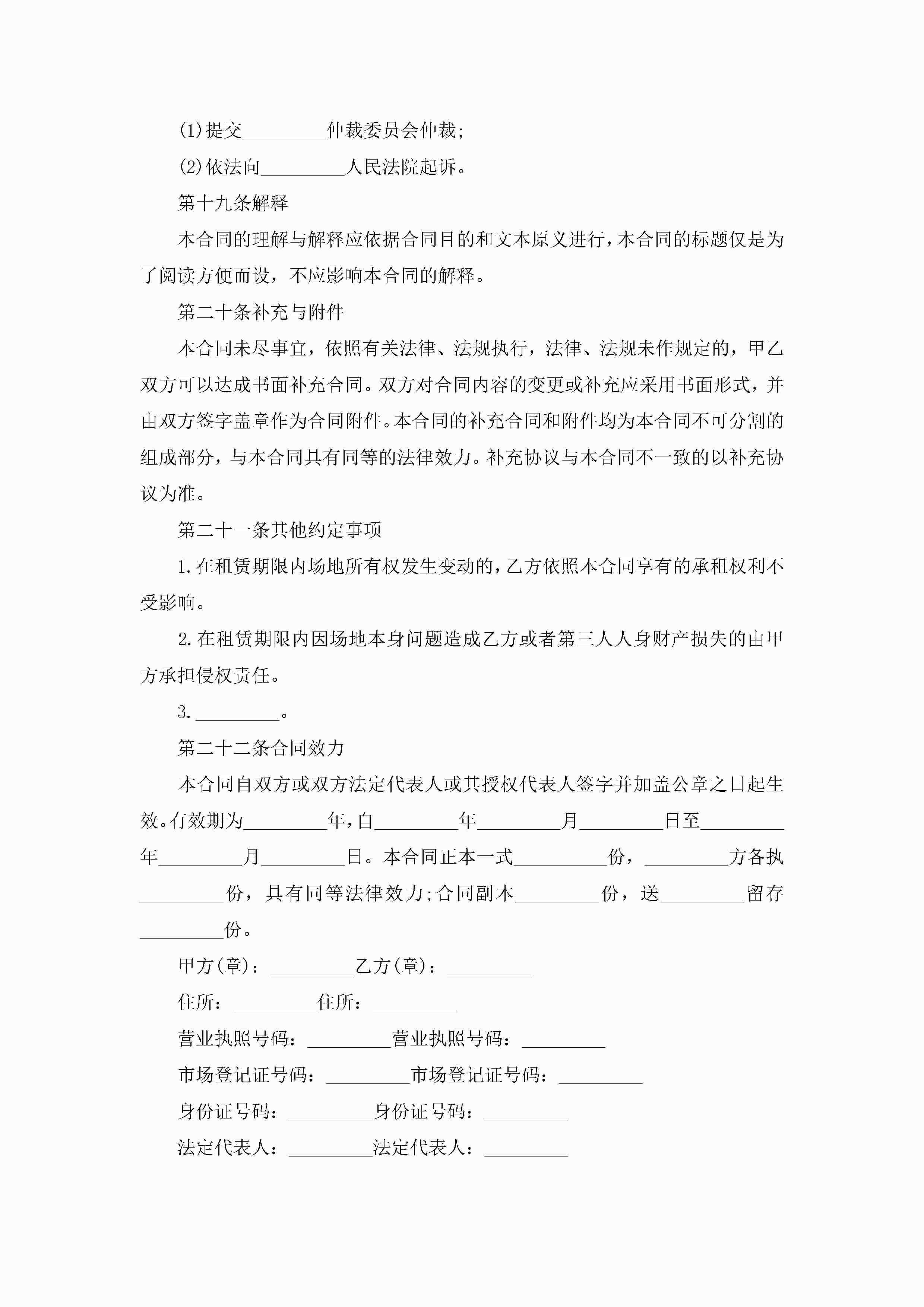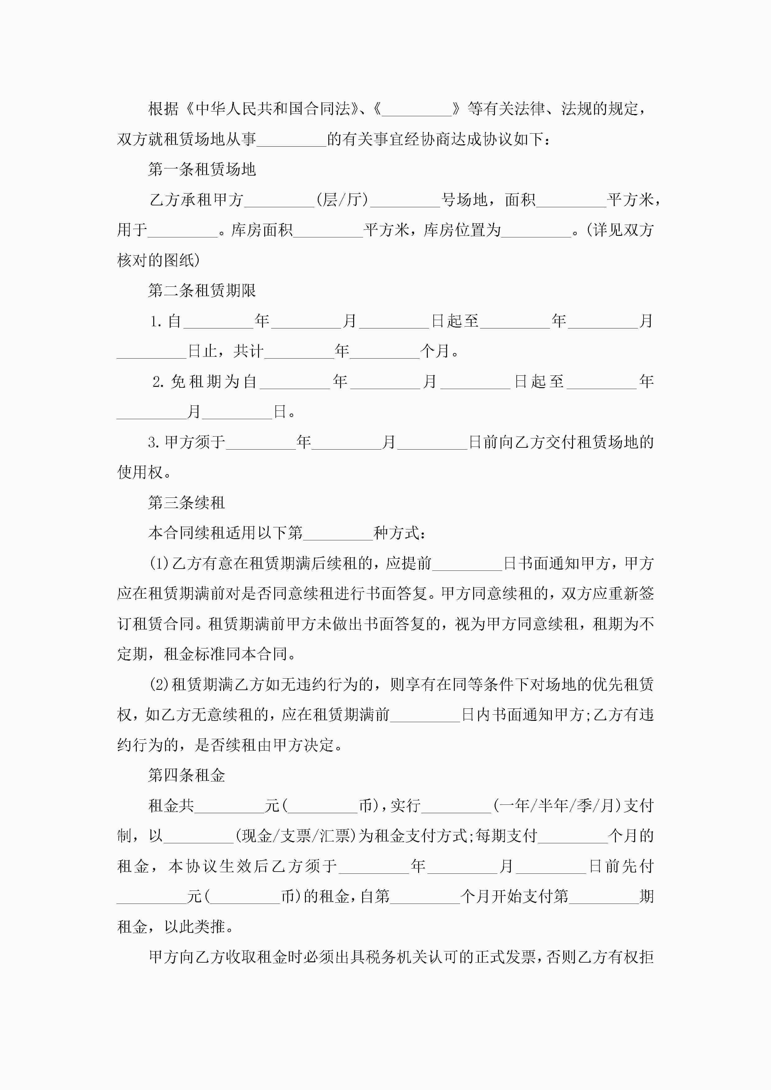场地租赁合同协议书范本jugei3月23日 01:42发布关注246 场地租赁合同协议书范本此内容为付费资源,请付费后查看¥10.9 单篇文档限时特惠¥15个人会员开通企业会员开通立即下载无需登陆!可直接快捷下载单个模板付费资源© 版权声明THE ENDWord模板# 实用文档# 实用模板# 合同模板# 租赁合同 如有问题,可点击最底部“联系我们”联系客服 分享QQ空间微博QQ好友海报分享复制链接收藏