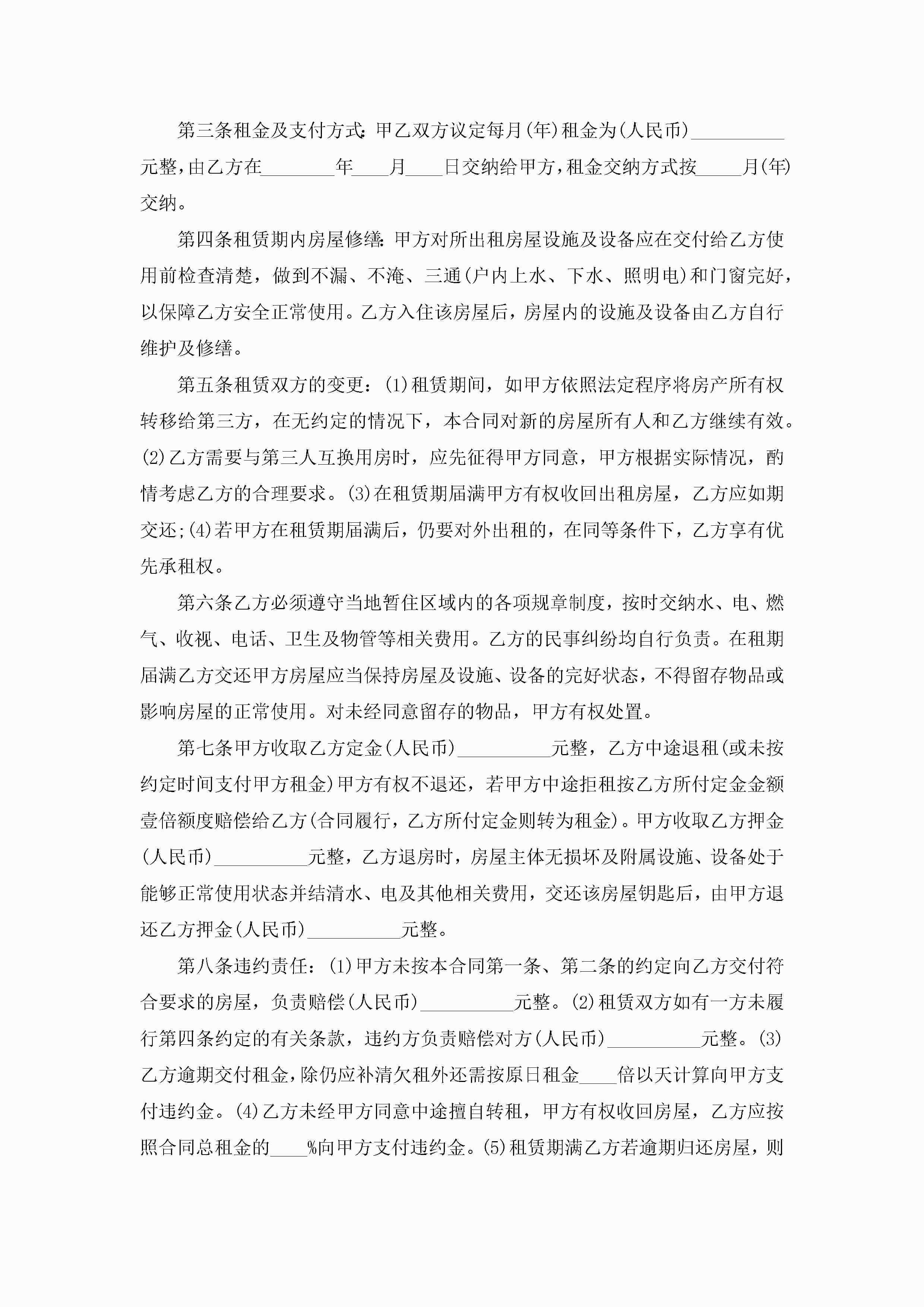 2022房屋租赁合同范本模板jugei3月23日 01:42发布关注187 2022房屋租赁合同范本模板此内容为付费资源,请付费后查看¥10.9 单篇文档限时特惠¥15个人会员开通企业会员开通立即下载无需登陆!可直接快捷下载单个模板付费资源© 版权声明THE ENDWord模板# 实用文档# 实用模板# 合同模板# 租赁合同 如有问题,可点击最底部“联系我们”联系客服 分享QQ空间微博QQ好友海报分享复制链接收藏