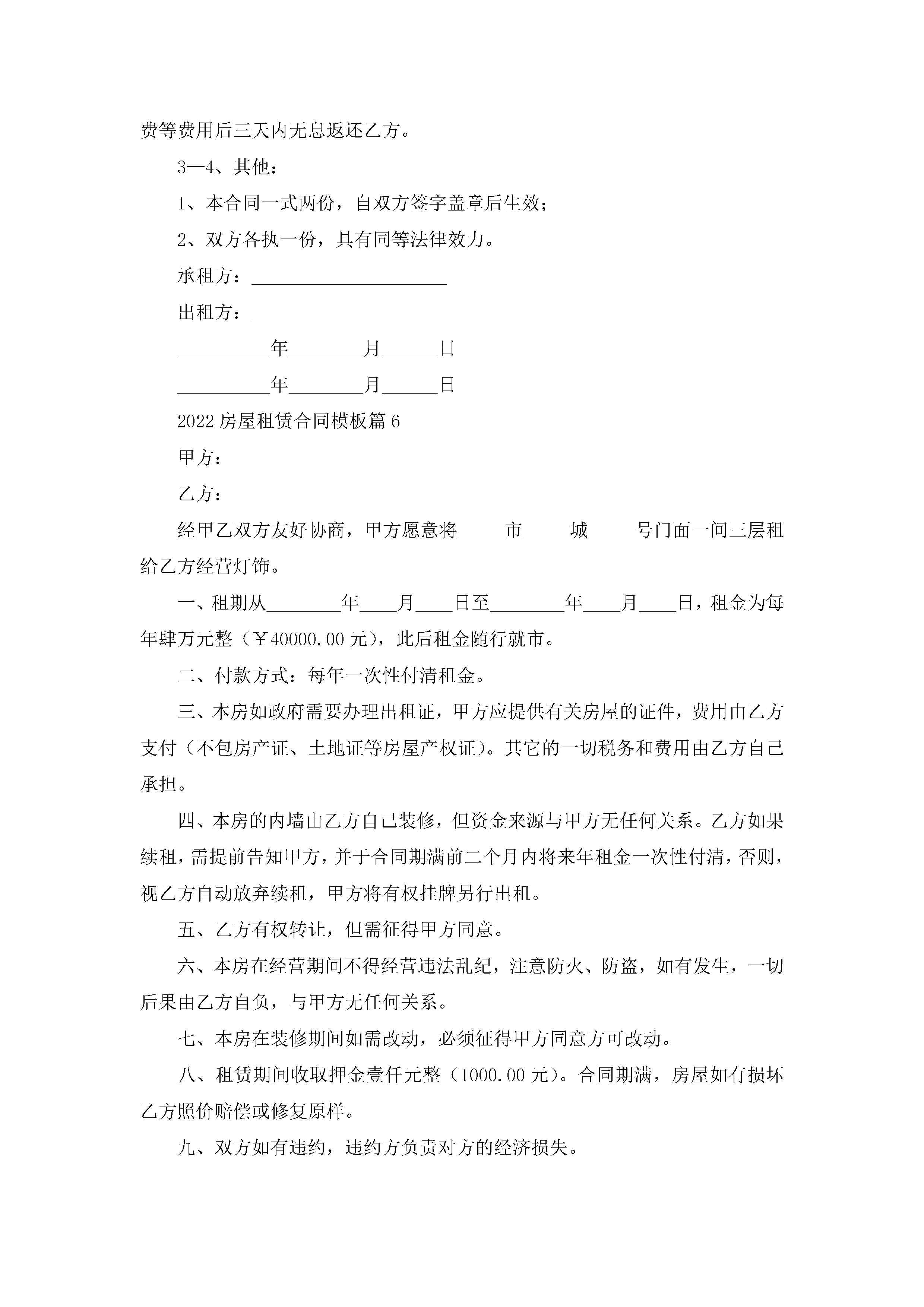 2022房屋租赁合同模板(13篇)jugei3月23日 01:42发布关注223 2022房屋租赁合同模板(13篇)此内容为付费资源,请付费后查看¥10.9 单篇文档限时特惠¥15个人会员开通企业会员开通立即下载无需登陆!可直接快捷下载单个模板付费资源© 版权声明THE ENDWord模板# 实用文档# 实用模板# 合同模板# 租赁合同 如有问题,可点击最底部“联系我们”联系客服 分享QQ空间微博QQ好友海报分享复制链接收藏