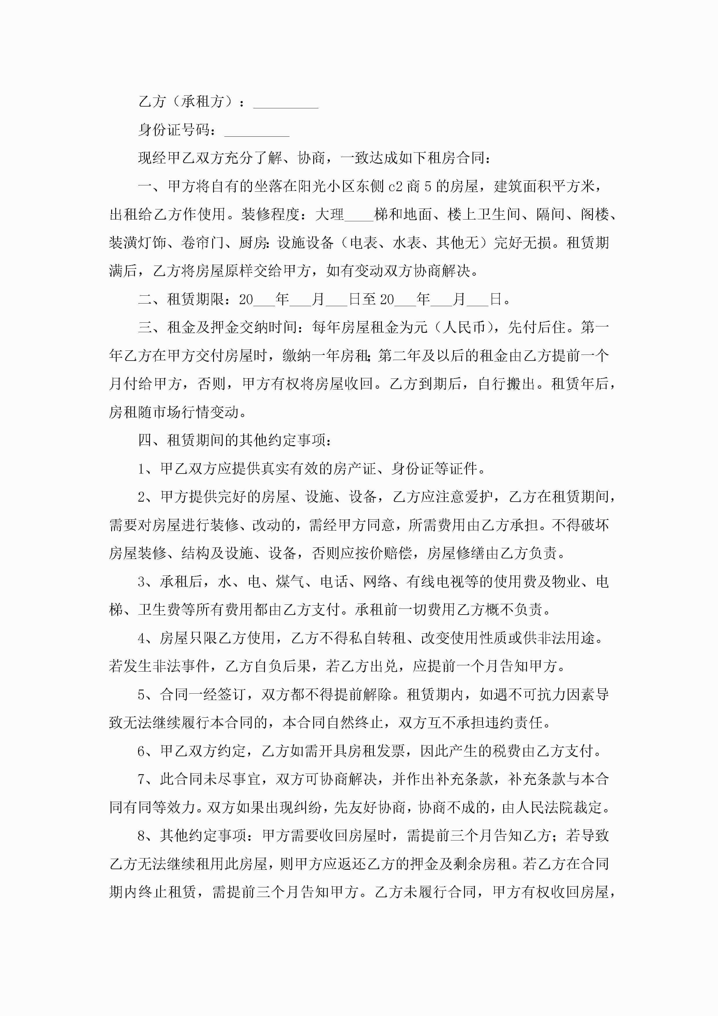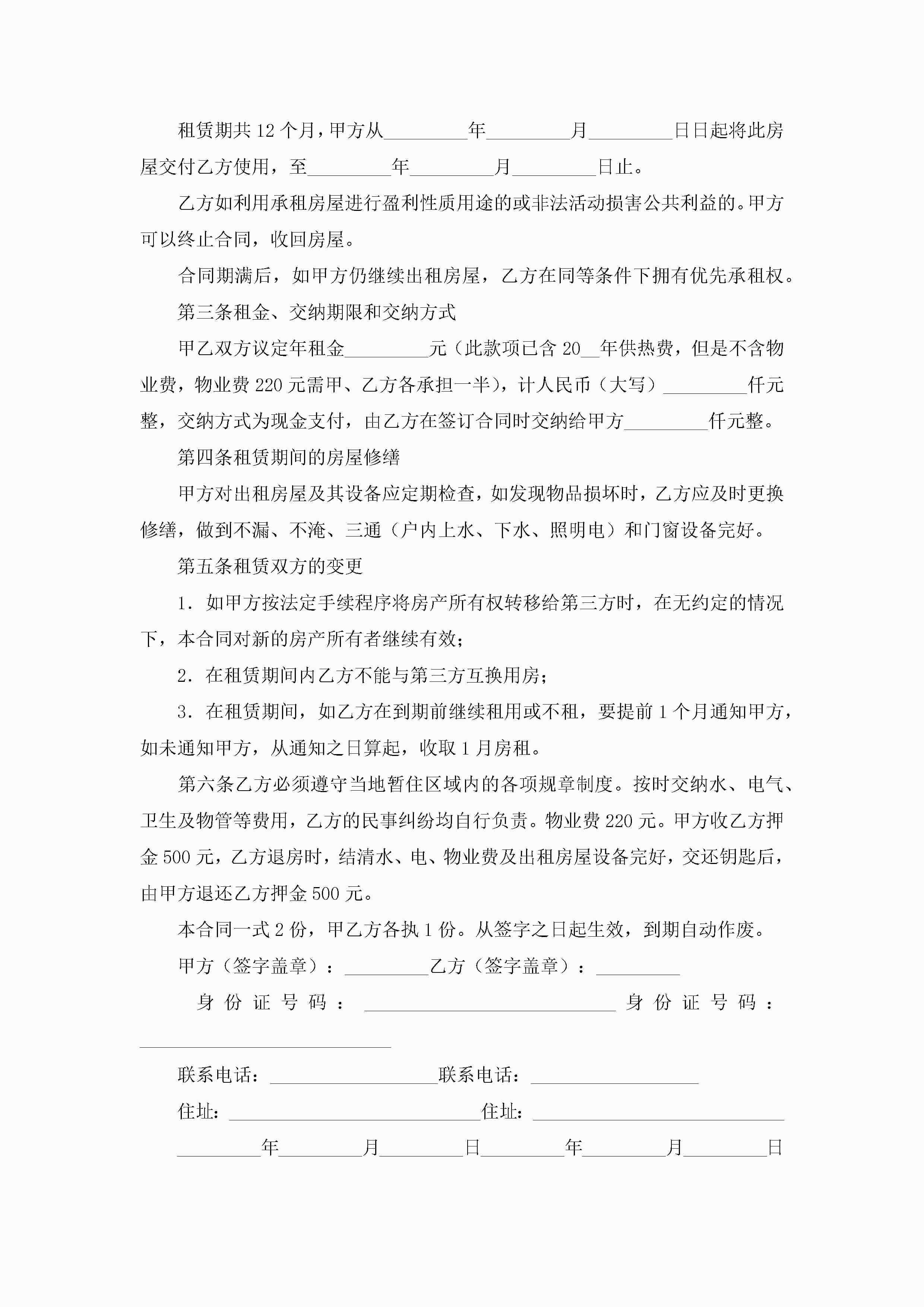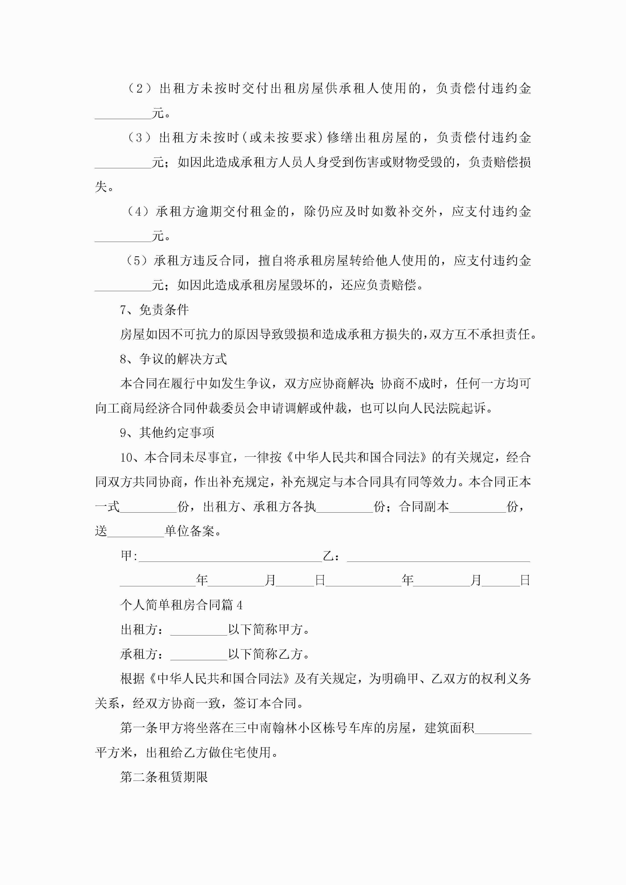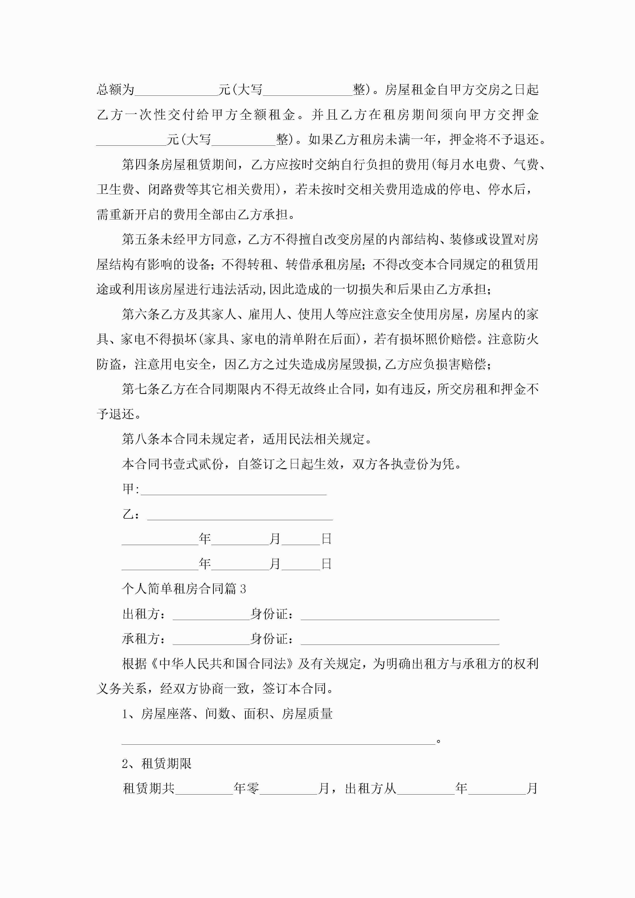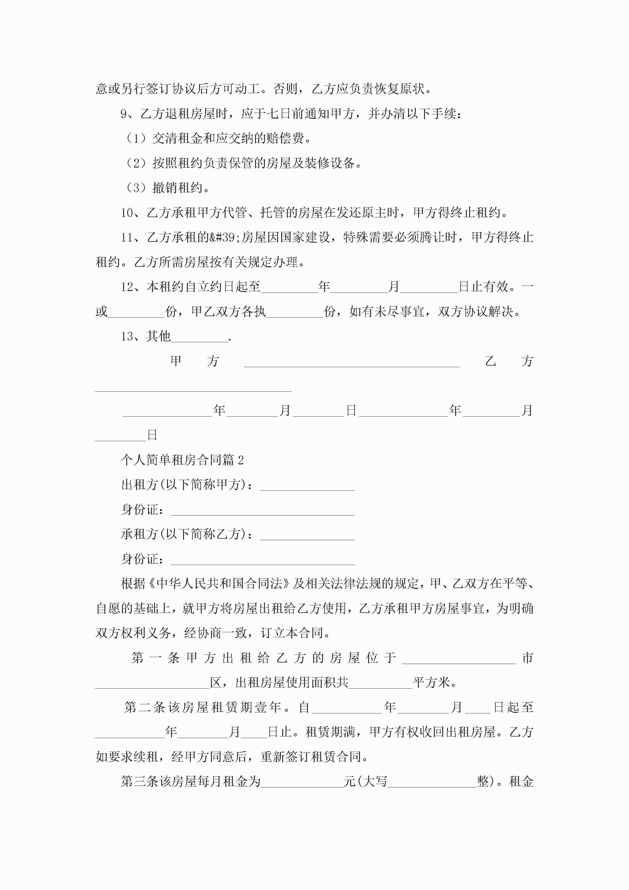 个人简单租房合同(10篇)jugei3月23日 01:42发布关注276 个人简单租房合同(10篇)此内容为付费资源,请付费后查看¥10.9 单篇文档限时特惠¥15个人会员开通企业会员开通立即下载无需登陆!可直接快捷下载单个模板付费资源© 版权声明THE ENDWord模板# 实用文档# 实用模板# 合同模板# 租赁合同 如有问题,可点击最底部“联系我们”联系客服 分享QQ空间微博QQ好友海报分享复制链接收藏