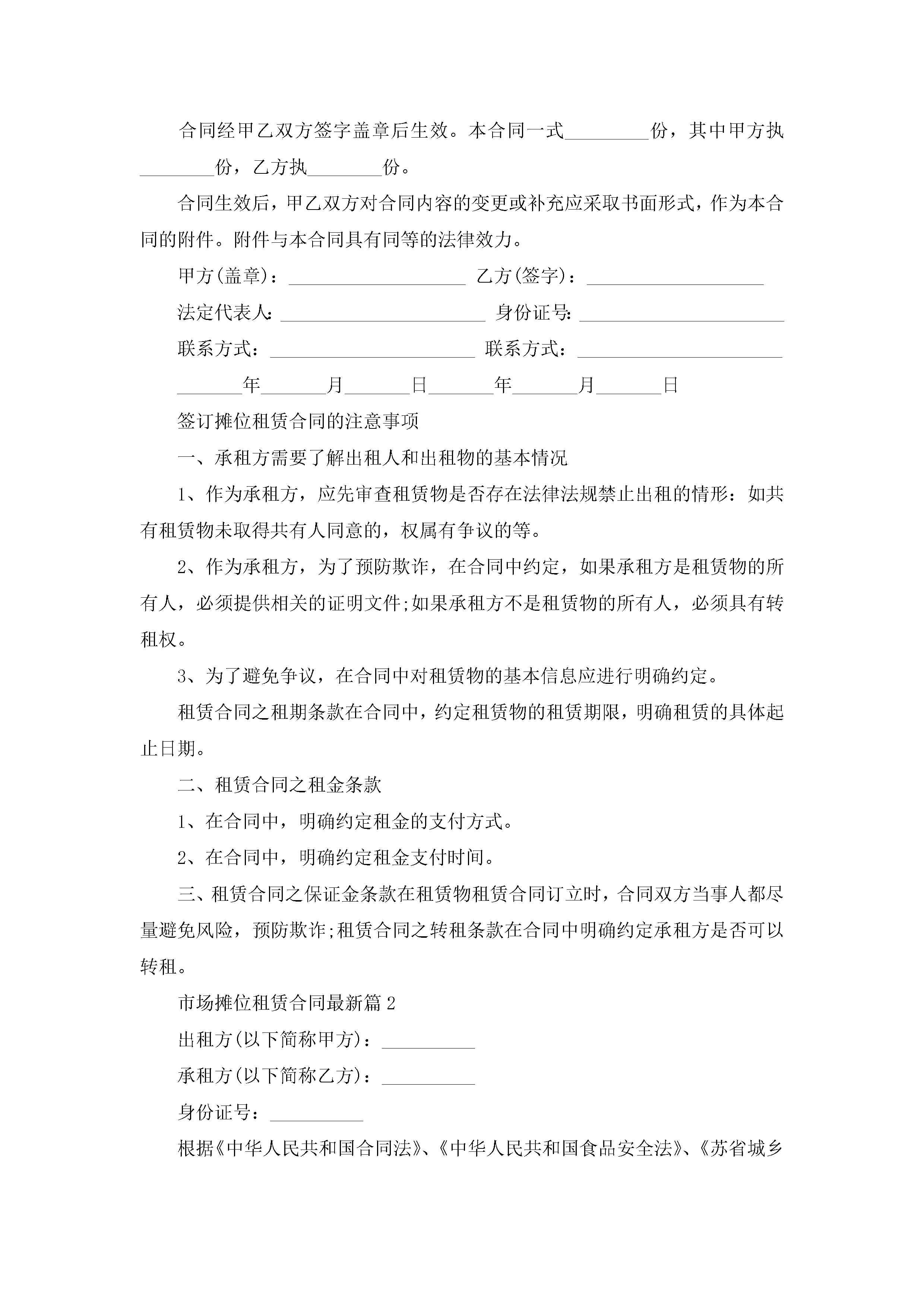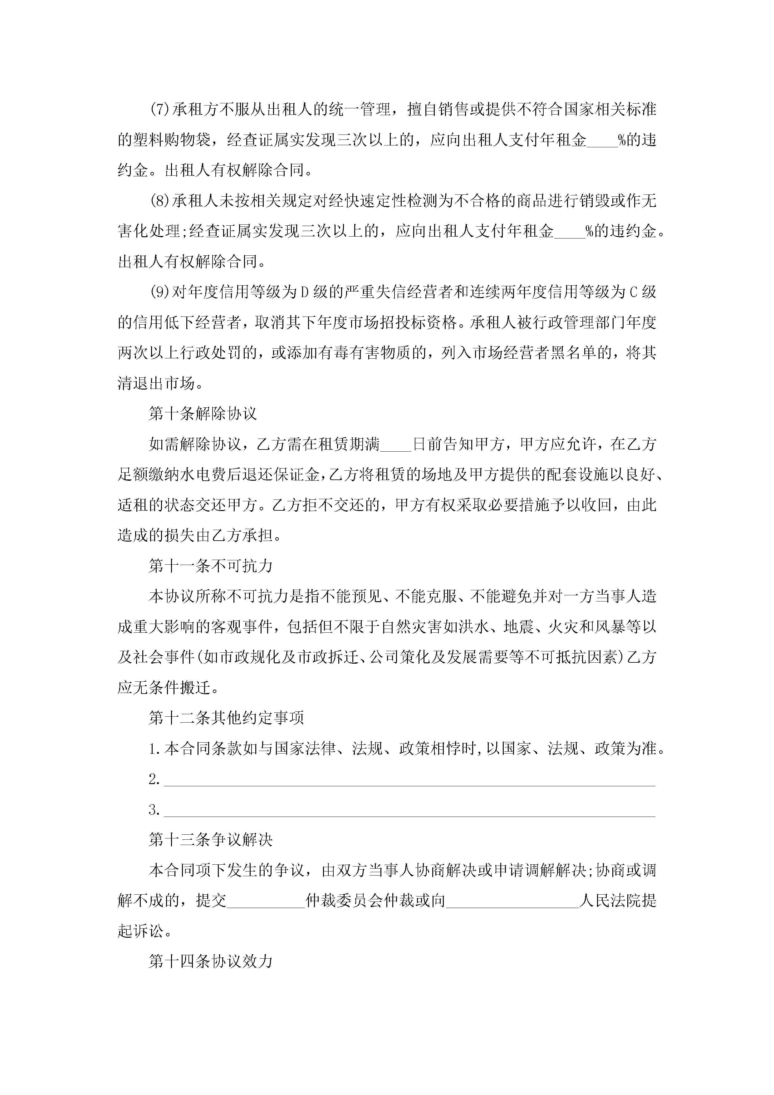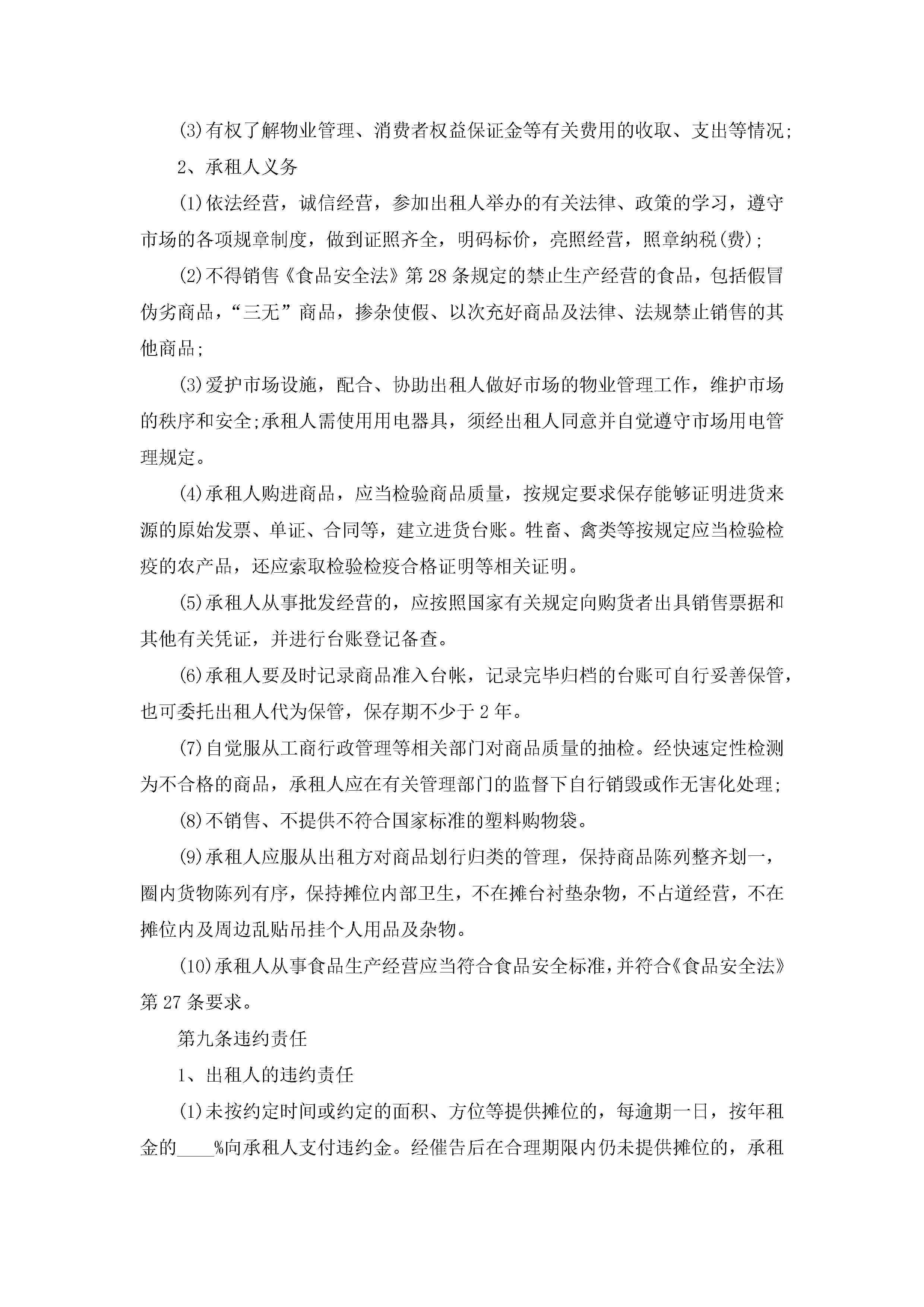 市场摊位租赁合同最新范文jugei3月23日 01:42发布关注186 市场摊位租赁合同最新范文此内容为付费资源,请付费后查看¥10.9 单篇文档限时特惠¥15个人会员开通企业会员开通立即下载无需登陆!可直接快捷下载单个模板付费资源© 版权声明THE ENDWord模板# 实用文档# 实用模板# 合同模板# 租赁合同 如有问题,可点击最底部“联系我们”联系客服 分享QQ空间微博QQ好友海报分享复制链接收藏