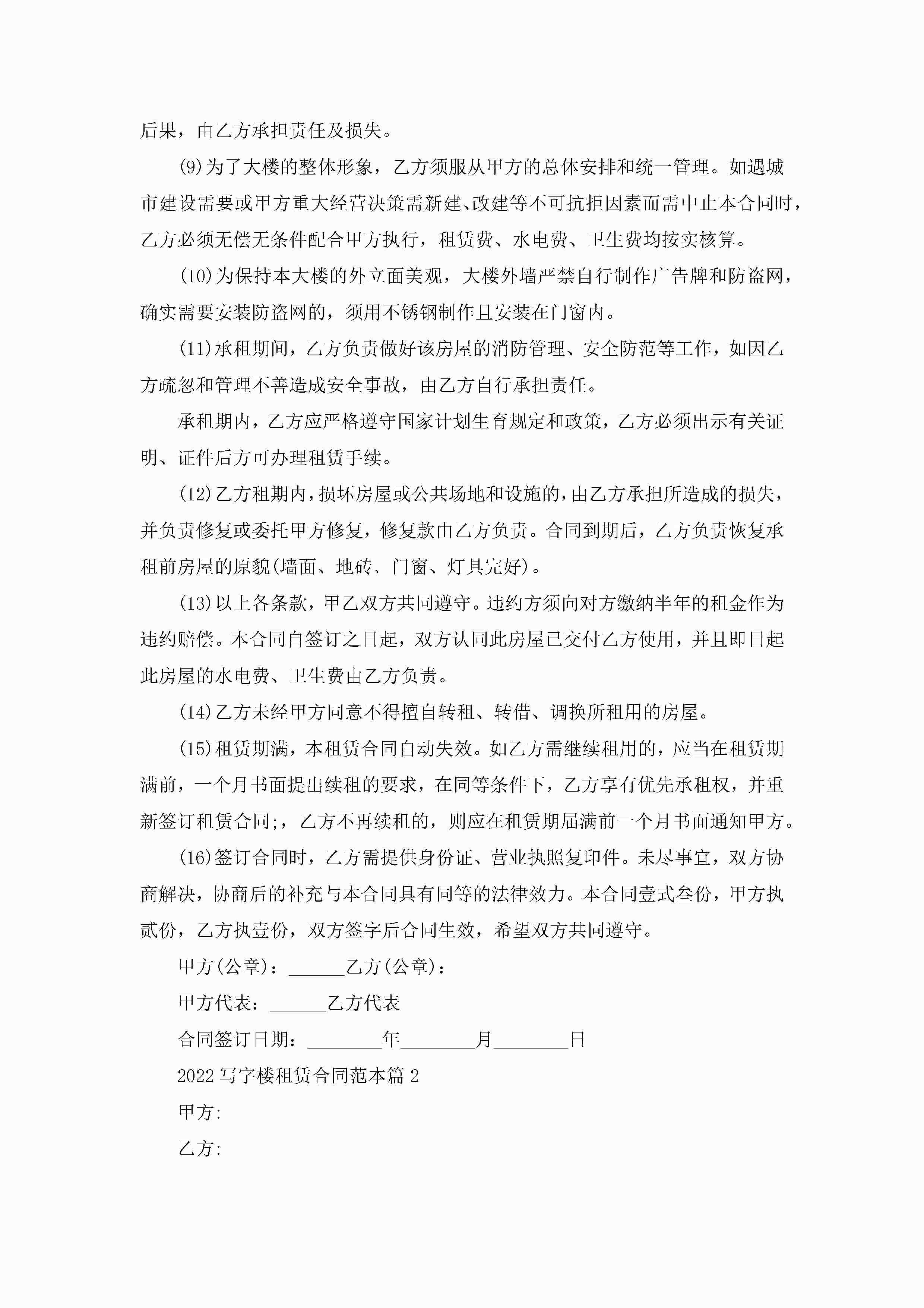 2022写字楼租赁合同最新范本jugei3月23日 01:42发布关注187 2022写字楼租赁合同最新范本此内容为付费资源,请付费后查看¥10.9 单篇文档限时特惠¥15个人会员开通企业会员开通立即下载无需登陆!可直接快捷下载单个模板付费资源© 版权声明THE ENDWord模板# 实用文档# 实用模板# 合同模板# 租赁合同 如有问题,可点击最底部“联系我们”联系客服 分享QQ空间微博QQ好友海报分享复制链接收藏