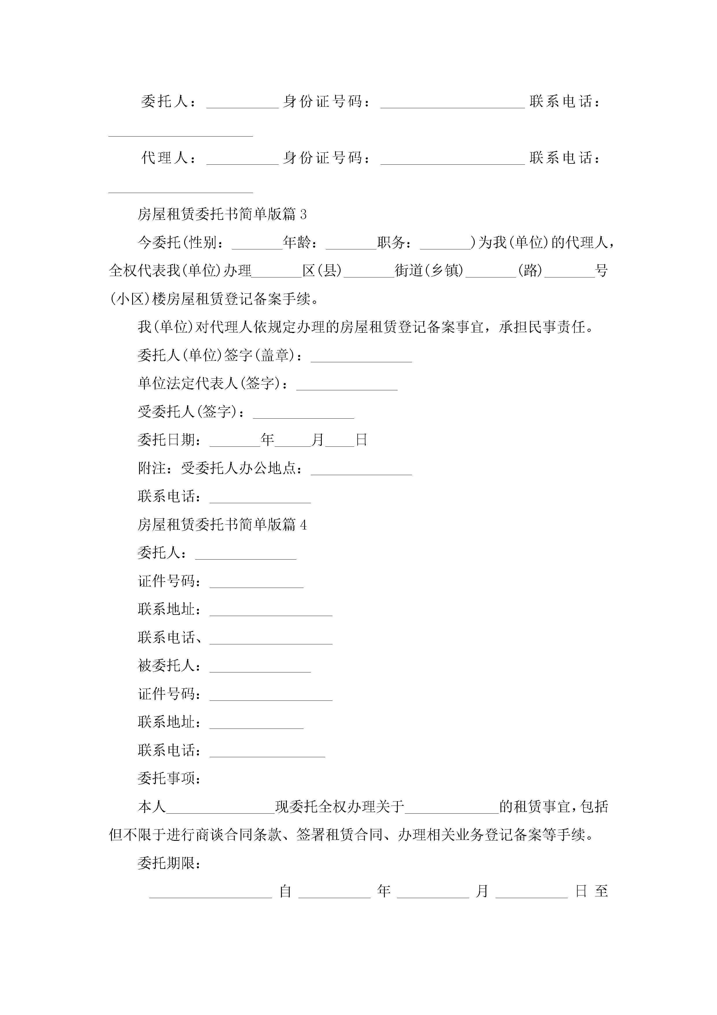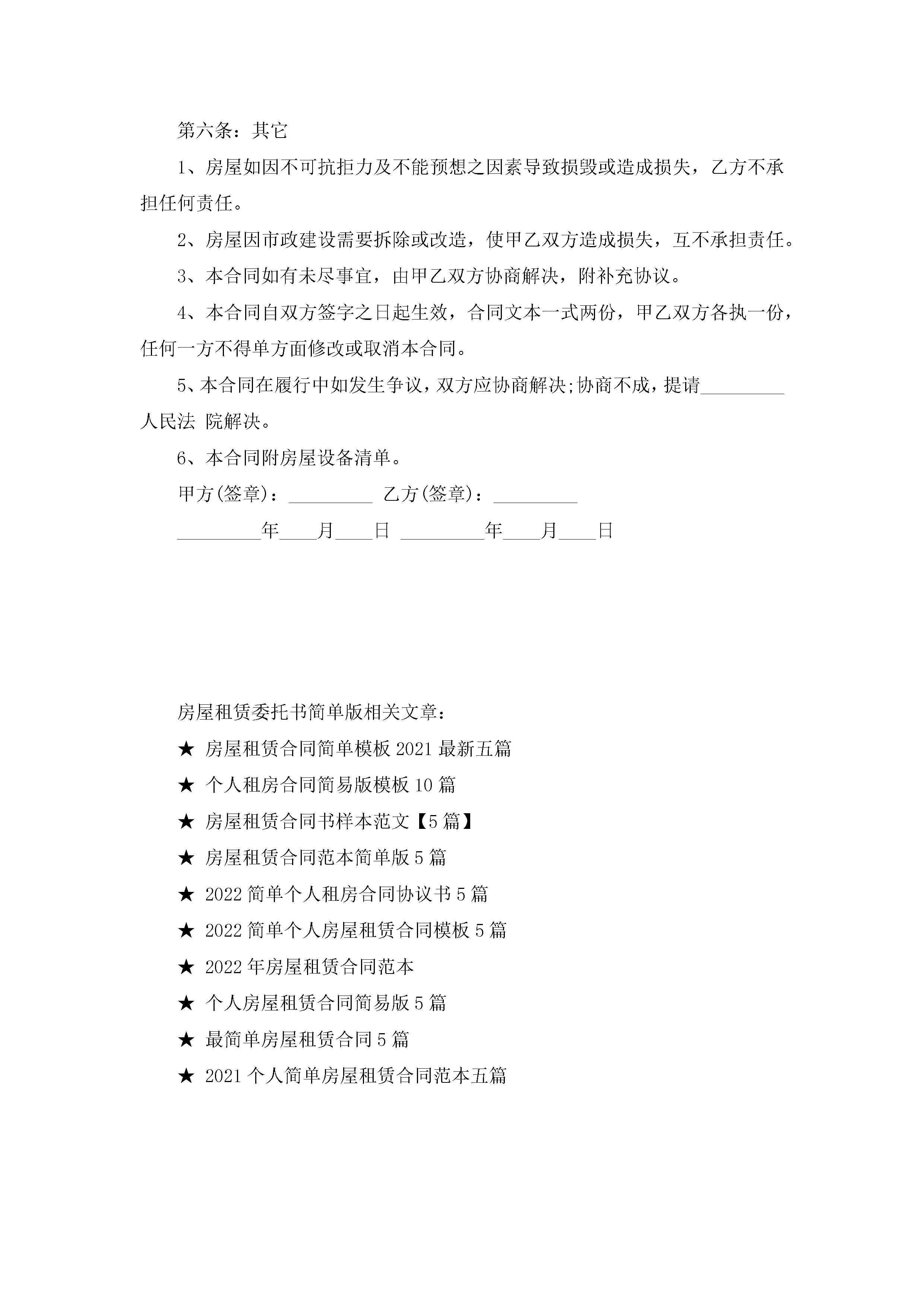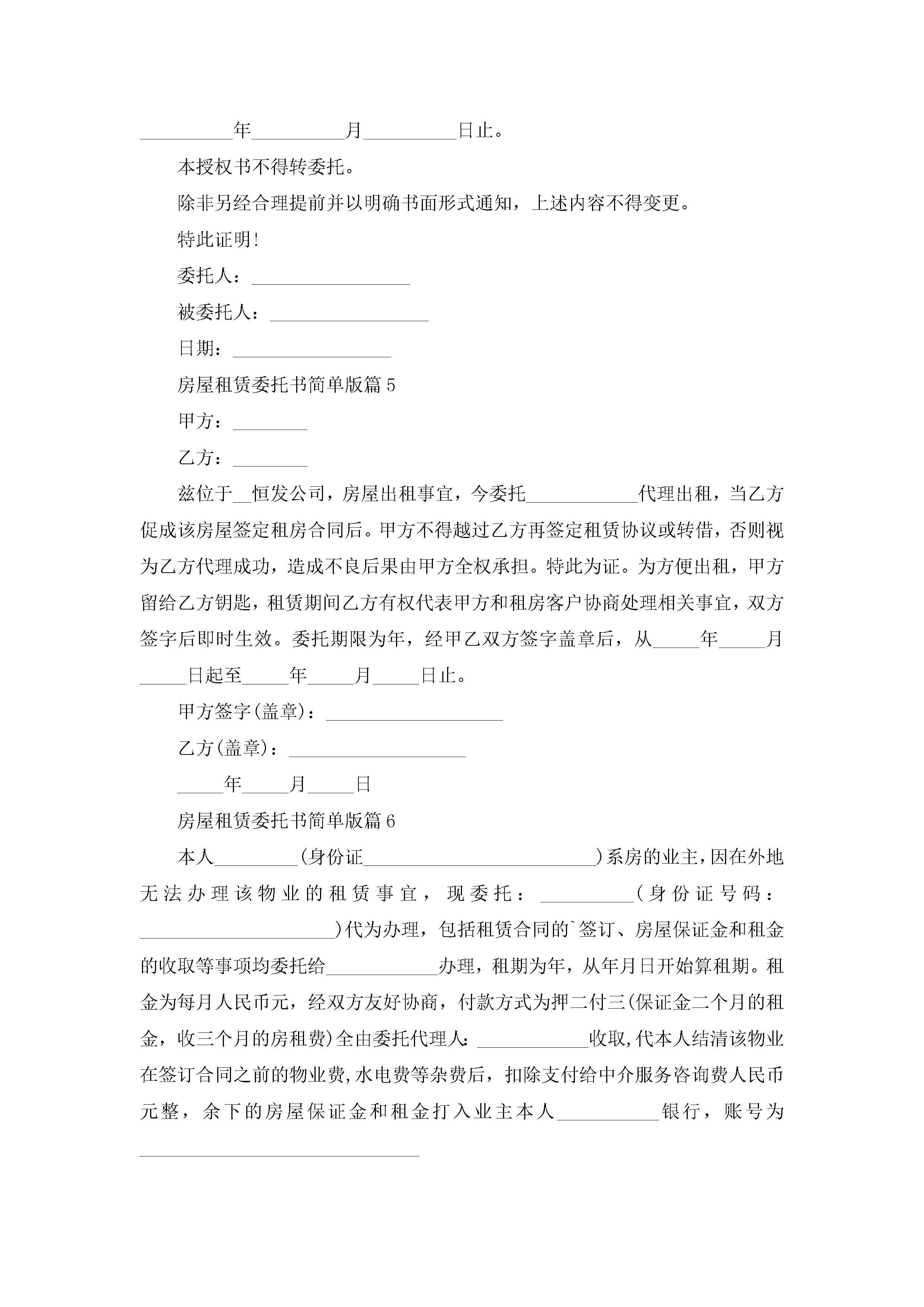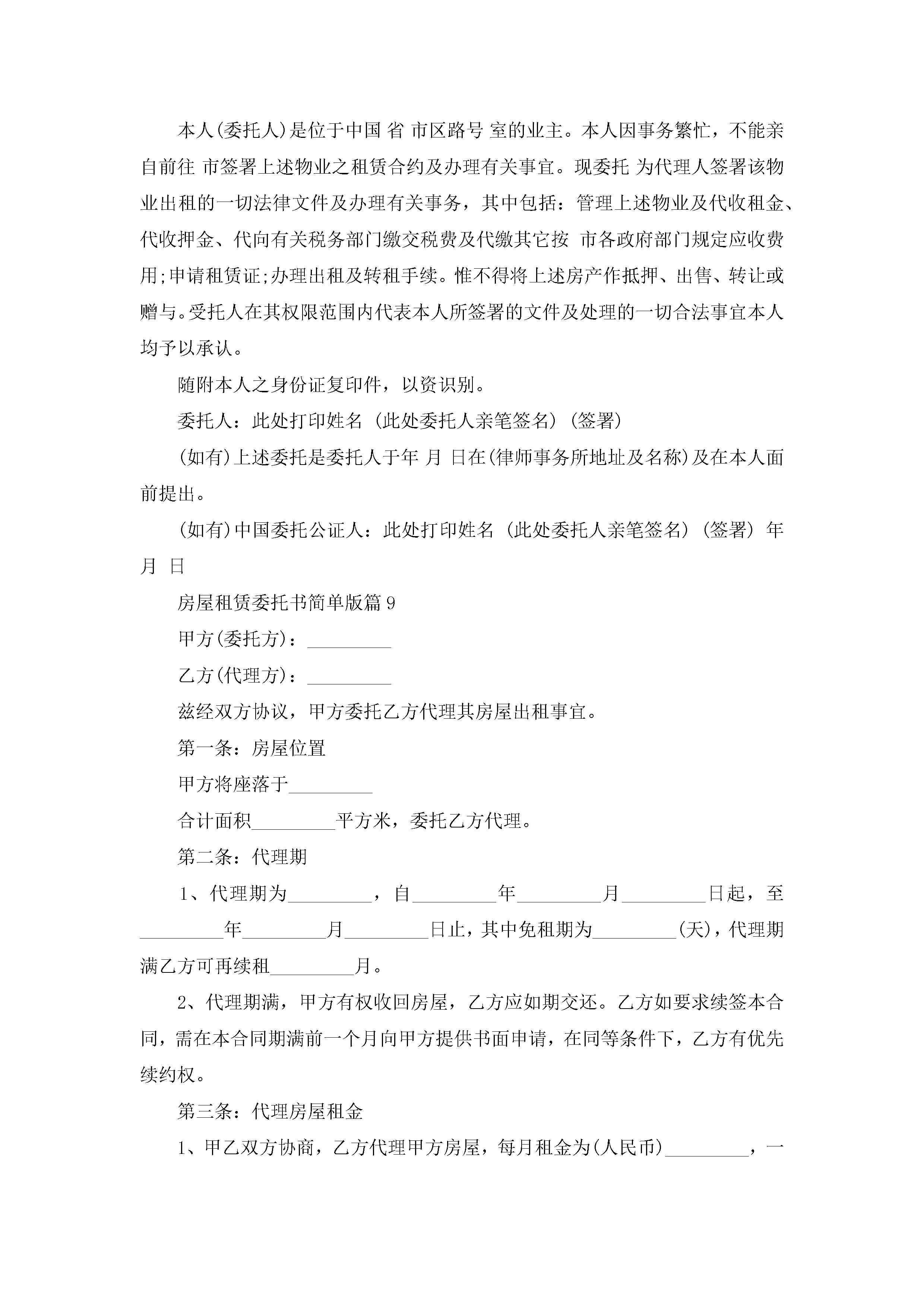 房屋租赁委托书范文简单版jugei3月23日 01:42发布关注191 房屋租赁委托书范文简单版此内容为付费资源,请付费后查看¥10.9 单篇文档限时特惠¥15个人会员开通企业会员开通立即下载无需登陆!可直接快捷下载单个模板付费资源© 版权声明THE ENDWord模板# 实用文档# 实用模板# 合同模板# 租赁合同 如有问题,可点击最底部“联系我们”联系客服 分享QQ空间微博QQ好友海报分享复制链接收藏