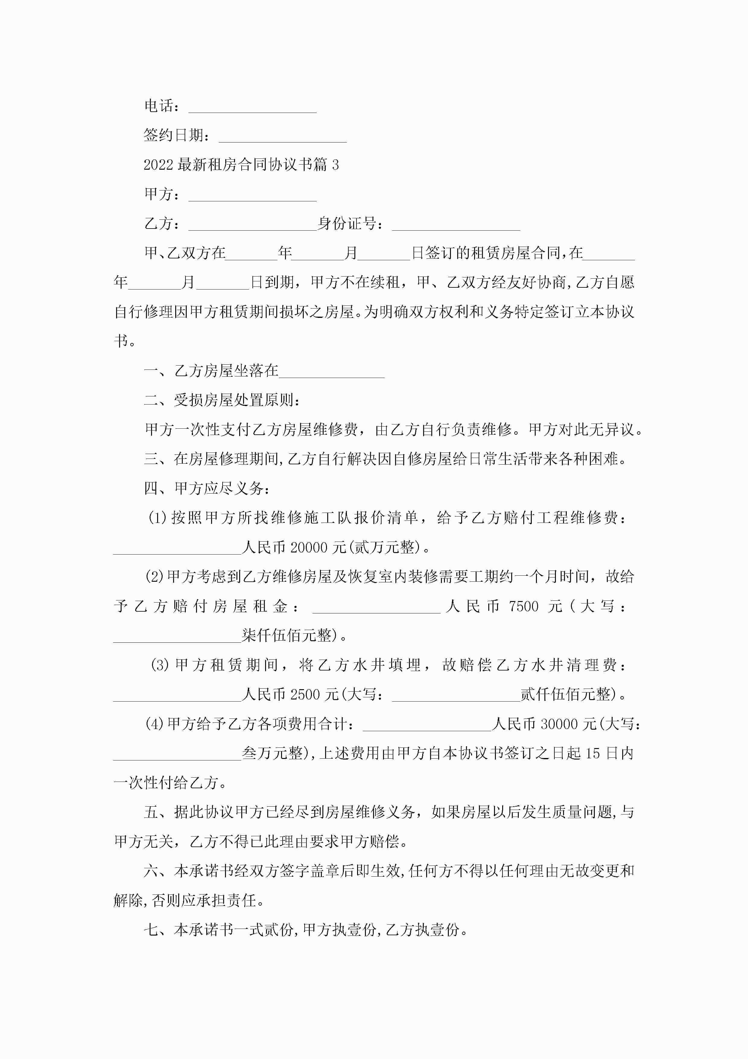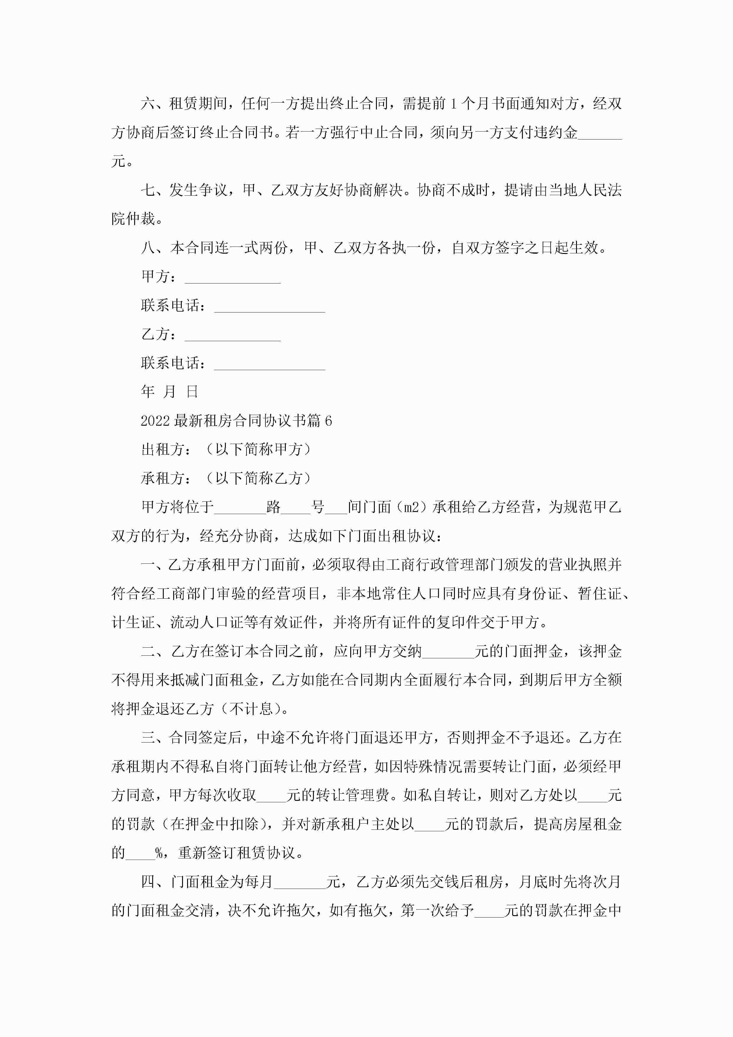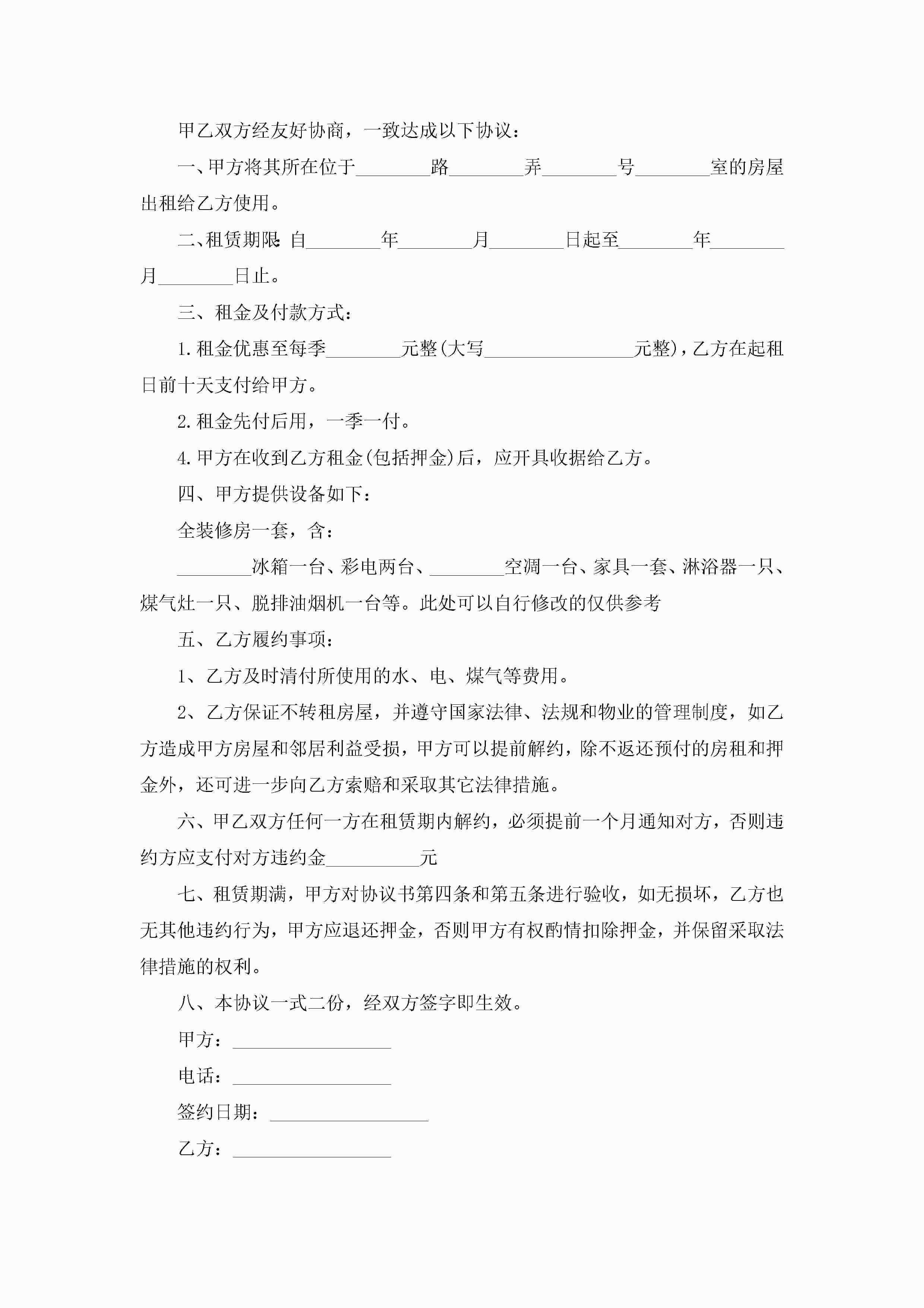 2022最新租房合同协议书(10篇)jugei3月23日 01:42发布关注247 2022最新租房合同协议书(10篇)此内容为付费资源,请付费后查看¥10.9 单篇文档限时特惠¥15个人会员开通企业会员开通立即下载无需登陆!可直接快捷下载单个模板付费资源© 版权声明THE ENDWord模板# 实用文档# 实用模板# 合同模板# 租赁合同 如有问题,可点击最底部“联系我们”联系客服 分享QQ空间微博QQ好友海报分享复制链接收藏