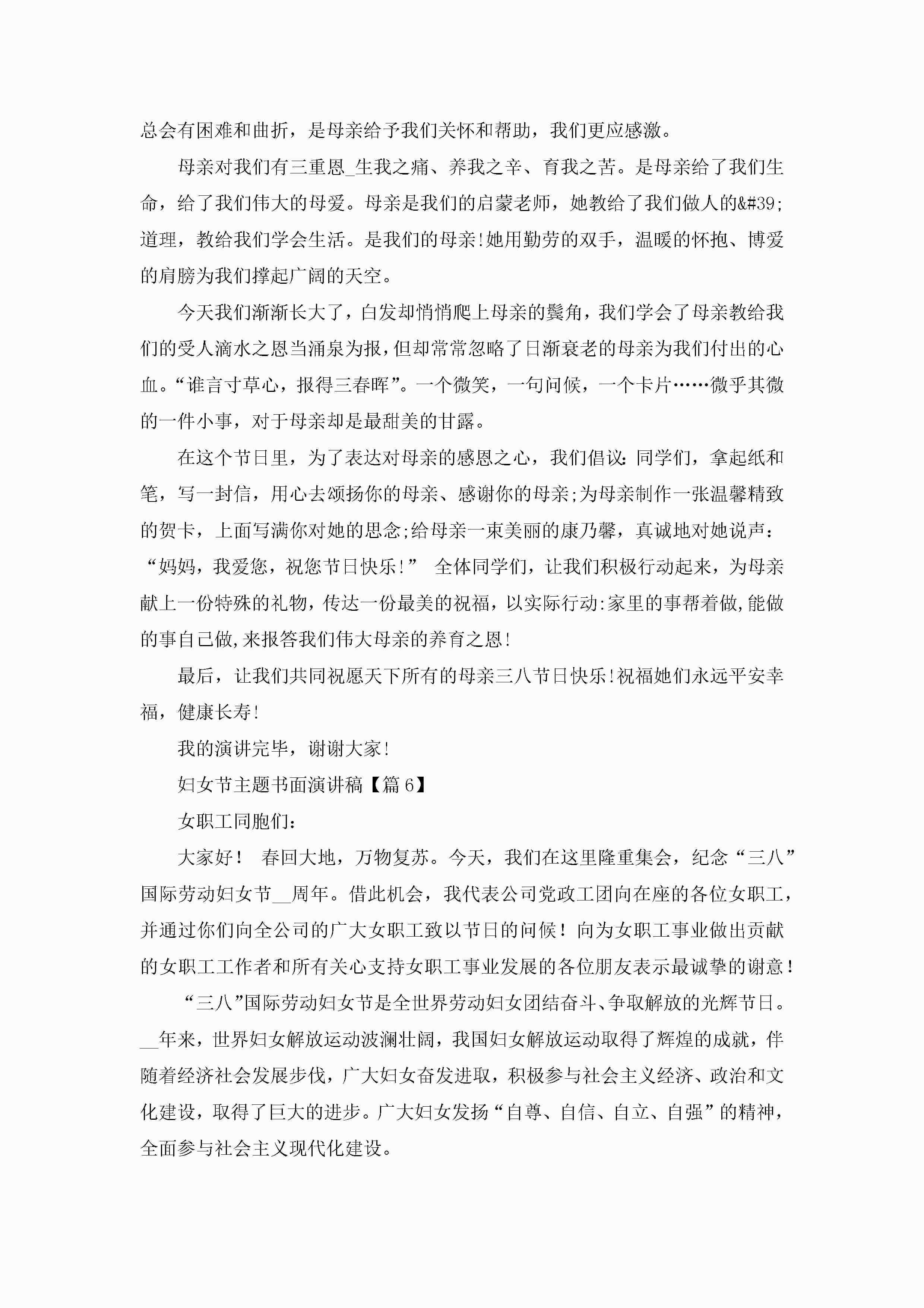 妇女节主题书面演讲稿七篇范本2023jugei3月23日 01:43发布关注259 妇女节主题书面演讲稿七篇范本2023此内容为付费资源,请付费后查看¥10.9 单篇文档限时特惠¥15个人会员开通企业会员开通立即下载无需登陆!可直接快捷下载单个模板付费资源© 版权声明THE ENDWord模板# 实用文档# 演讲稿# 经典演讲稿# 实用写作# 妇女节主题书面演讲稿七篇范本 如有问题,可点击最底部“联系我们”联系客服 分享QQ空间微博QQ好友海报分享复制链接收藏