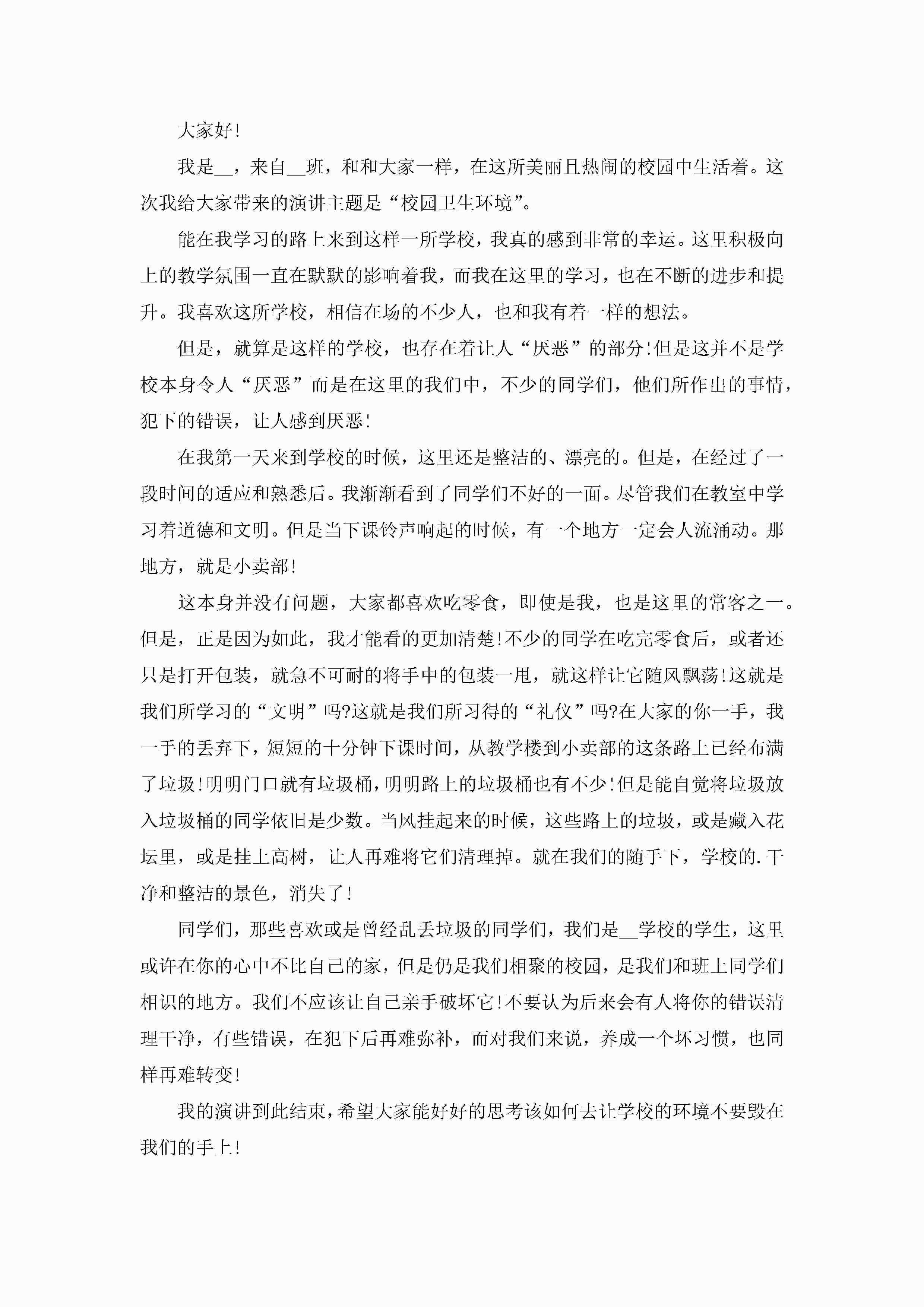 校园卫生演讲稿范本5篇jugei3月23日 01:43发布关注238 校园卫生演讲稿范本5篇此内容为付费资源,请付费后查看¥10.9 单篇文档限时特惠¥15个人会员开通企业会员开通立即下载无需登陆!可直接快捷下载单个模板付费资源© 版权声明THE ENDWord模板# 实用文档# 演讲稿# 经典演讲稿# 实用写作# 校园卫生演讲稿范本 如有问题,可点击最底部“联系我们”联系客服 分享QQ空间微博QQ好友海报分享复制链接收藏