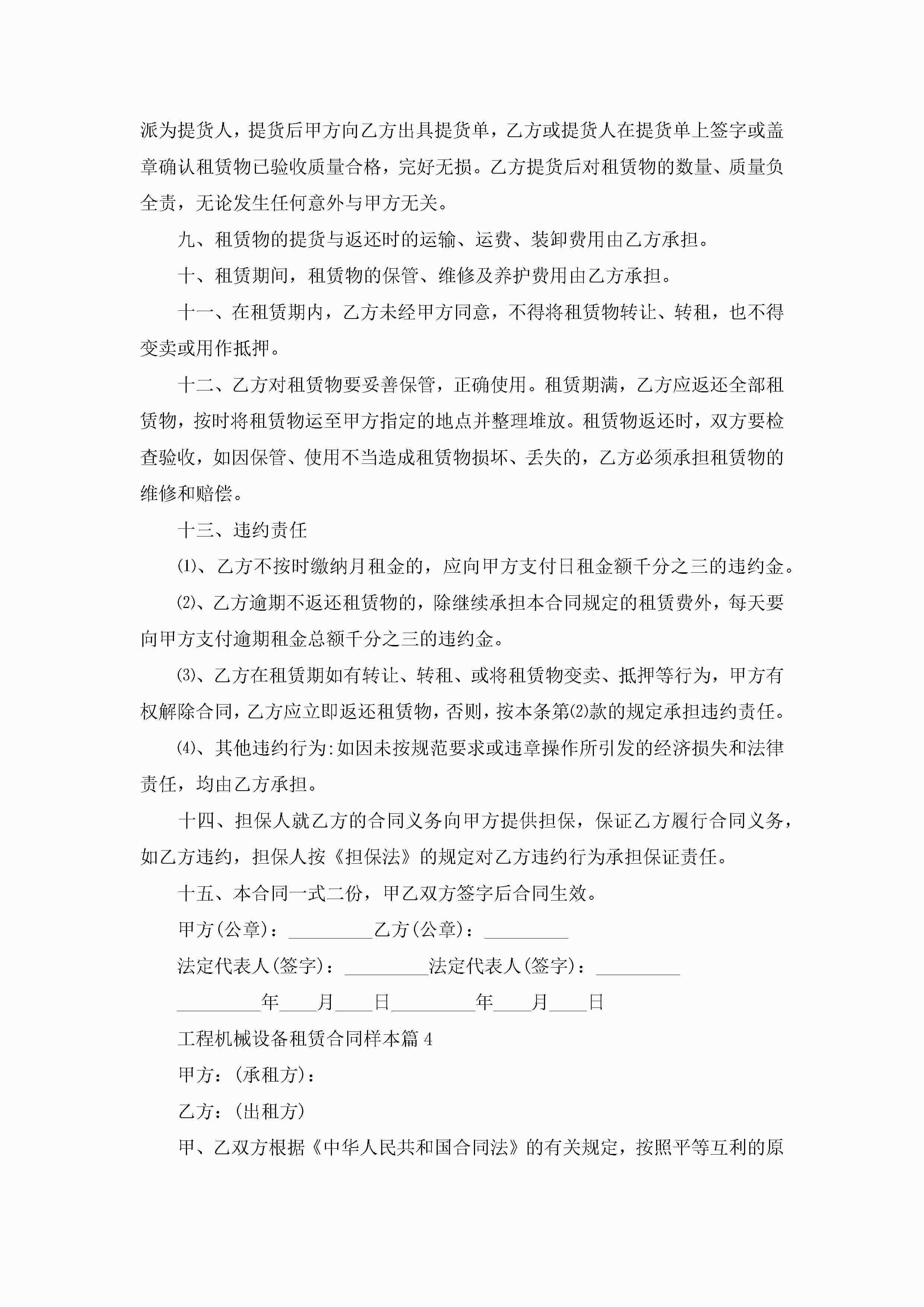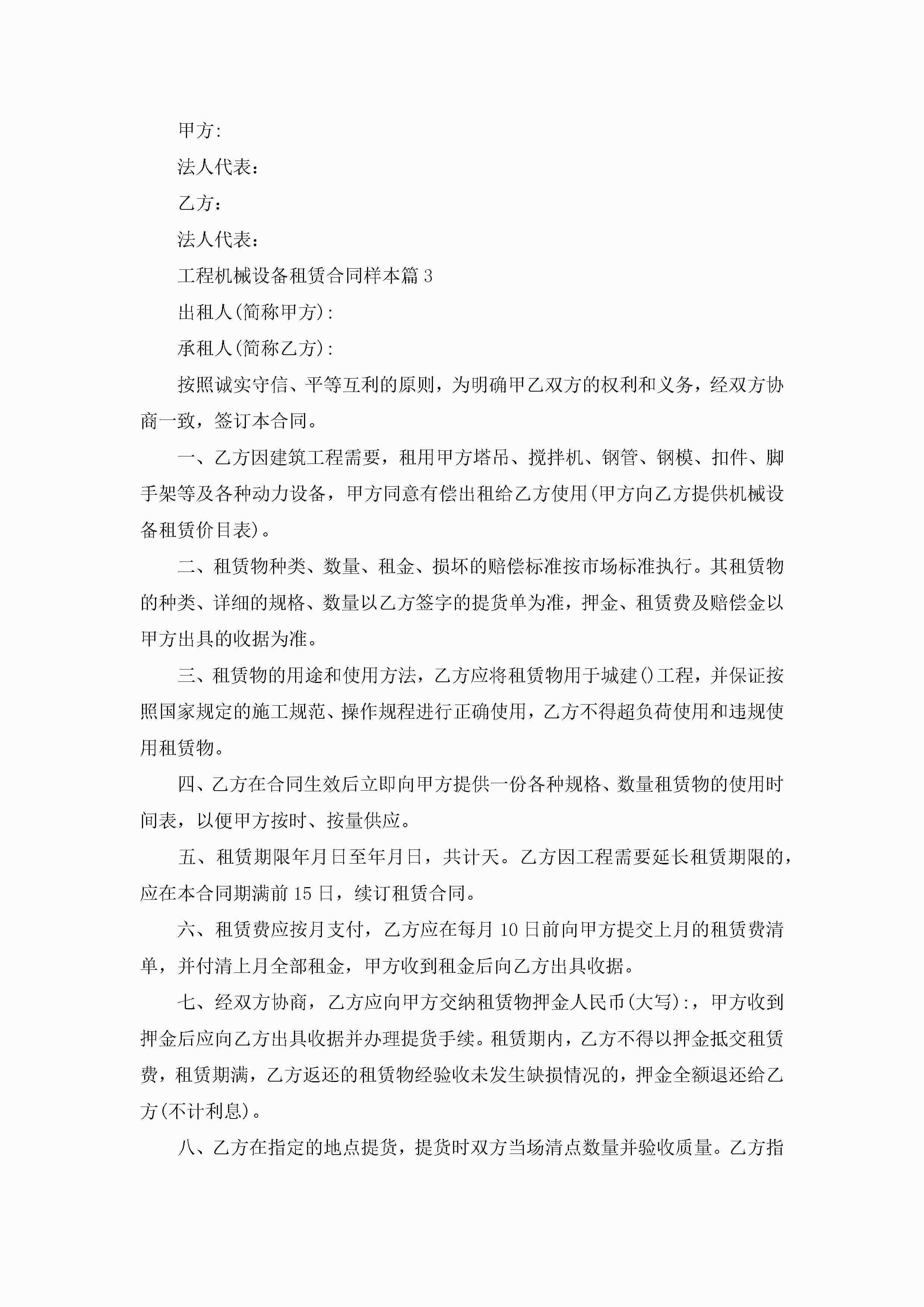 工程机械设备租赁合同最新样本jugei3月23日 01:43发布关注271 工程机械设备租赁合同最新样本此内容为付费资源,请付费后查看¥10.9 单篇文档限时特惠¥15个人会员开通企业会员开通立即下载无需登陆!可直接快捷下载单个模板付费资源© 版权声明THE ENDWord模板# 实用文档# 实用模板# 合同模板# 租赁合同 如有问题,可点击最底部“联系我们”联系客服 分享QQ空间微博QQ好友海报分享复制链接收藏