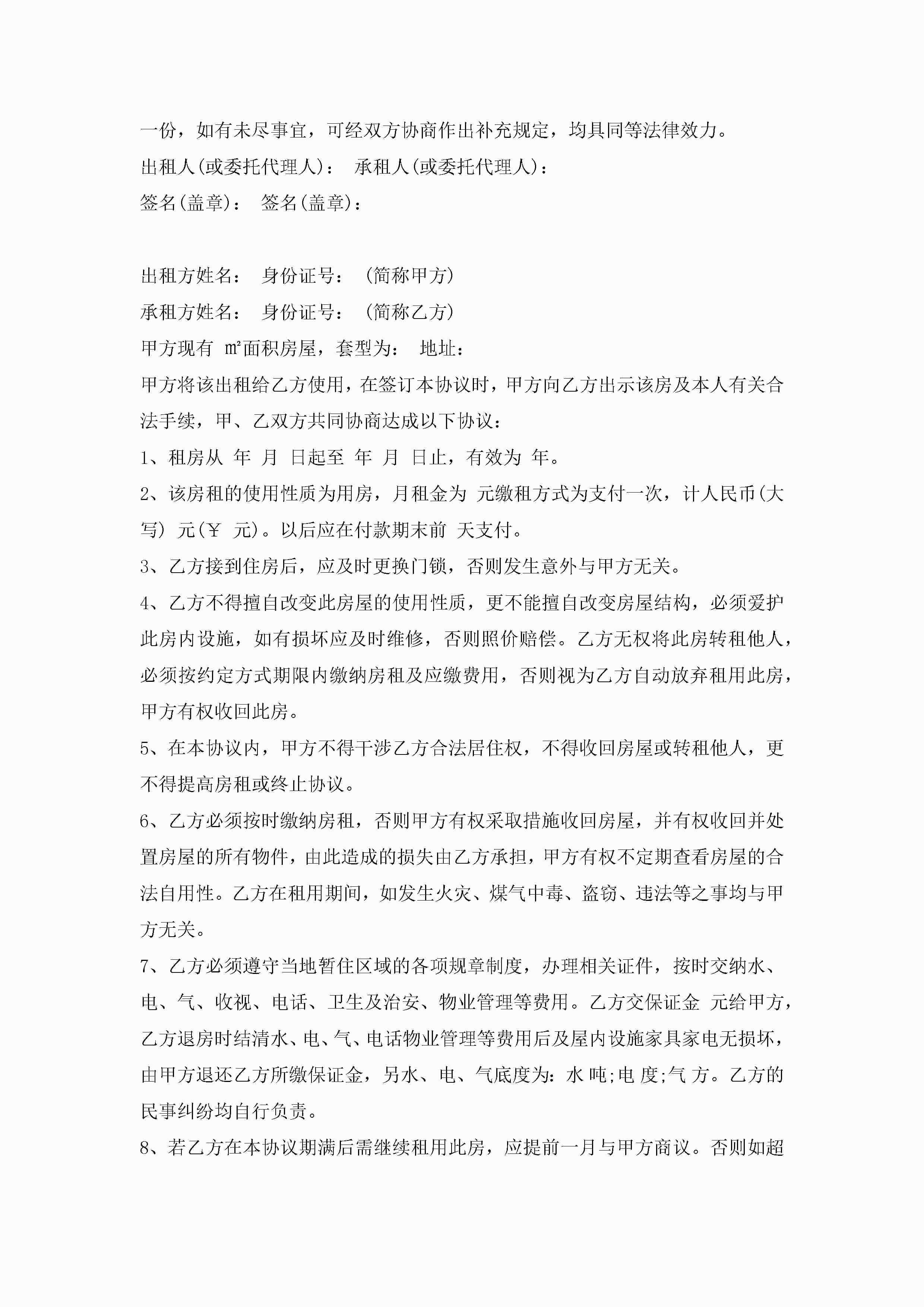 2022房屋租赁合同范文(通用8篇)jugei3月23日 01:43发布关注193 2022房屋租赁合同范文(通用8篇)此内容为付费资源,请付费后查看¥10.9 单篇文档限时特惠¥15个人会员开通企业会员开通立即下载无需登陆!可直接快捷下载单个模板付费资源© 版权声明THE ENDWord模板# 实用文档# 实用模板# 合同模板# 租赁合同 如有问题,可点击最底部“联系我们”联系客服 分享QQ空间微博QQ好友海报分享复制链接收藏