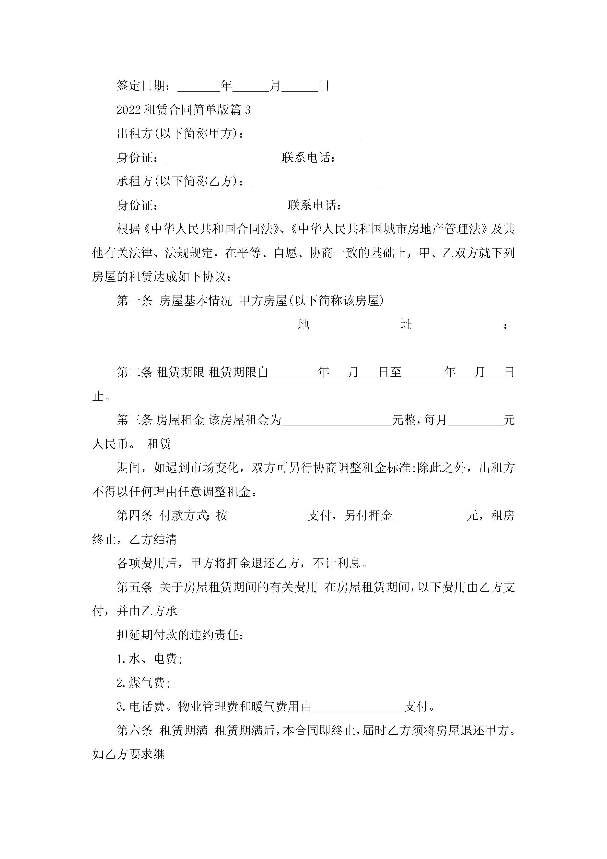 2022租赁合同最新简单版jugei3月23日 01:43发布关注250 2022租赁合同最新简单版此内容为付费资源,请付费后查看¥10.9 单篇文档限时特惠¥15个人会员开通企业会员开通立即下载无需登陆!可直接快捷下载单个模板付费资源© 版权声明THE ENDWord模板# 实用文档# 实用模板# 合同模板# 租赁合同 如有问题,可点击最底部“联系我们”联系客服 分享QQ空间微博QQ好友海报分享复制链接收藏
