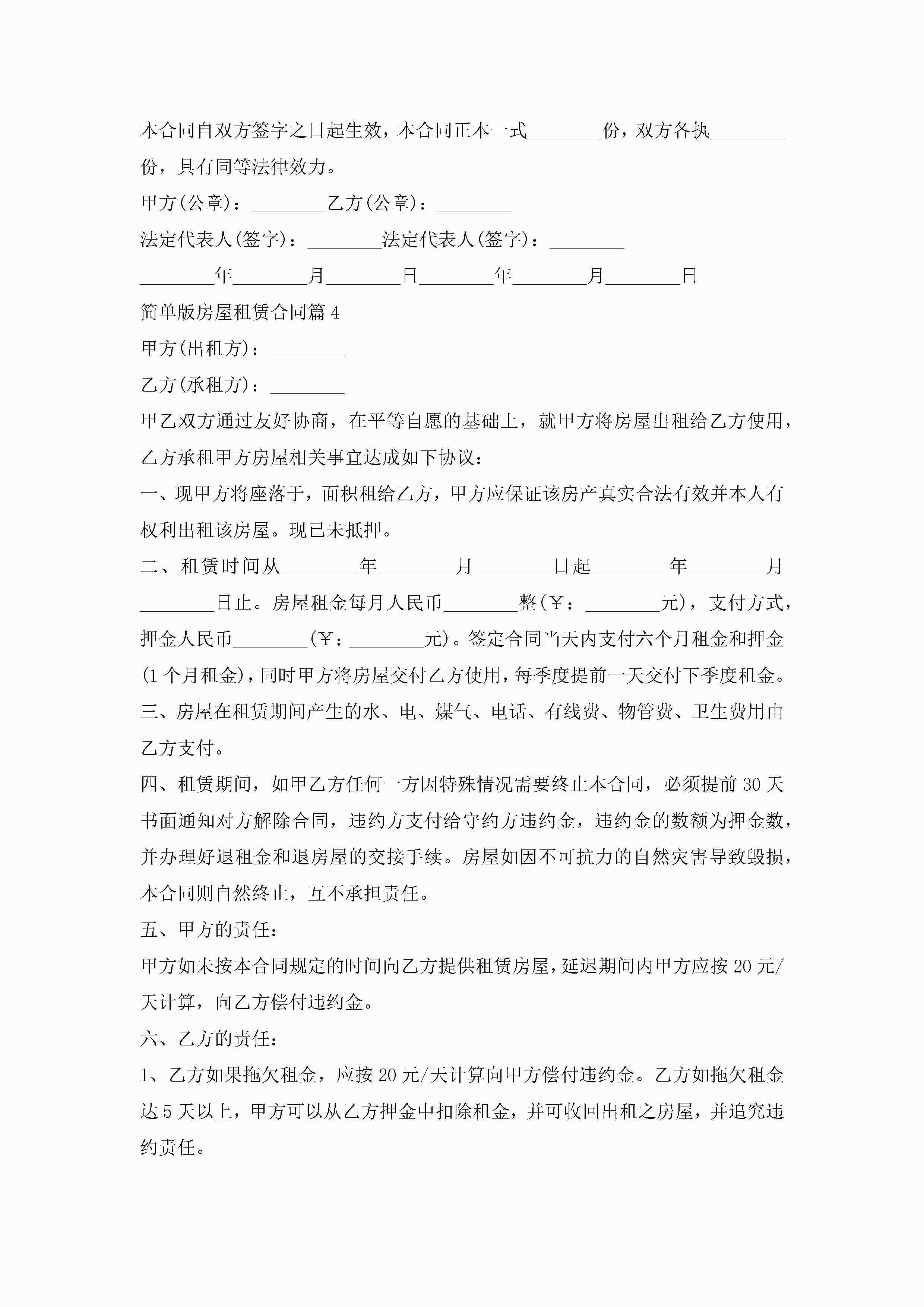 简单版房屋租赁合同范文jugei3月23日 01:43发布关注186 简单版房屋租赁合同范文此内容为付费资源,请付费后查看¥10.9 单篇文档限时特惠¥15个人会员开通企业会员开通立即下载无需登陆!可直接快捷下载单个模板付费资源© 版权声明THE ENDWord模板# 实用文档# 实用模板# 合同模板# 租赁合同 如有问题,可点击最底部“联系我们”联系客服 分享QQ空间微博QQ好友海报分享复制链接收藏