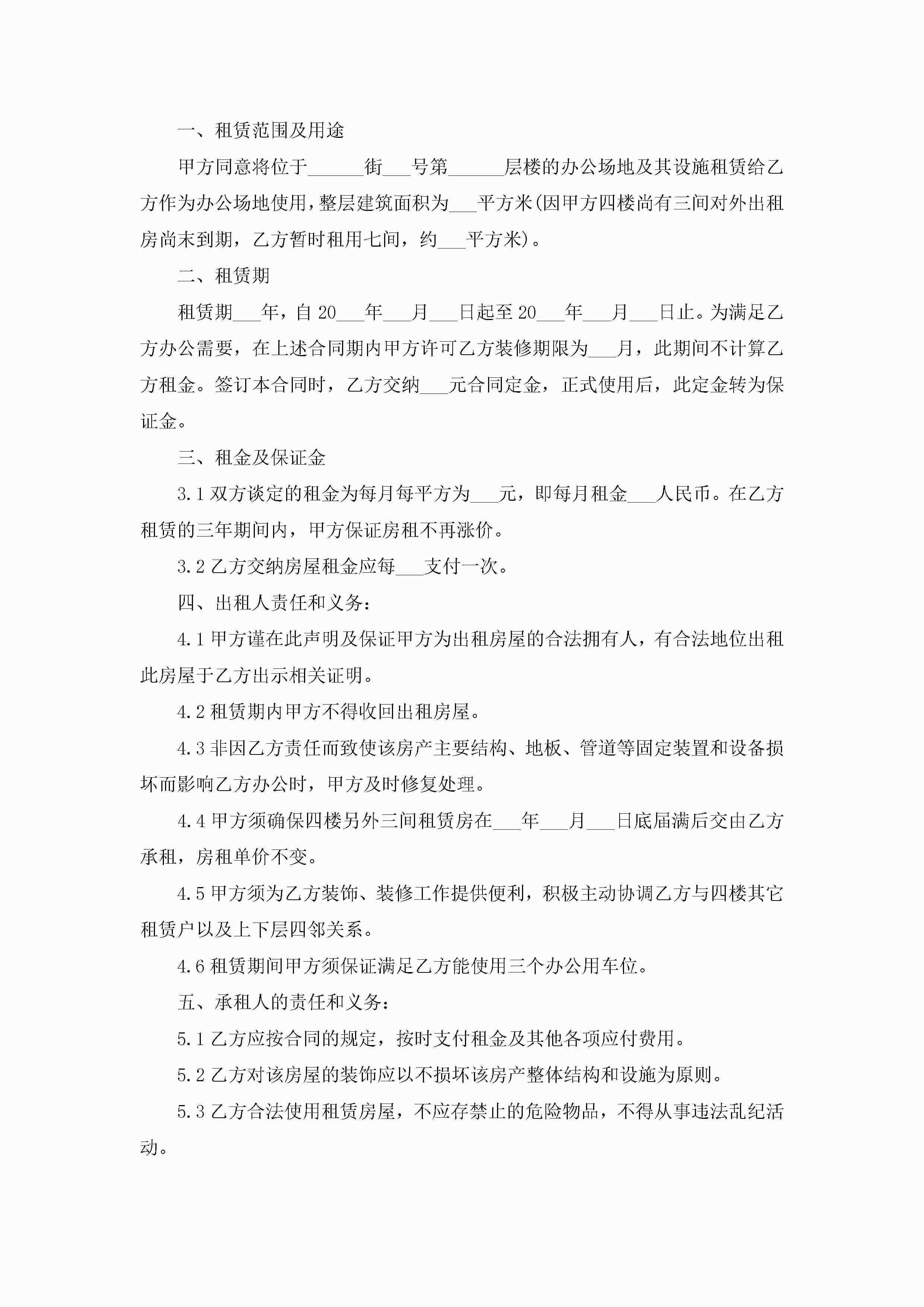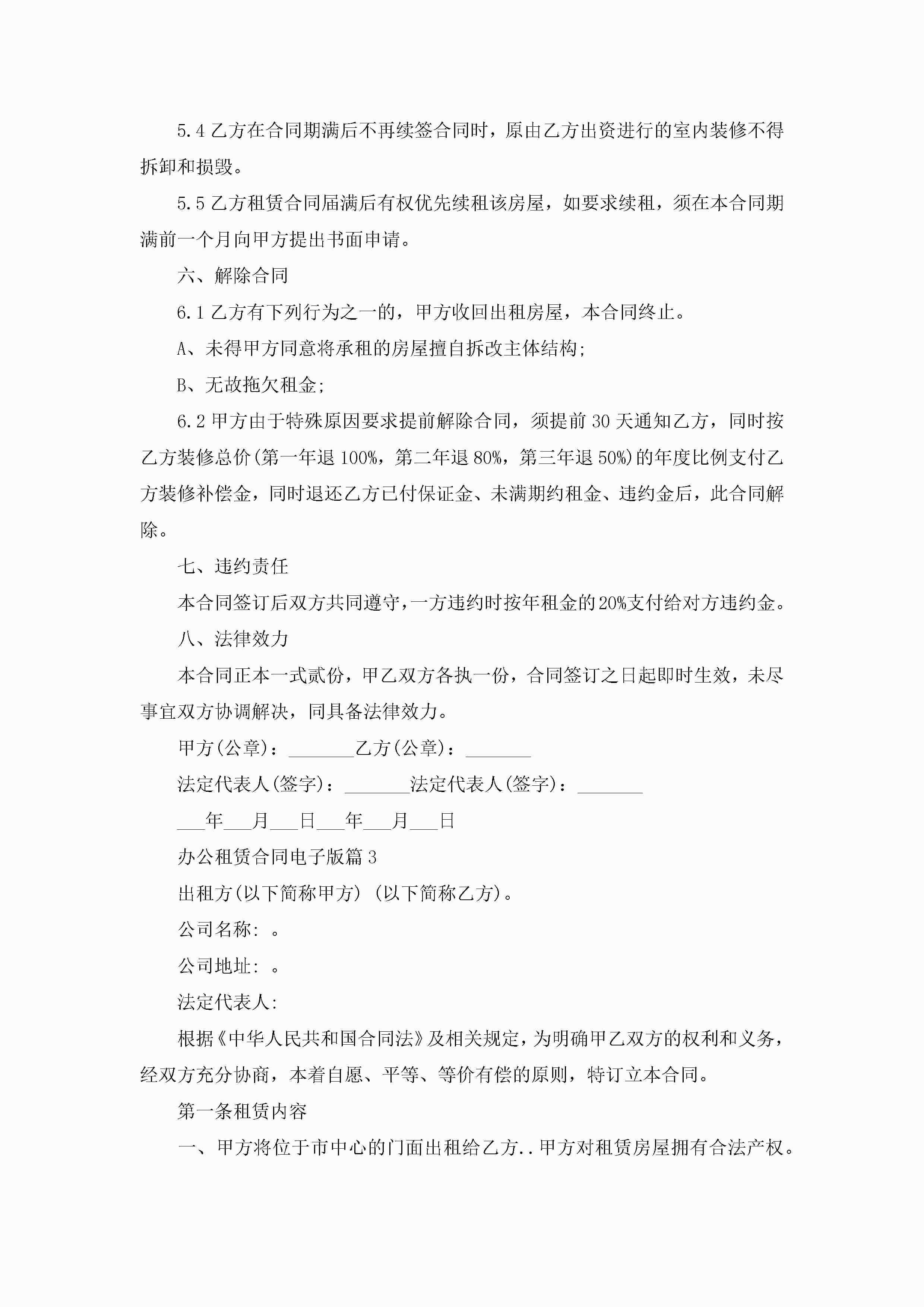 办公租赁合同范文电子版jugei3月23日 01:43发布关注238 办公租赁合同范文电子版此内容为付费资源,请付费后查看¥10.9 单篇文档限时特惠¥15个人会员开通企业会员开通立即下载无需登陆!可直接快捷下载单个模板付费资源© 版权声明THE ENDWord模板# 实用文档# 实用模板# 合同模板# 租赁合同 如有问题,可点击最底部“联系我们”联系客服 分享QQ空间微博QQ好友海报分享复制链接收藏
