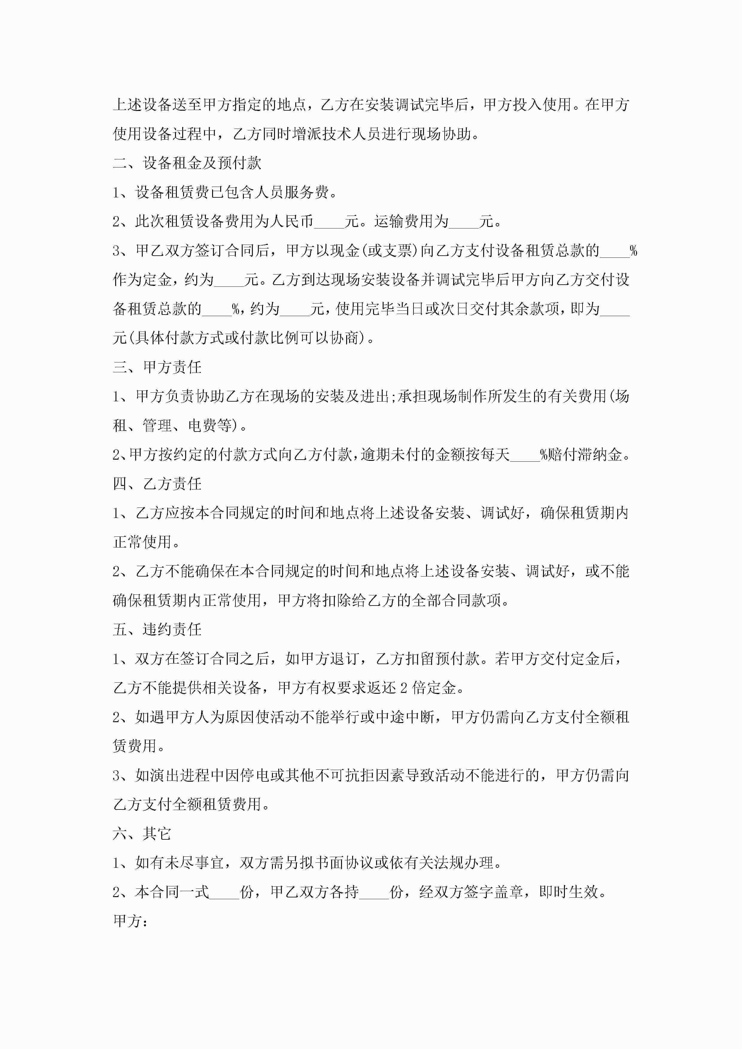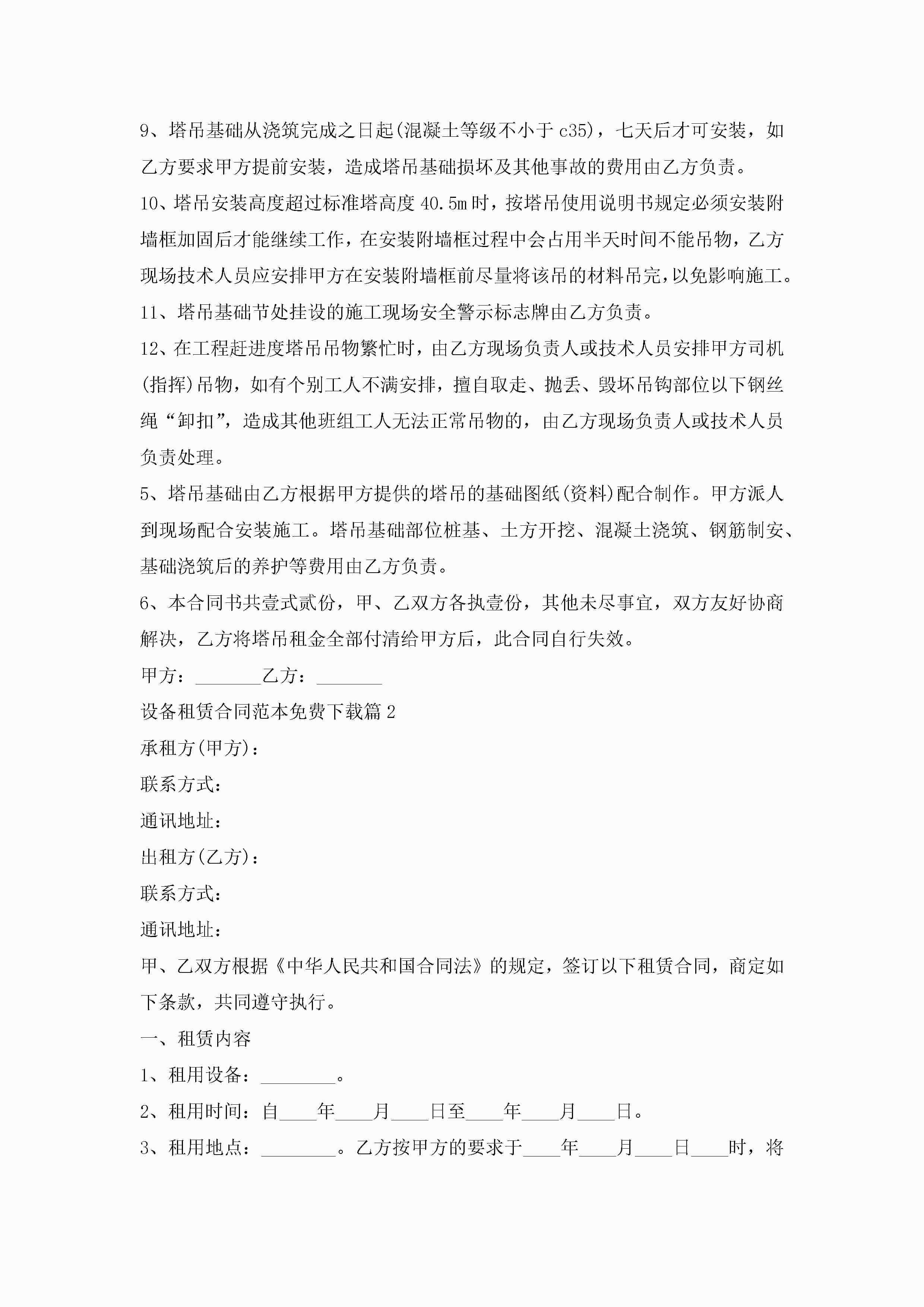 设备租赁合同最新范本免费下载jugei3月23日 01:43发布关注267 设备租赁合同最新范本免费下载此内容为付费资源,请付费后查看¥10.9 单篇文档限时特惠¥15个人会员开通企业会员开通立即下载无需登陆!可直接快捷下载单个模板付费资源© 版权声明THE ENDWord模板# 实用文档# 实用模板# 合同模板# 租赁合同 如有问题,可点击最底部“联系我们”联系客服 分享QQ空间微博QQ好友海报分享复制链接收藏