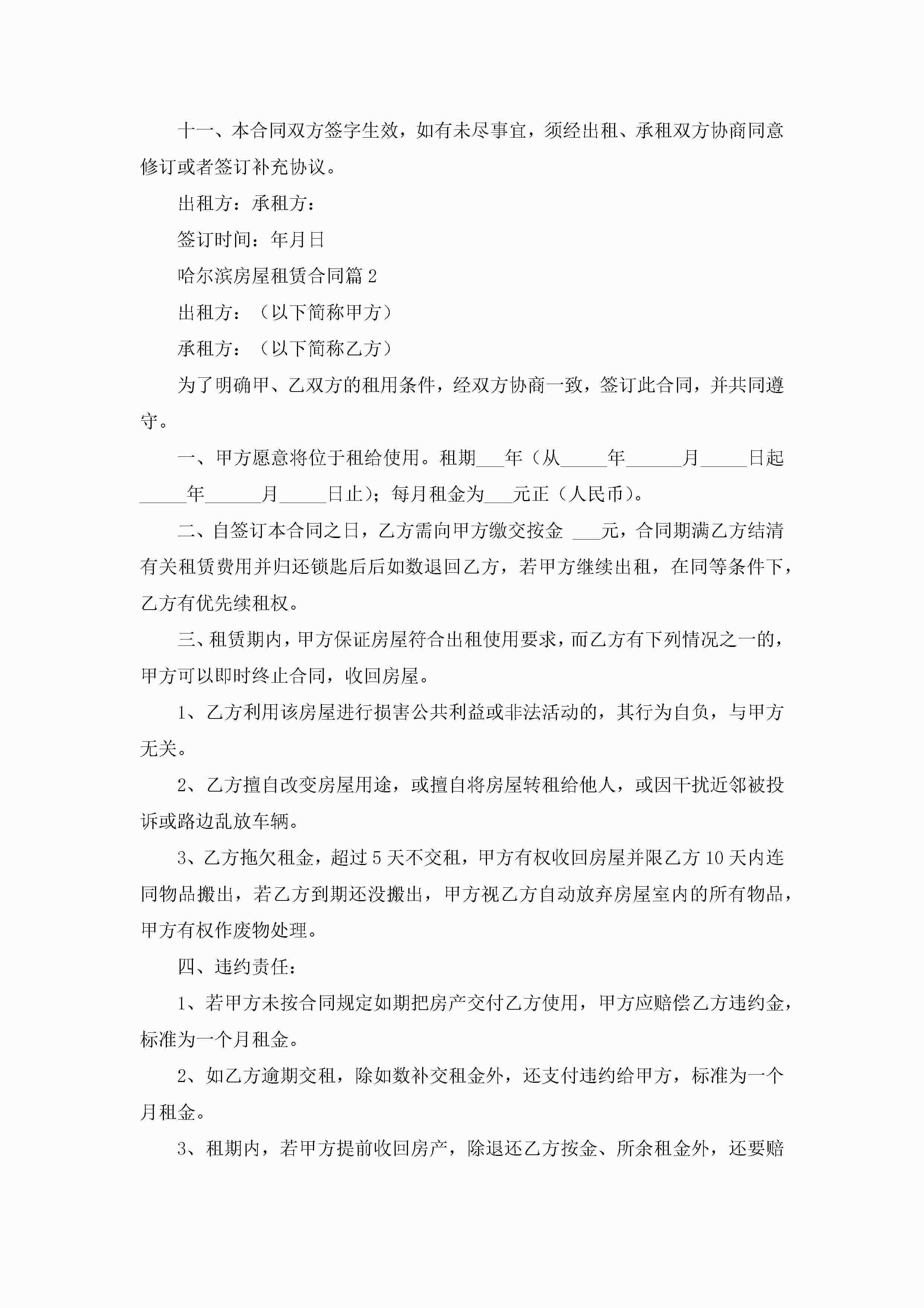 哈尔滨房屋租赁合同(精选7篇)jugei3月23日 01:43发布关注199 哈尔滨房屋租赁合同(精选7篇)此内容为付费资源,请付费后查看¥10.9 单篇文档限时特惠¥15个人会员开通企业会员开通立即下载无需登陆!可直接快捷下载单个模板付费资源© 版权声明THE ENDWord模板# 实用文档# 实用模板# 合同模板# 租赁合同 如有问题,可点击最底部“联系我们”联系客服 分享QQ空间微博QQ好友海报分享复制链接收藏